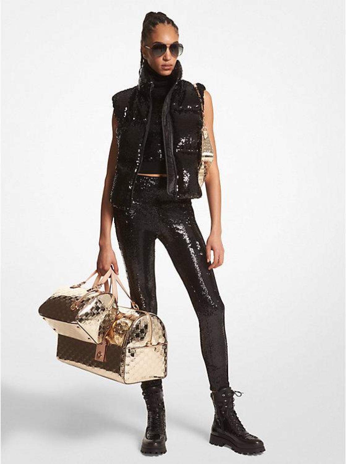 A smattering of sequins takes the seasonal puffer vest to glamorous new heights. Featuring a padded shell for volume and warmth, this eye-catching style is crafted from waterproof cotton backed by a responsibly sourced lining and filled with insulating duck down. Go all out with the matching pants, or throw it on over a sweater and jeans for a hit of shine.