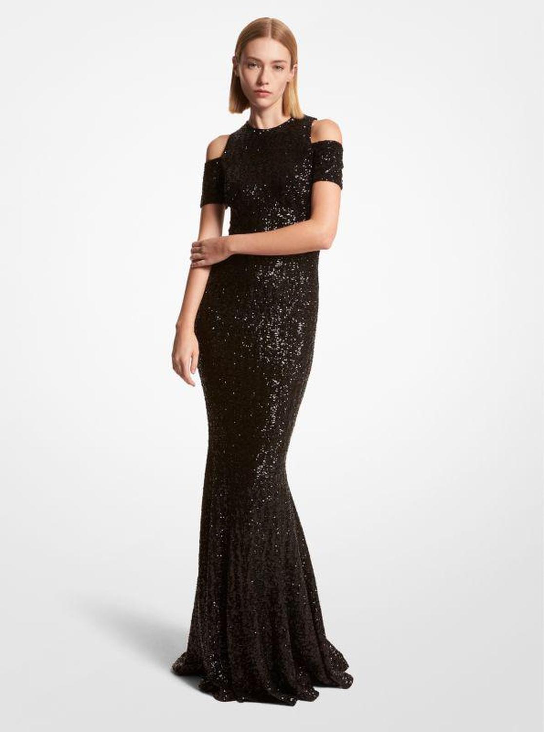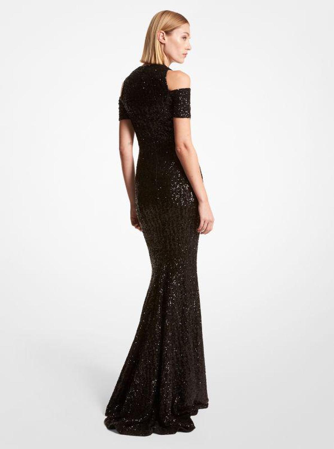 There are few things more glamorous than a shimmering gown for a formal event. Saturated in thousands of sequins that reflect the light from every angle, this sleek version features a high, rounded neckline and alluring cutouts at the shoulders. The back includes a fishtail train and concealed zip closure. Complete the look with striking stilettos and understated jewelry. Made in Italy. • Gown • Stretch • 68% polyester/9% polyamide/3% elastane • Lining: 82% polyester/18% elastane • Zip fastening • Dry clean • Made in Italy • Gown • Stretch • 68% polyester/9% polyamide/3% elastane • Lining: 82% polyester/18% elastane • Zip fastening • Dry clean • Made in Italy