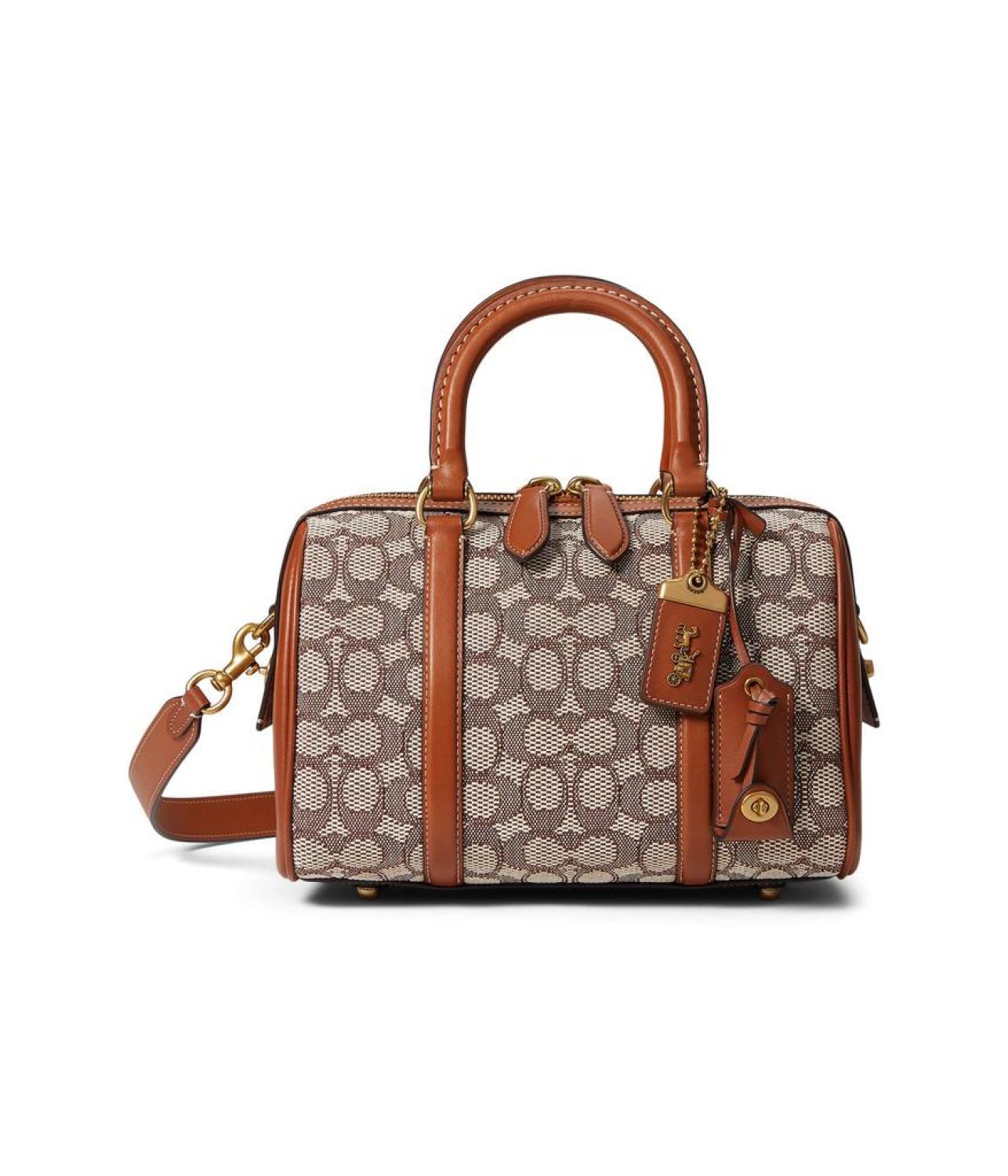Please Note: COACH™ items cannot be shipped to military addresses (APO or FPO) and addresses in Hawaii, the Virgin Islands, Guam or any other locations outside of the continental US. Carry the stylish COACH™ Signature Textile Jacquard Ruby Satchel 25 Handbag and stay on top of the fashion game. High utility and spacious satchel bag crafted using signature textile jacquard and glove-tanned leather. Dual rolled over carry straps. Adjustable and removable shoulder straps for added versatility. Zippered top closure. Allover signature brand print. One interior zippered pocket and two inner slip pockets. Suede and fabric interiors w/leather trim. Flat base for an upright structure. Protective Feet at the base. Dust bag included for added practicality. Imported. Measurements: Bottom Width: 10 in Depth: 6 in Height: 8 1/2 in Strap Length: 53 1/4 in Strap Drop: 23 1/2 in Handle Length: 11 1/2 in Handle Drop: 5 in Weight: 2 lbs 1 oz