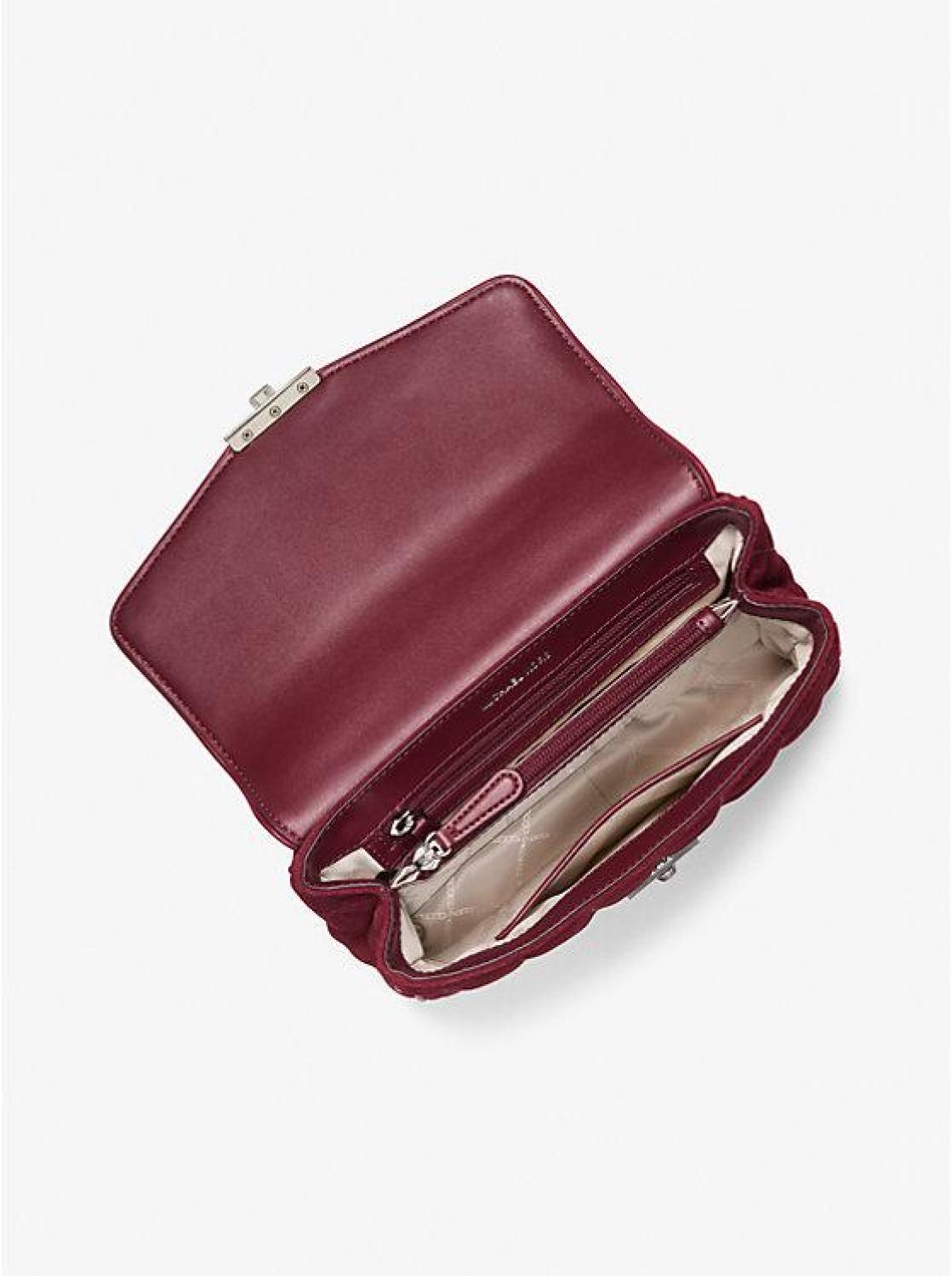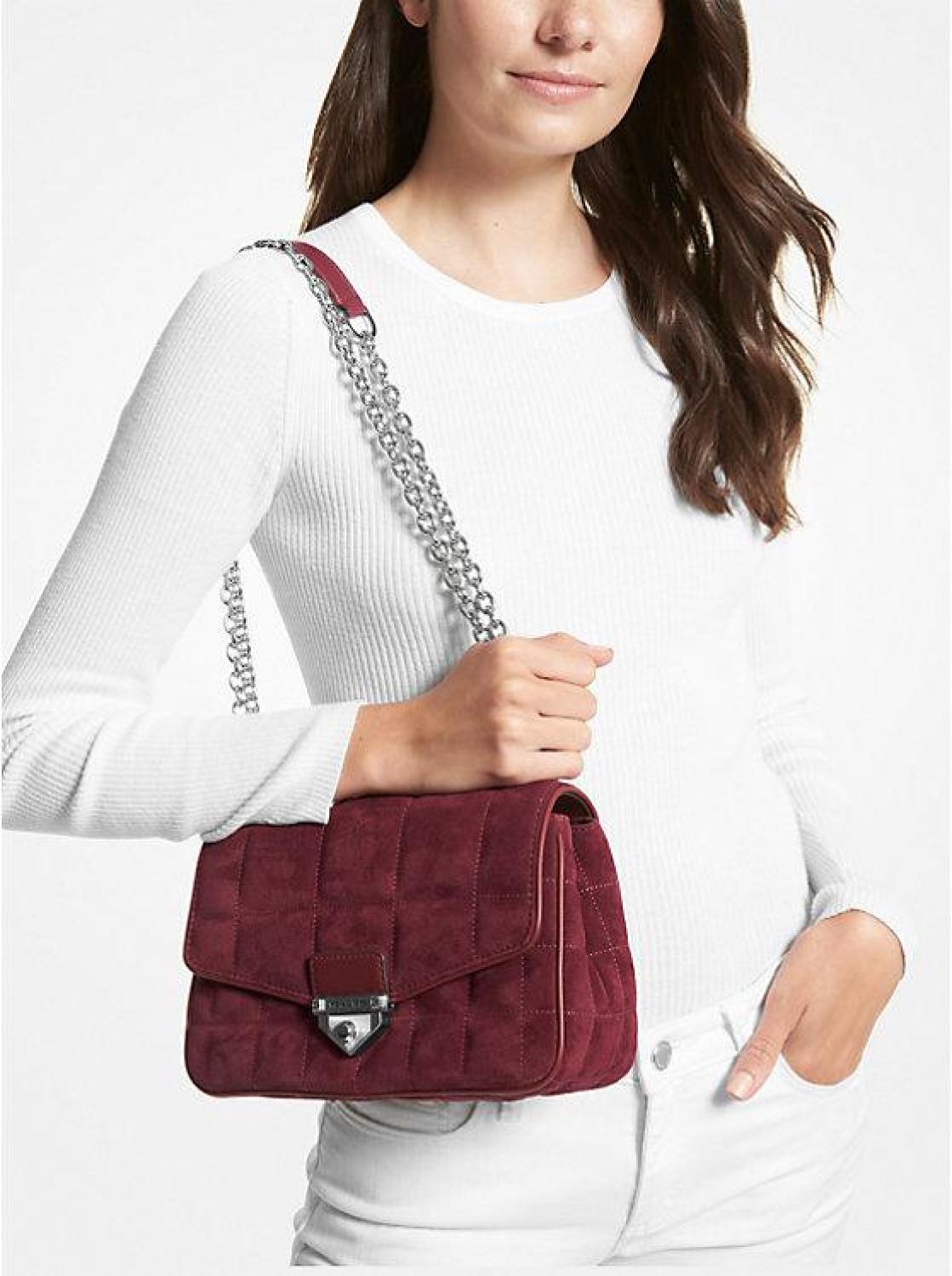 The beloved SoHo shoulder bag, named after the iconic New York City neighborhood, is crafted from suede with a chic quilted finish for a mix of uptown polish and downtown cool. A push-lock fastening opens to a compartmented interior sized to stow your wallet, keys and lipstick, while an exterior back pocket will keep your phone within arm’s reach. Shoulder bag Suede 100% leather Silver-tone hardware 9.75”W X 6.5”H X 3.5”D Adjustable strap: 12”-22” Exterior details: back snap pocket Interior details: back zip pocket, center zip pocket, front slip pocket Lining: 100% polyester Push-lock fastening Dust bag not included Imported Shoulder bag Suede 100% leather Silver-tone hardware 9.75”W X 6.5”H X 3.5”D Adjustable strap: 12”-22” Exterior details: back snap pocket Interior details: back zip pocket, center zip pocket, front slip pocket Lining: 100% polyester Push-lock fastening Dust bag not included Imported