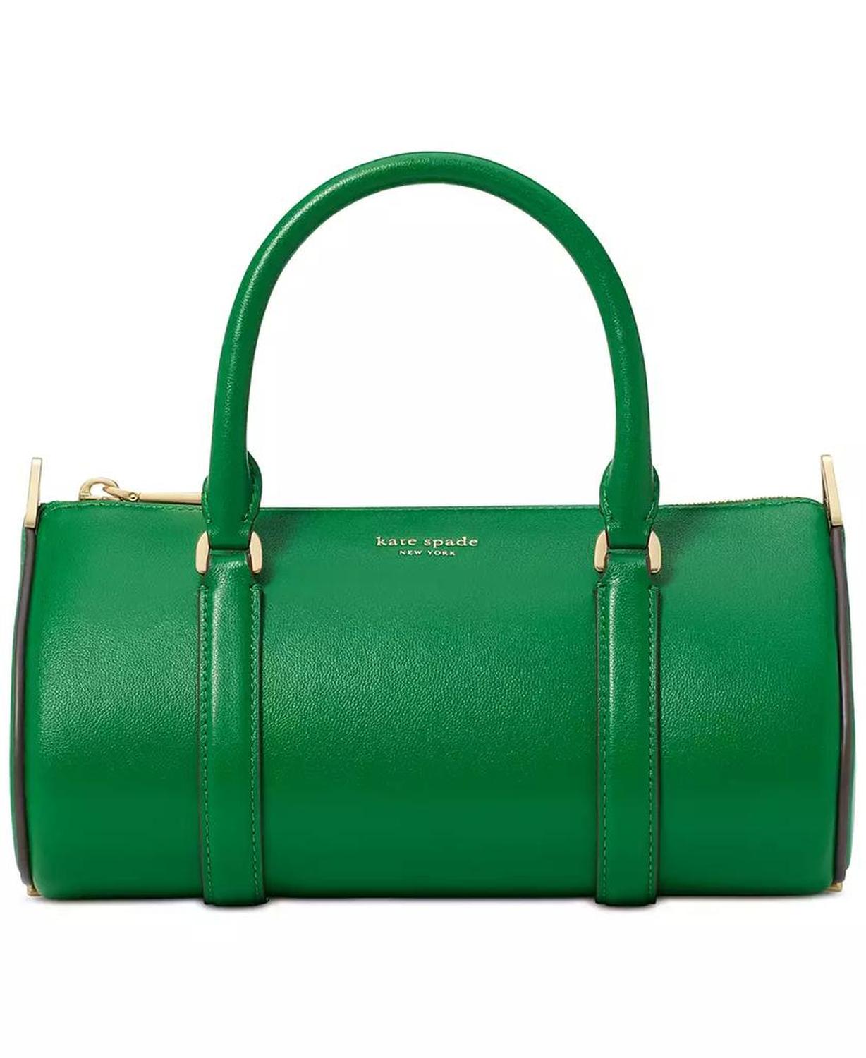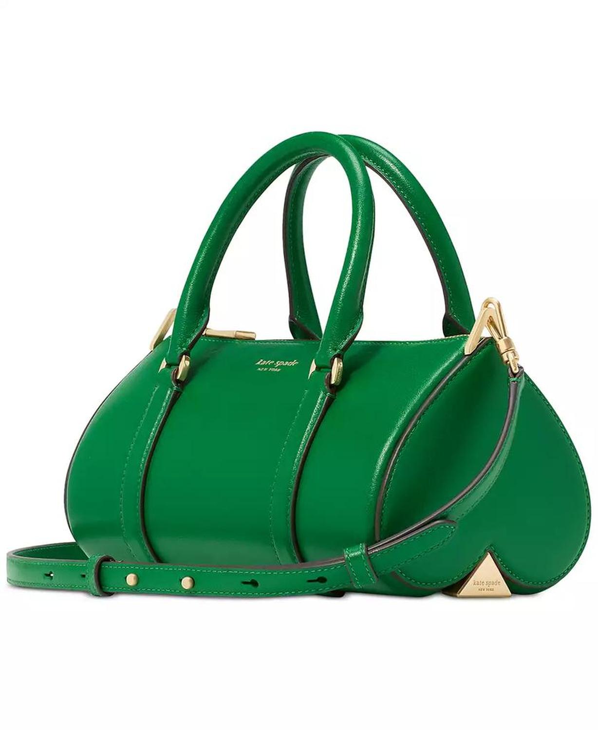 Redefining the classic barrel bag, this leather accessory by kate spade new york is realized in an iconic spade shape with a removable strap for style versatility.