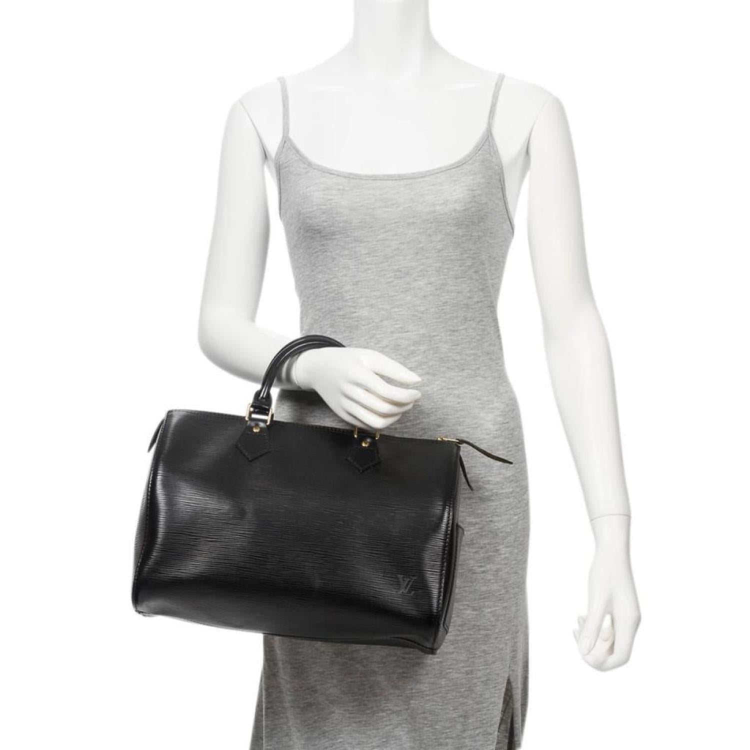 - Louis Vuitton Handbag in Black Epi and Golden Brass hardware. Dimensions - 32*22*18cm. Serial number - VI0965 (Jun 1995). Inclusions - None. Pre-Owned