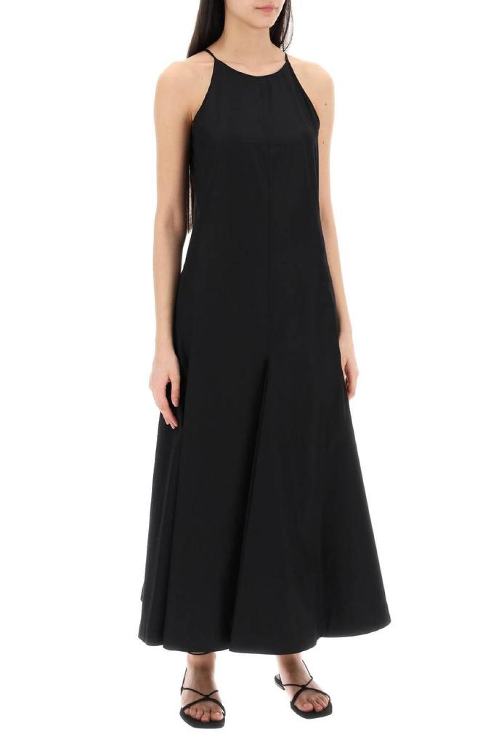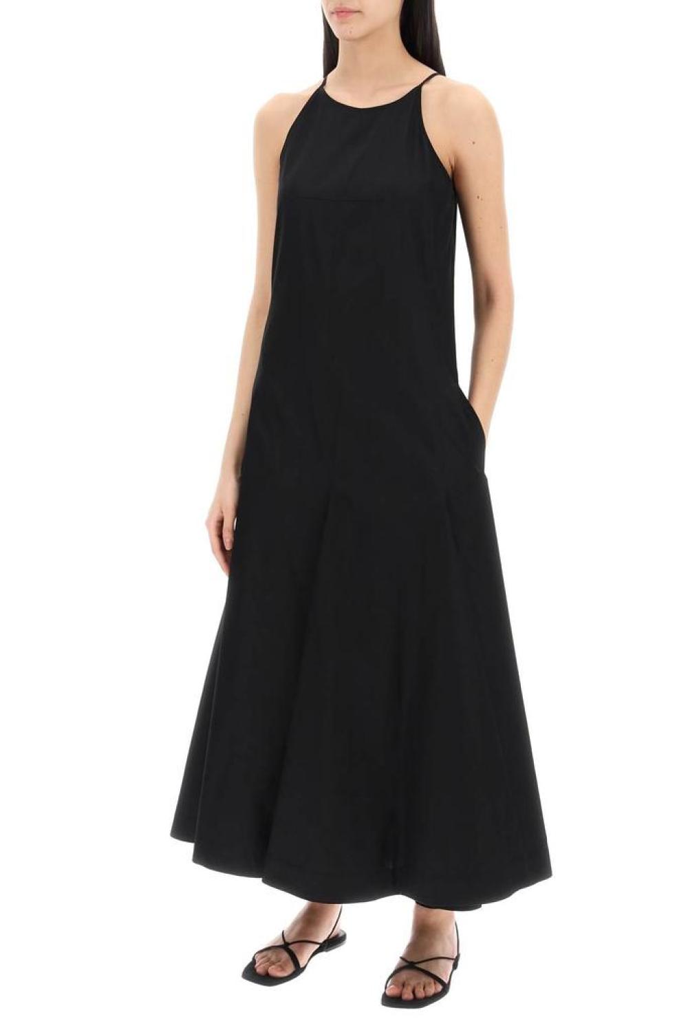 The Sportmax maxi dress has a fitted and flared silhouette, made of pure cotton poplin. It features pockets on the sides and is framed by a round neckline and wide armholes. The pleats on the skirt accentuate its volume. It has an invisible zip closure at the back and an unlined interior. The model is 177 cm tall and wears size IT 38.