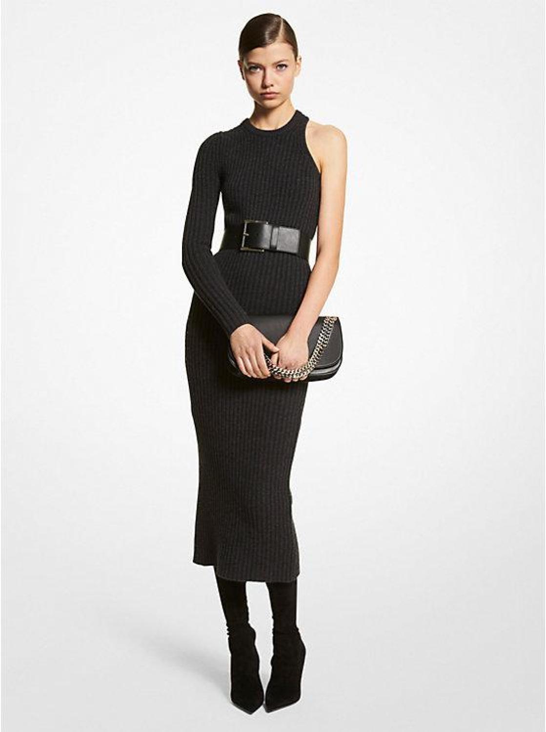• The best of both worlds. Defined by a striking asymmetric one-shoulder neckline, this modern take on the classic sweaterdress made its debut on our Fall/Winter 2022 runway. It’s cut from sumptuous Italian-made stretch cashmere in a second-skin fit for an ultra-flattering silhouette, and falls to a mid-length hem. Complete the look with a complementing waist belt and sleek boots.