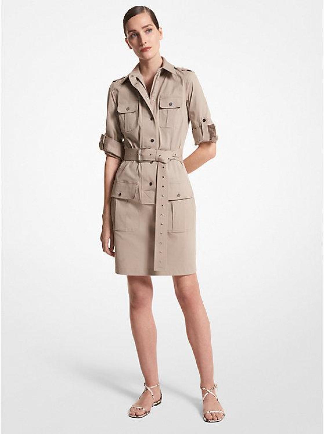 Stretch Organic Cotton Poplin Belted Cargo Shirtdress