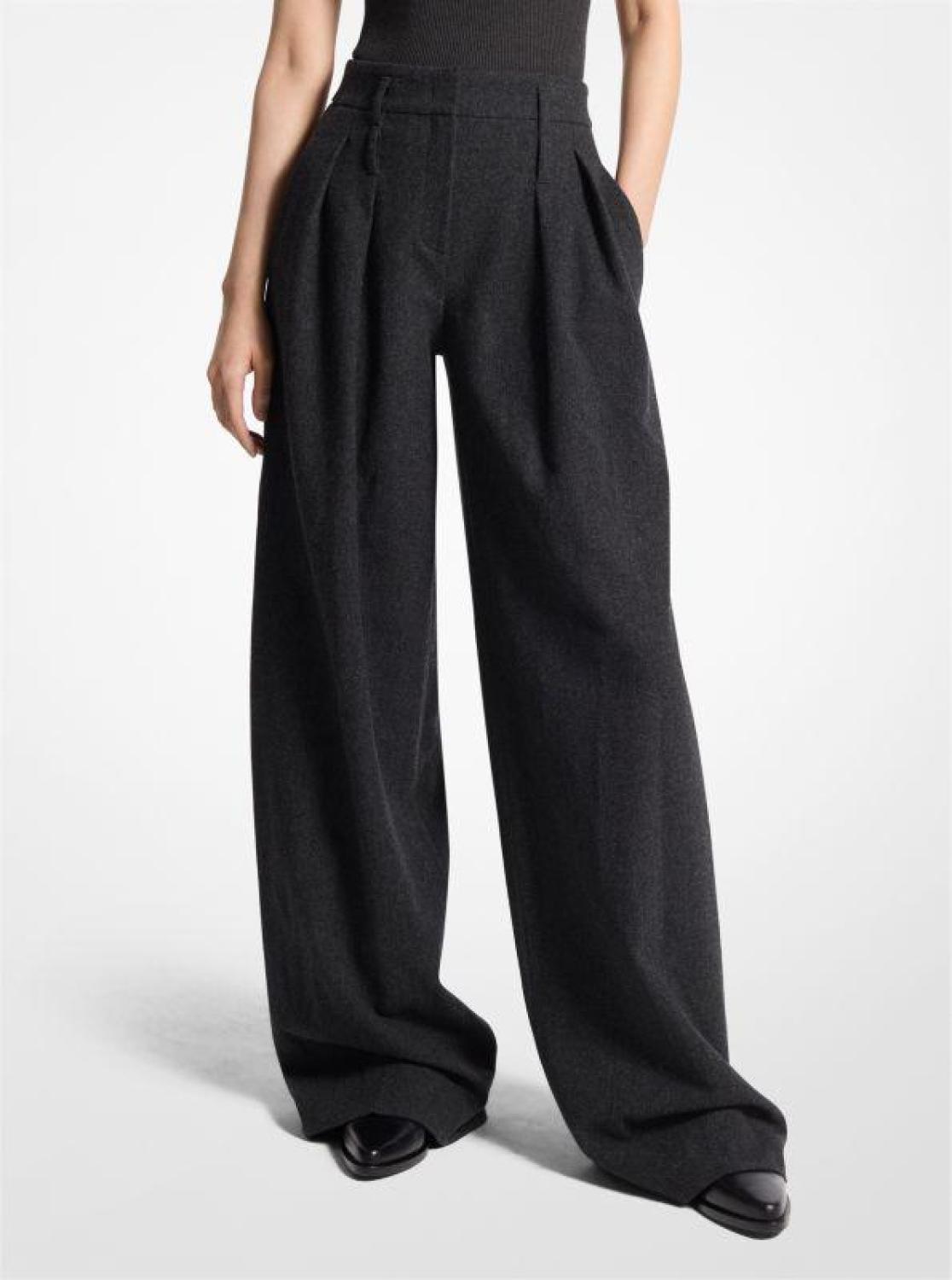 Stretch Wool Flannel Double Belted Pleated Trousers
