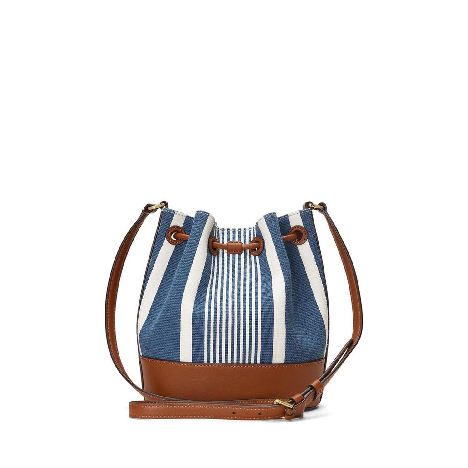 • Get ready to hit the town in style carrying the LAUREN Ralph Lauren® Striped Medium Andie Drawstring Bag! Made from durable canvas featuring a cross-dyed variegated striped pattern, this bag is both fashion-forward and practical. The adjustable crossbody strap ensures a comfortable fit, while the drawstring cinches at the front with an "LRL" brass-finished stopper for extra security. Plus, the magnetic snap closure makes accessing your essentials a breeze.