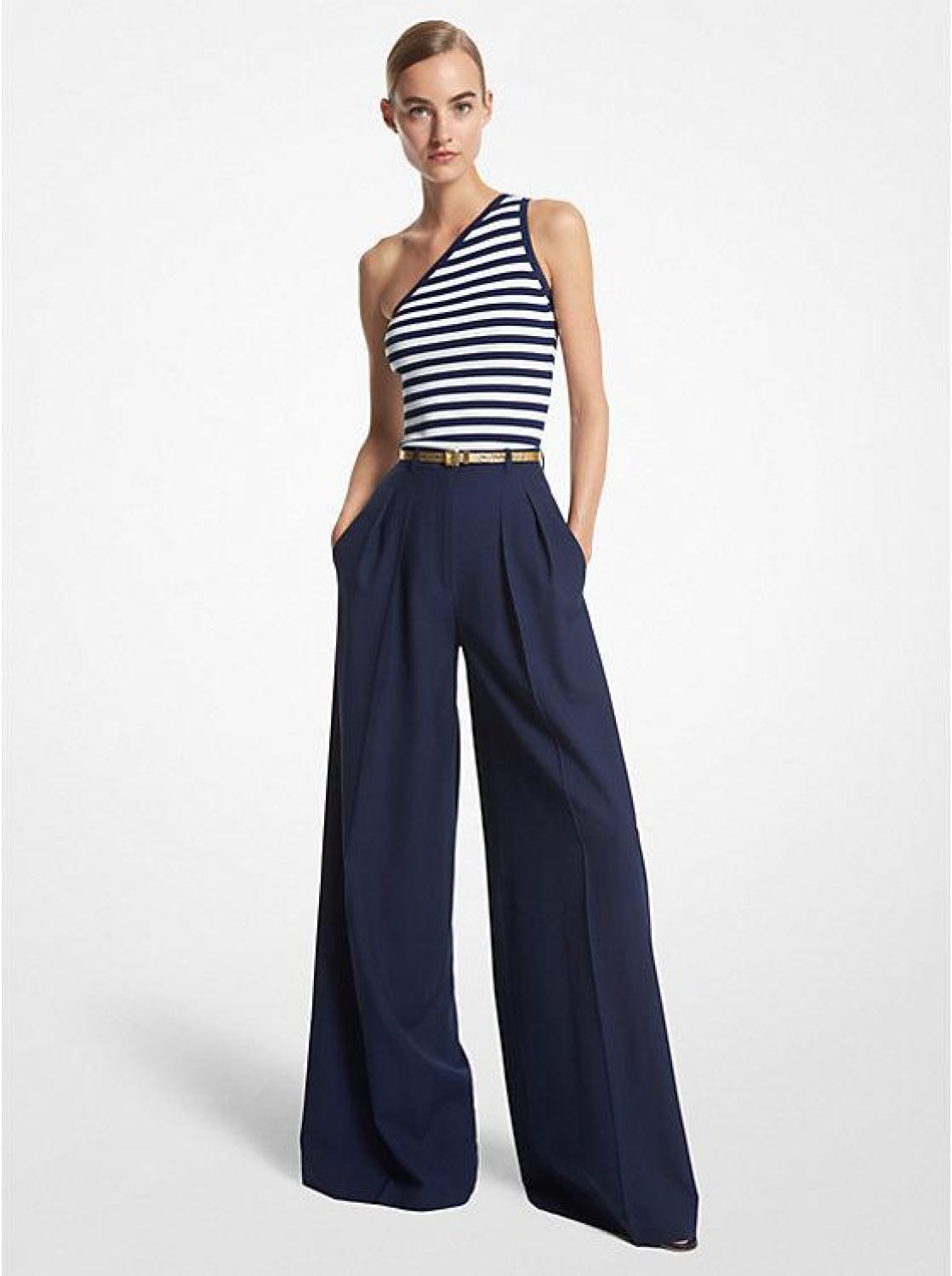 The essential warm-weather tank gets a nautical update with navy-and-white stripes. Crafted from body-sculpting Italian stretch viscose, it features a one-shoulder neckline and subtle ribbing. Balance the close-fitting silhouette with wide-leg pants. Tank Stretch viscose 57% viscose/13% polyester/21% nylon/9% elastane Dry clean Imported using Italian fabric Model is 5’10”/178 cm wearing size XS Tank Stretch viscose 57% viscose/13% polyester/21% nylon/9% elastane Dry clean Imported using Italian fabric Model is 5’10”/178 cm wearing size XS