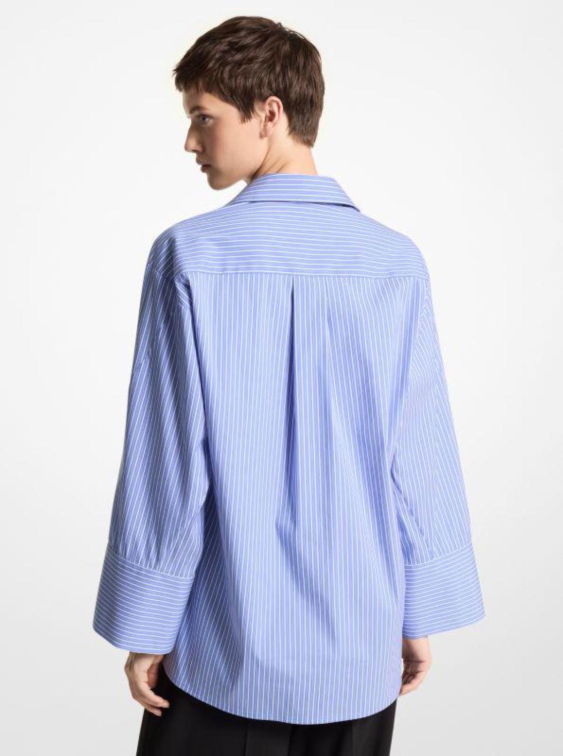 This finely crafted Italian shirt is a masterclass in modern tailoring. The striped stretch organic-cotton style features pressed seam detailing along the arms that enhance the artfully shaped sleeves. Temper the oversized silhouette by wearing it half-tucked into trousers.