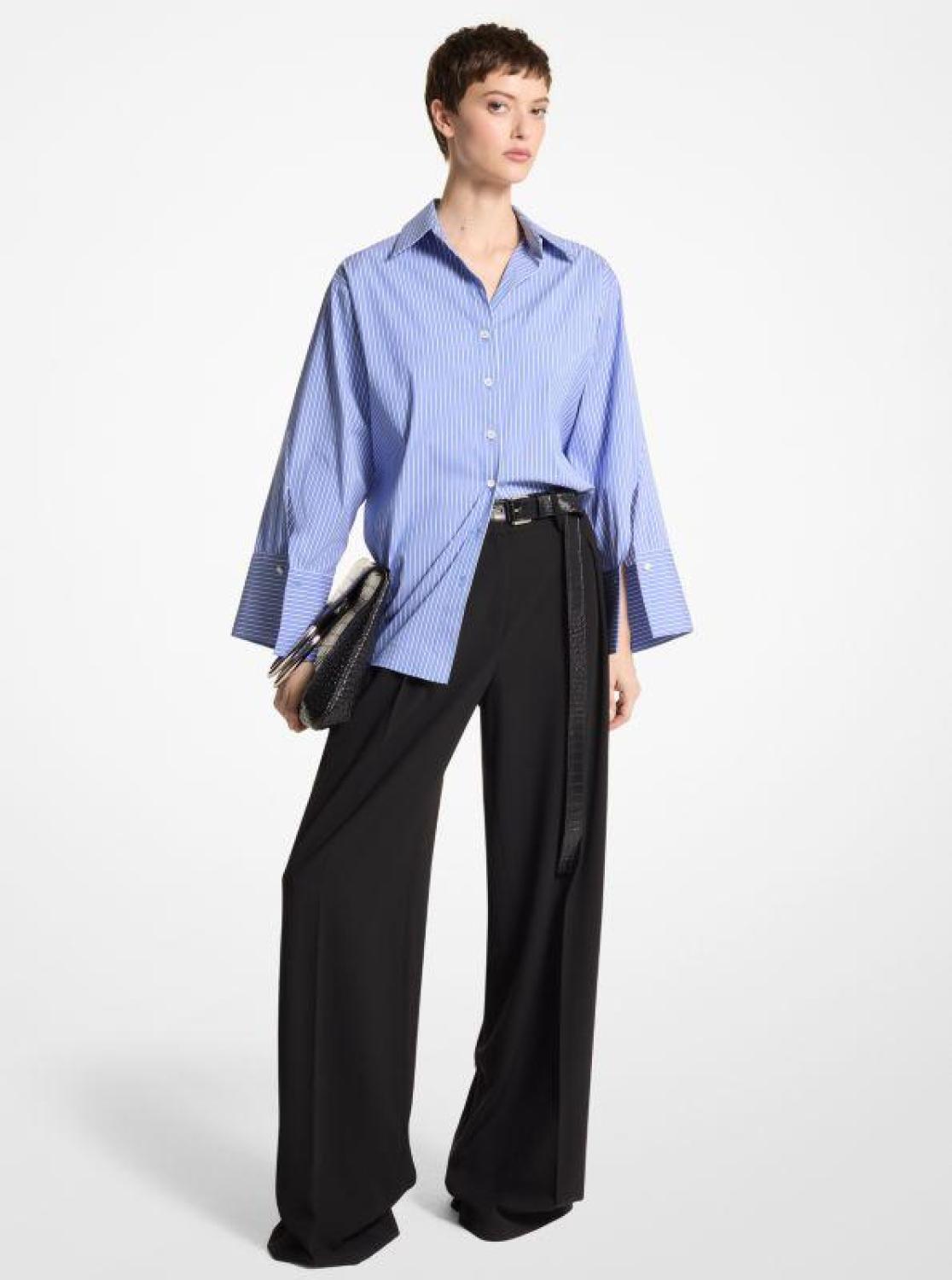• This finely crafted Italian shirt is a masterclass in modern tailoring. The striped stretch organic-cotton style features pressed seam detailing along the arms that enhance the artfully shaped sleeves. Temper the oversized silhouette by wearing it half-tucked into trousers.