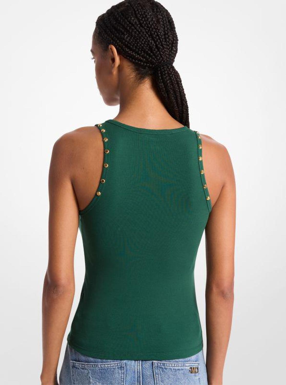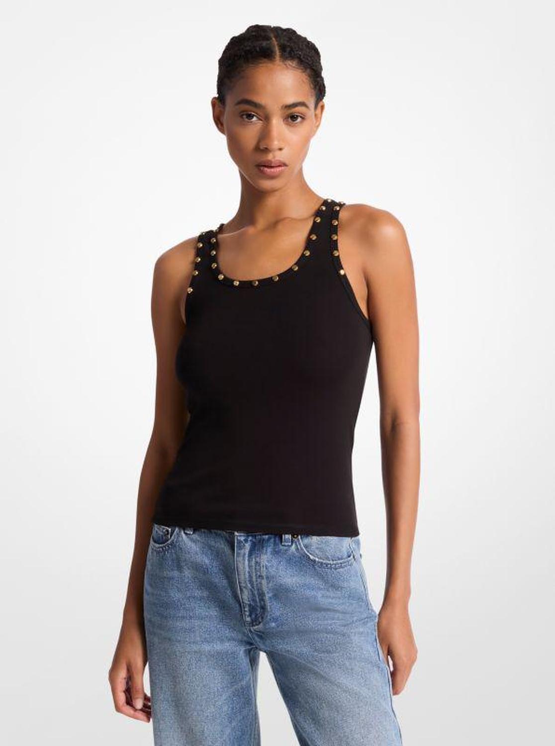 This tank top perfectly blends comfort and style. Drawing inspiration from our iconic Astor handbags, this top is woven from stretch cotton and detailed with studs at the scoop neckline. Wear it under a crisp button-down shirt, or a knit cardigan.