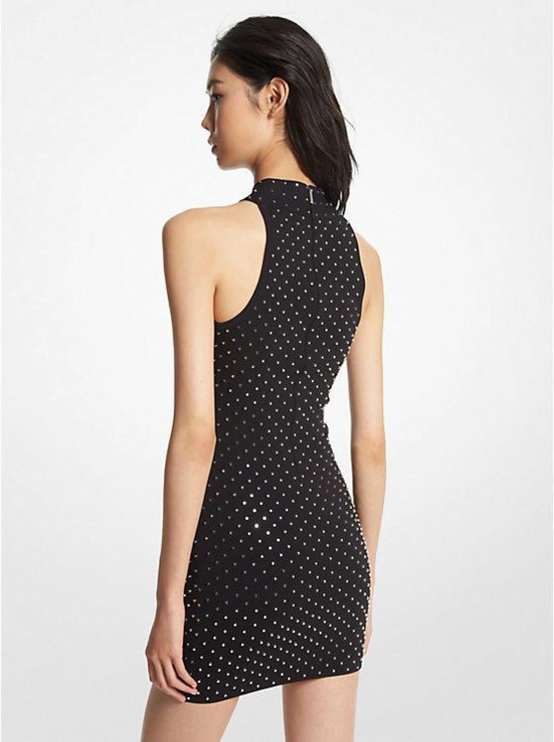 Bold and body-hugging, this mini dress is designed for nights out on the town. Cut from a soft and slightly stretchy knit fabric, this style has a halter neck and is finished with an even sprinkling of studs for an edgy look.