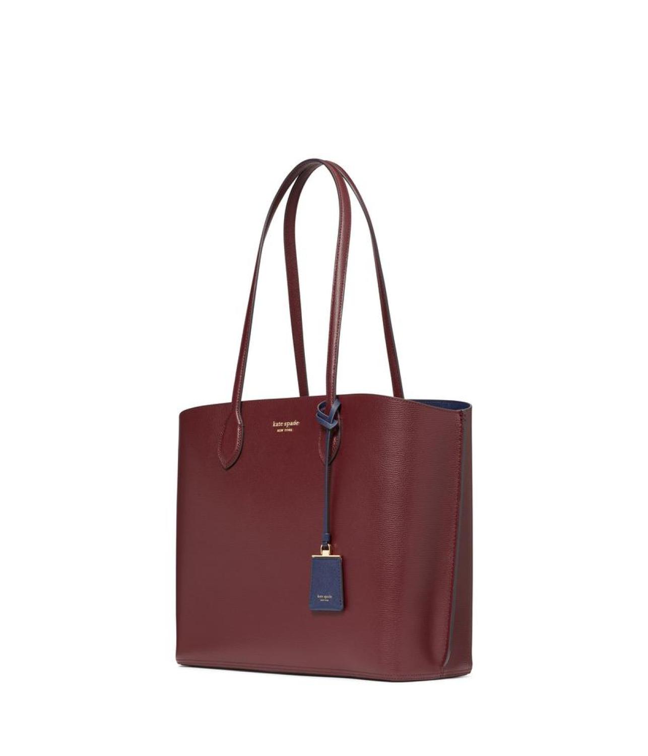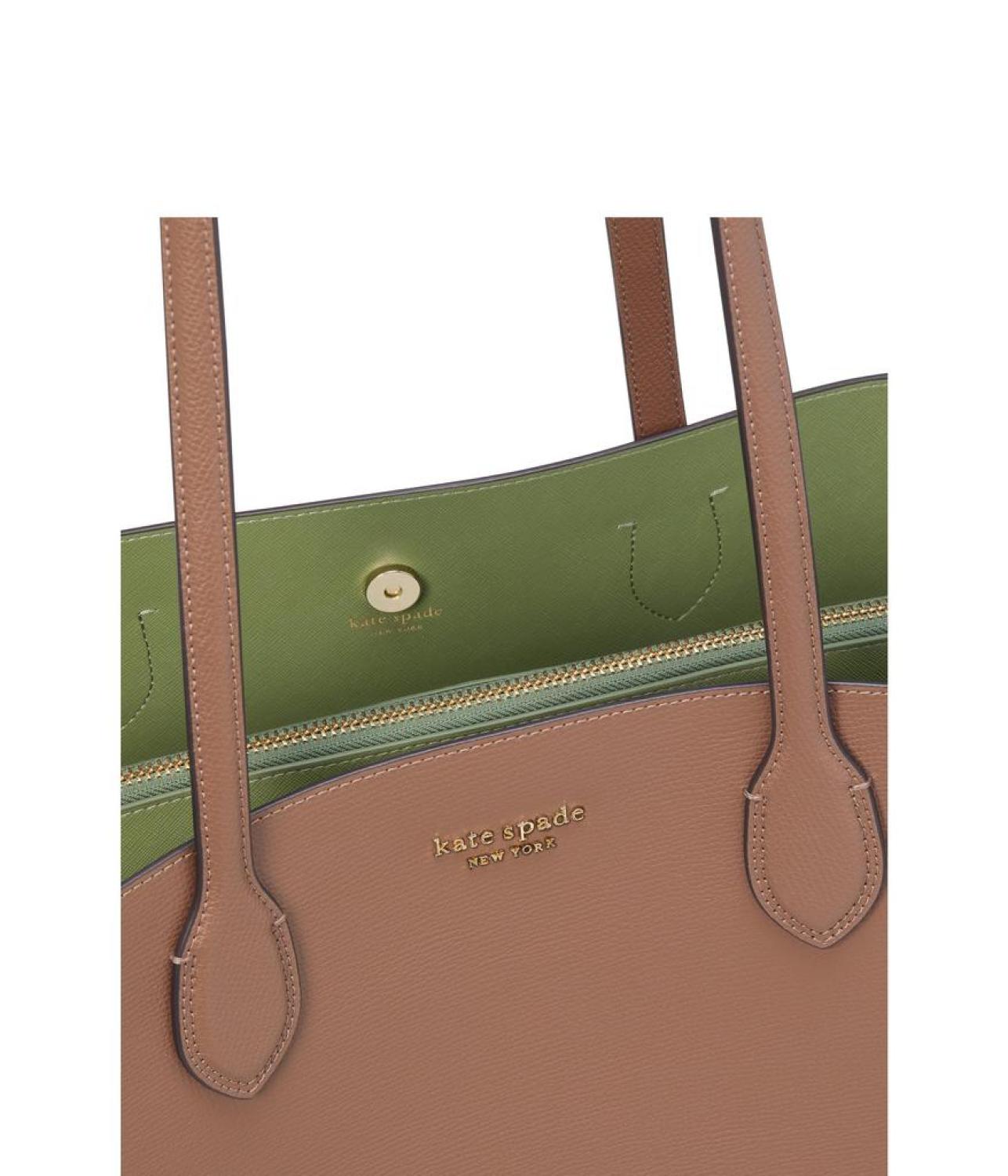 Treat yourself to the Kate Spade New York® Suite Crossgrain Leather Work Tote, a timeless piece that exudes elegance and practicality. Made from cow leather, this bag is a luxurious addition to your handbag collection. It features dual grab handles and a removable key clip, as well as two compartments with magnetic snap closure for easy access to your belongings. The interior zippered compartment keeps your essentials safe and secure. Interior slip pockets. Branding on the front. Polyester lining. Imported. Please note, the hardware color and interior lining may differ from the color shown in the photo.
