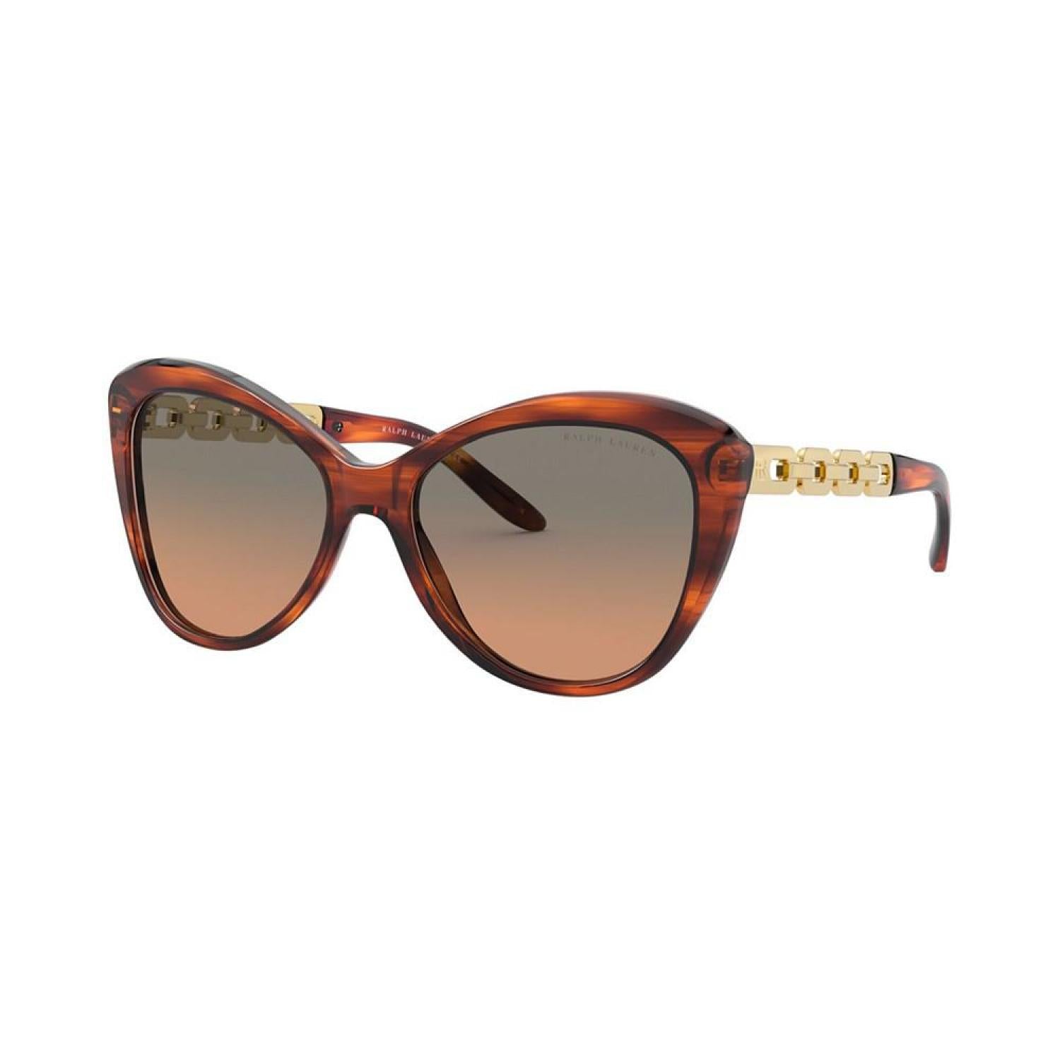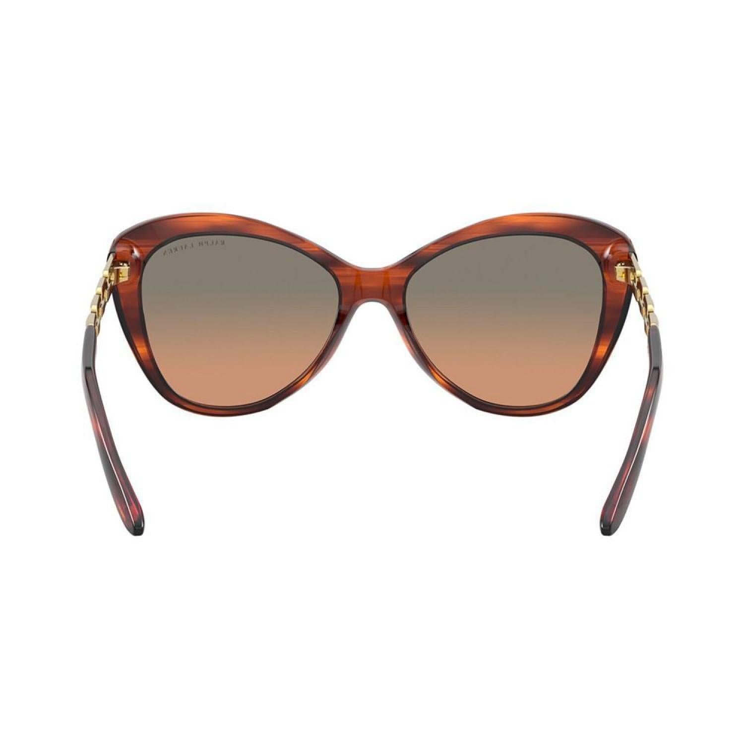 With a range of designs - from vintage looks and classic aviators to glamorous oversized shapes - the Ralph Lauren collection gives the modern woman striking ways to make her own style statement. The finest, most luxurious materials combined with iconic brand elements (such as the RL logo) make the eyewear collection unmistakably Ralph Lauren. Gender: FEMALE Frame Style: BUTTERFLY Frame Fit: STANDARD Lens Feature: GRADIENT Lens Material: POLYAMIDE Eye/Bridge/Temple: 56/17/140 Case or Microfiber pouch included