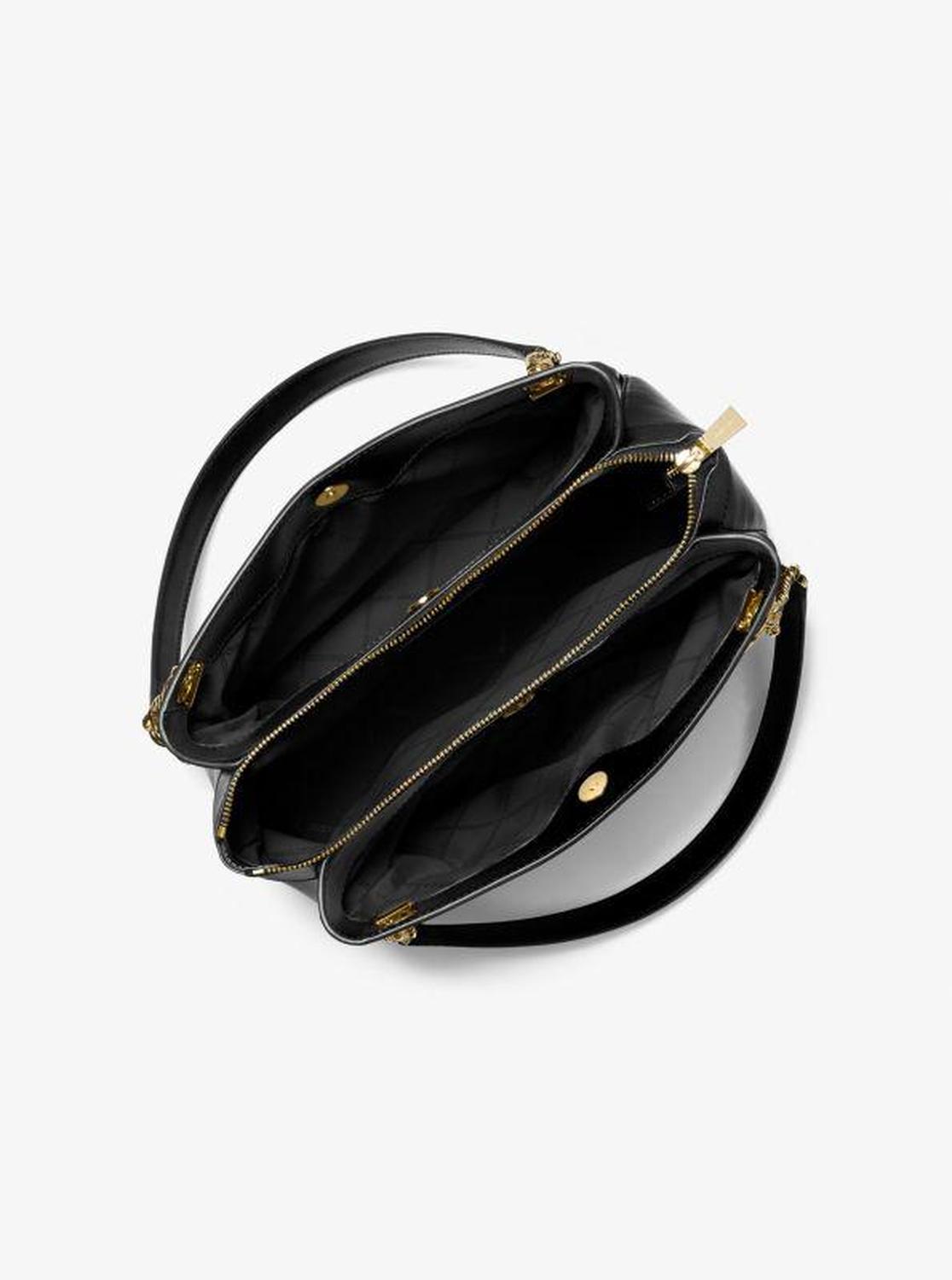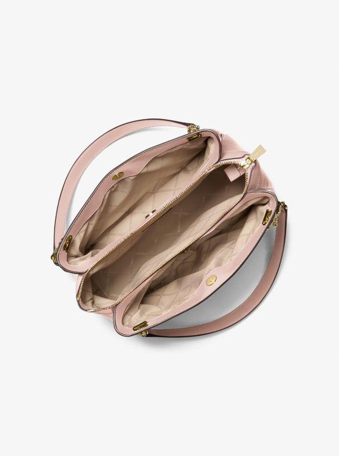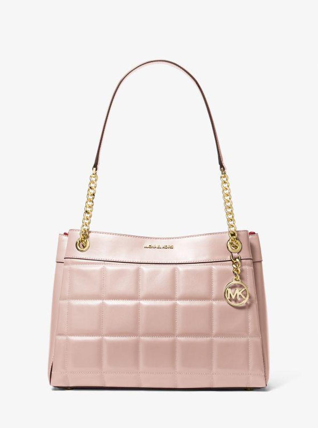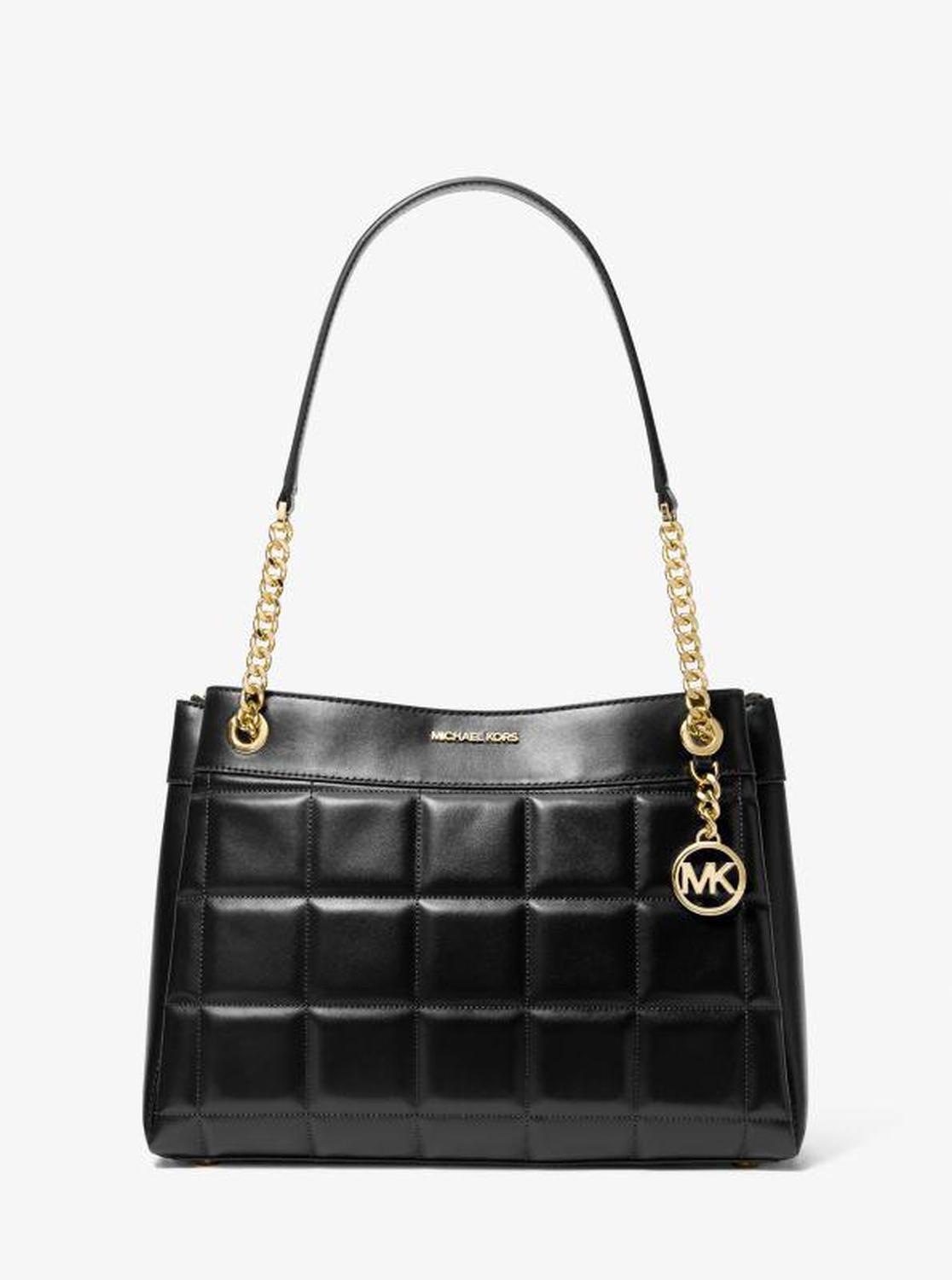 • The Susan tote bag is a chic choice for moments when you want to carry more than your pockets can hold. The quilted design is made from leather that’s detailed with our logo lettering. Use the center compartment to store your phone and other essentials.