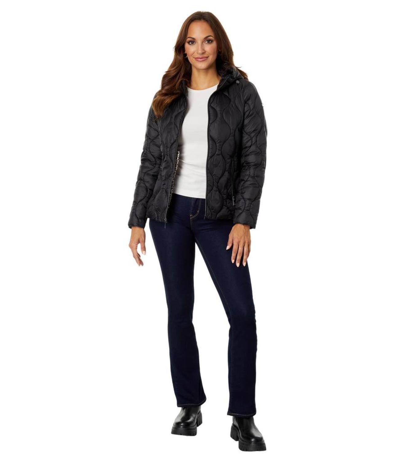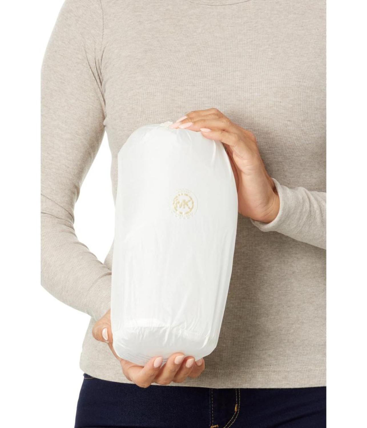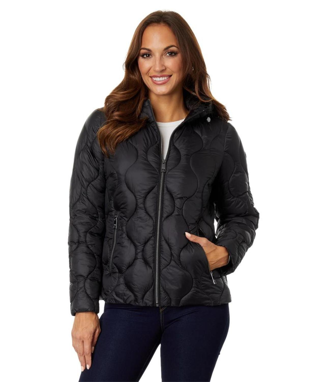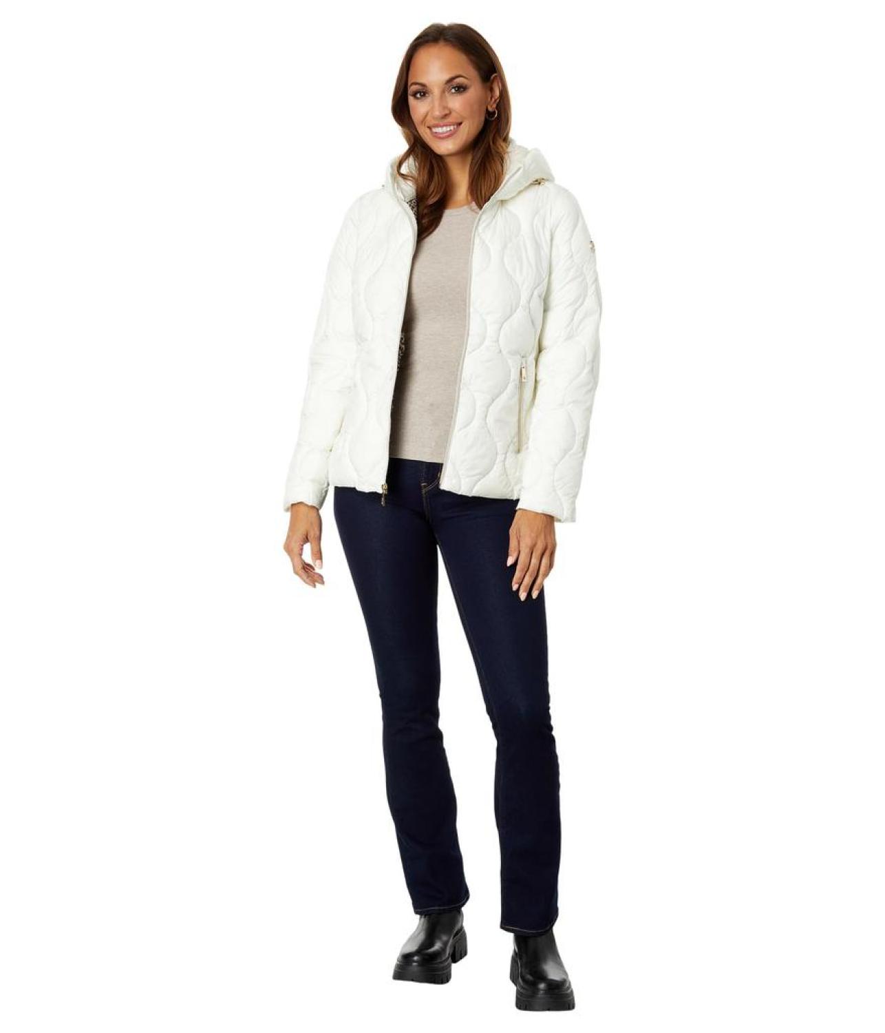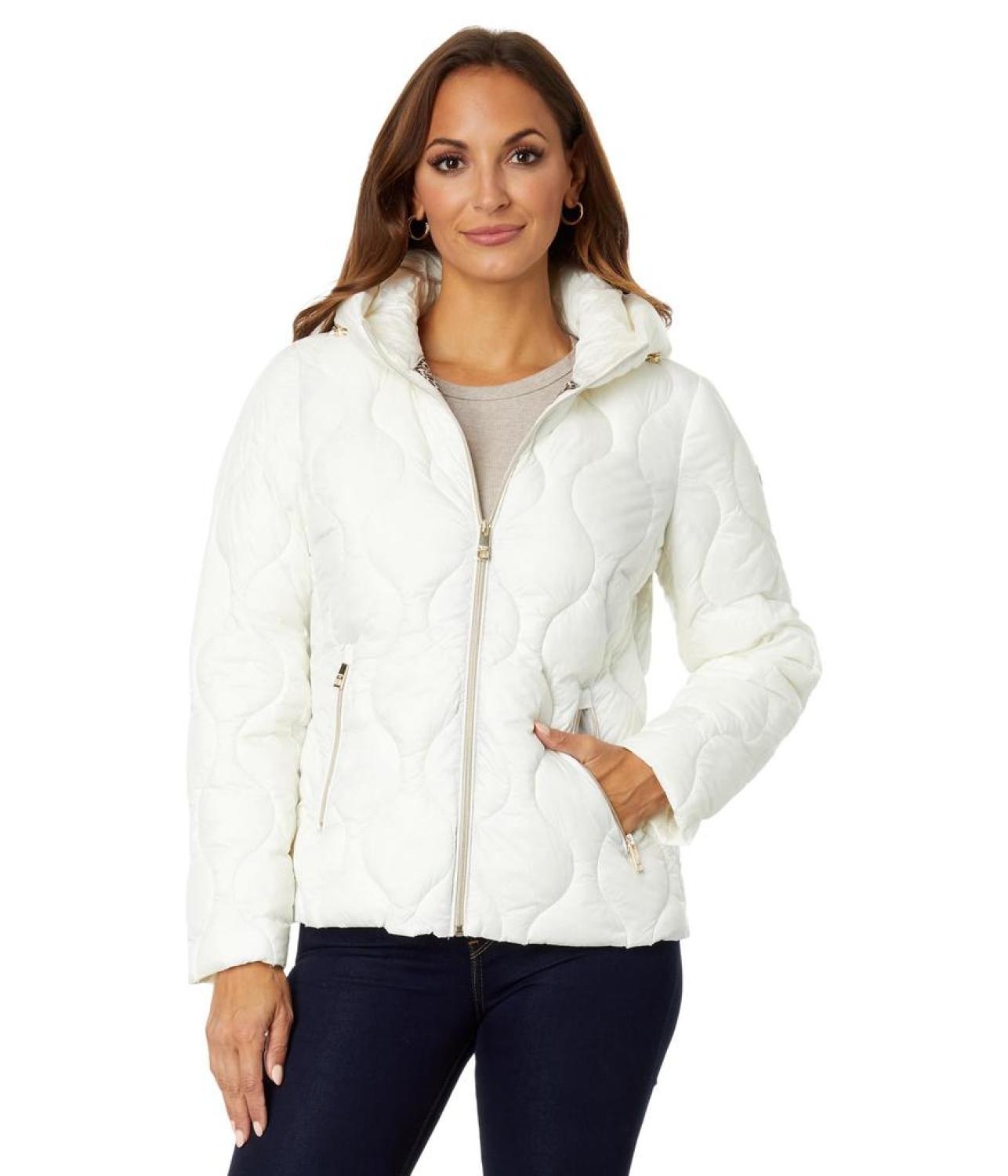 Keep away the fear of chills when you are outdoors on a cold day by wearing MICHAEL Michael Kors® Swirl Packable Quilt M426052C67 jacket. The jacket features a hood and zip front closure. Long sleeves provide coverage while handwarmer pockets keep you extra warm. It has a quilted pattern.