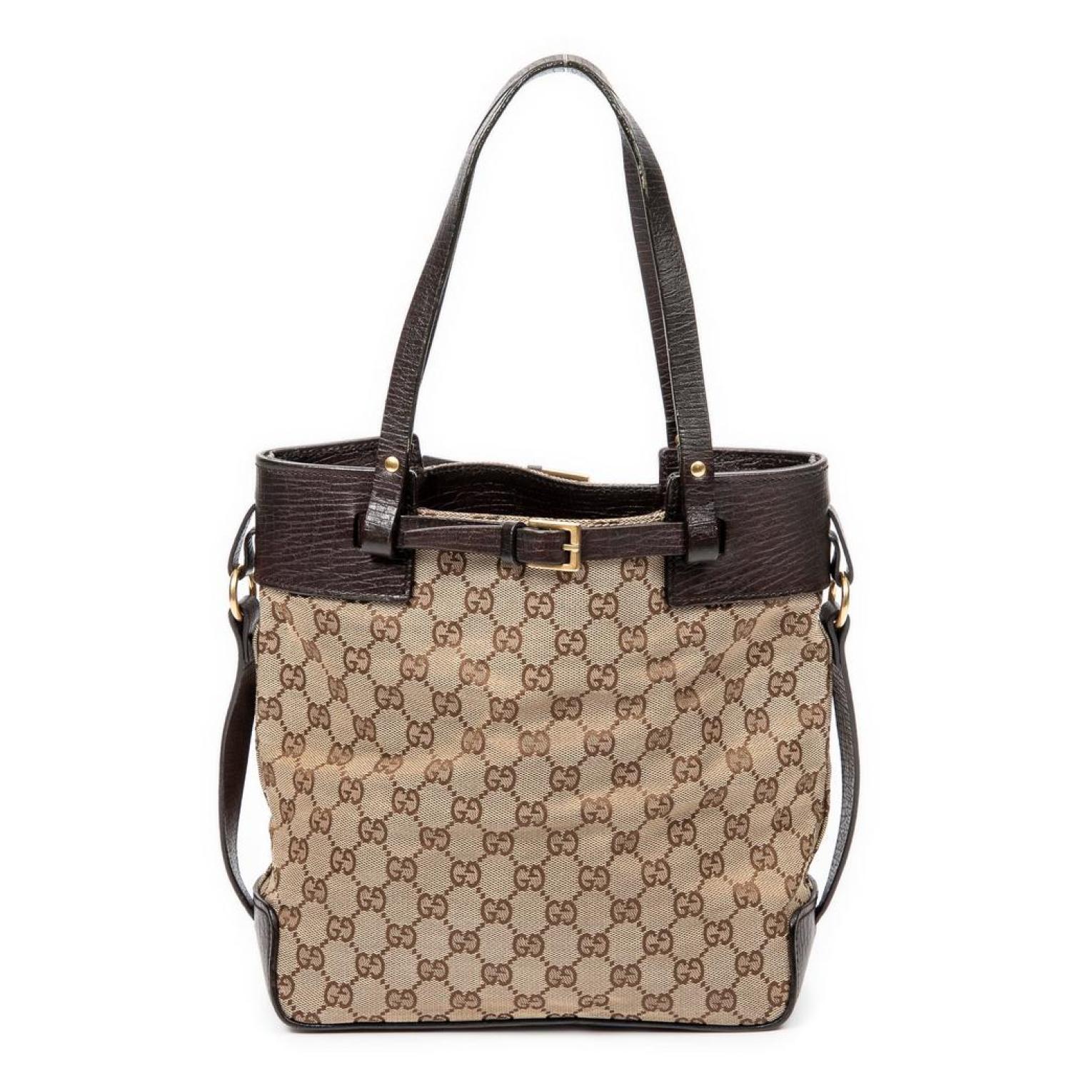 Gucci Shoulder Bag in Beige/Dark Brown Monogrammed Canvas and Gold hardware. Dimensions - 25*27*10cm. Serial number - 107757 213043. Inclusions - None.