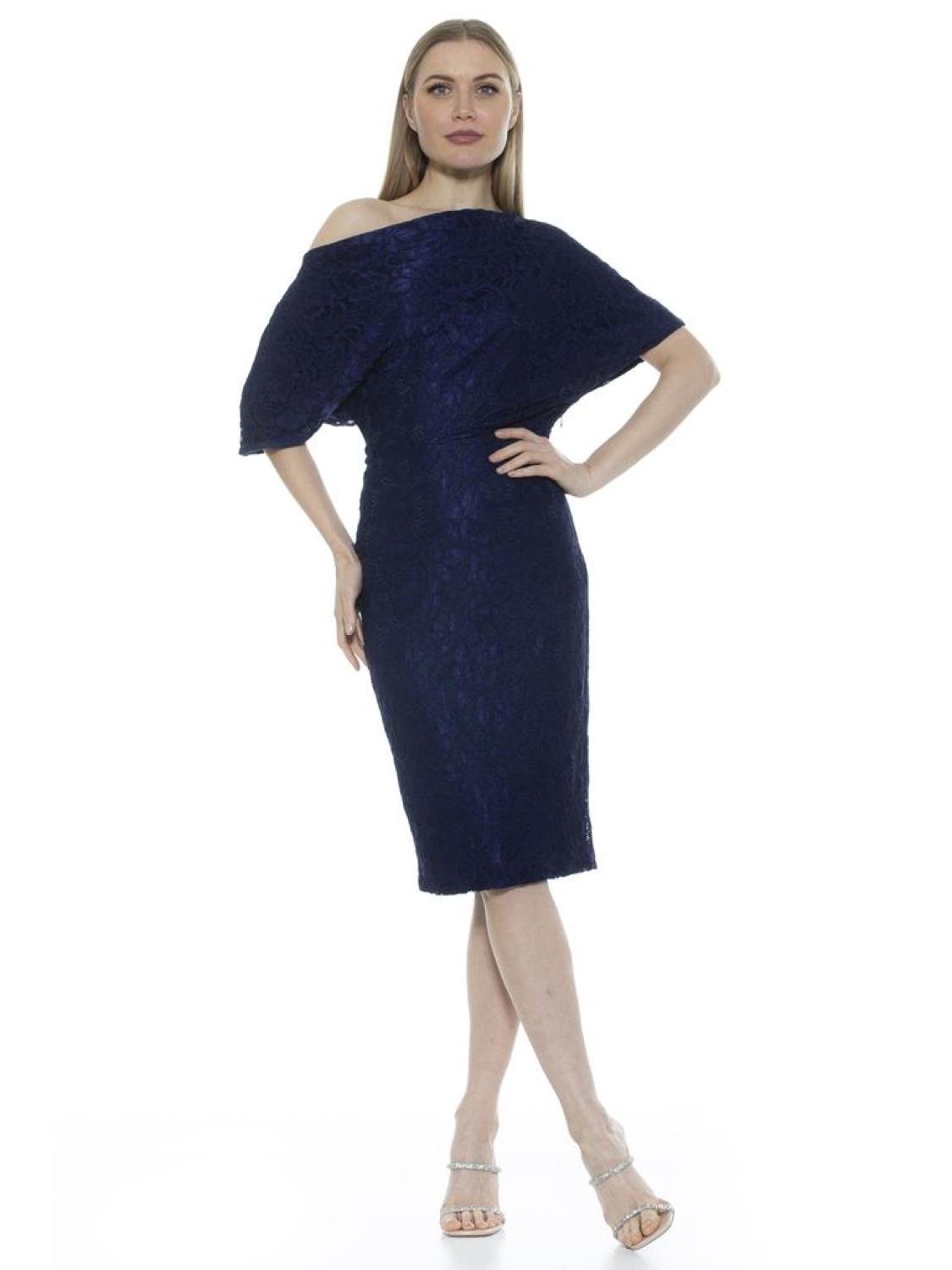 • PRODUCT FEATURES Invisible zip closure One shoulder Short sleeve Lace Material 90% Nylon, 10% Spandex Lining - 100% Polyester Hand Wash Imported Style D3342A