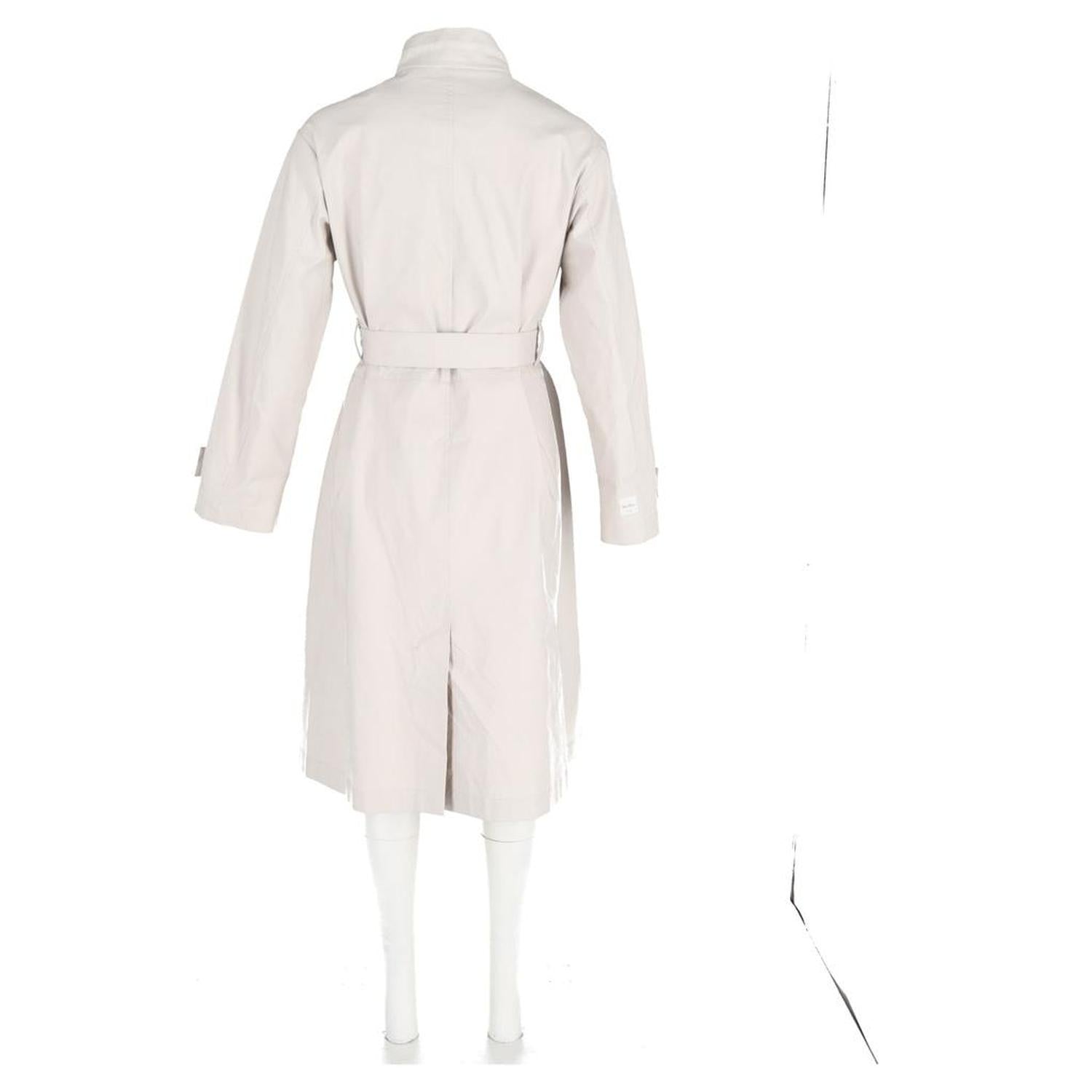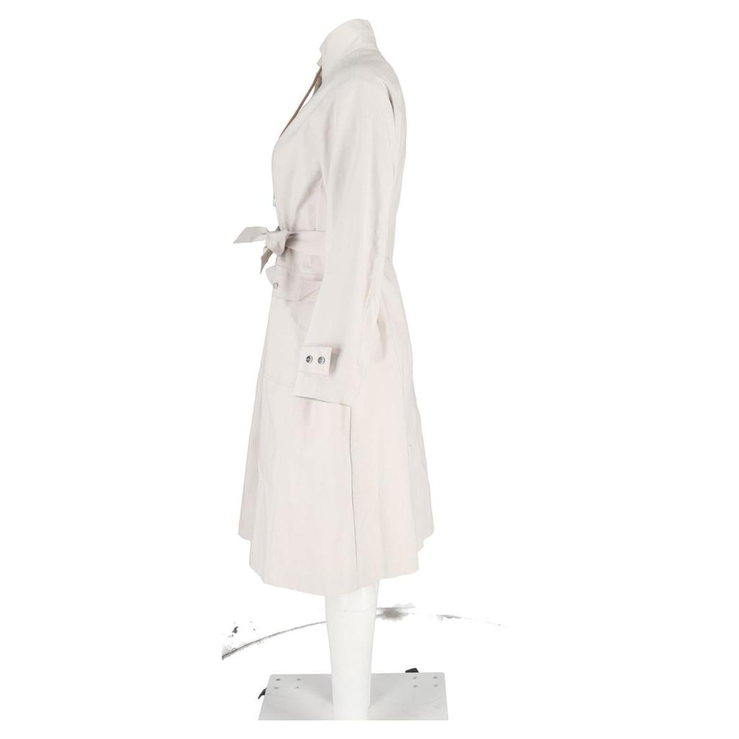 Elevate your outerwear collection with the Max Mara The Cube Marco Overcoat in White Cotton, a timeless piece that exudes sophistication and elegance. This coat features a classic white hue that adds a touch of refinement to any outfit. Detailed with two flap patch pockets, frog fastener-embellished cuffs, and a vent on the back, this coat combines functionality with style. The press-stud fastening and matching belt provide a cinched silhouette, creating a flattering and polished look. Perfect for a chic and sophisticated aesthetic, the Max Mara The Cube Marco Overcoat is a versatile wardrobe staple that will elevate your style effortlessly.Max Mara The Cube Marco Overcoat in White CottonCondition - Very goodSigns of wear - No retail tag but Brand tag on., Minor sign of wear or markings., Lightly used but very well maintained. Small pull thread or light peeling.Packaging - NoneColor - White Material - Cotton | cotton denimSize - EU36/XSMeasurements - Length - 1120; Chest - 500SKU - NAPPUGBCL402898W