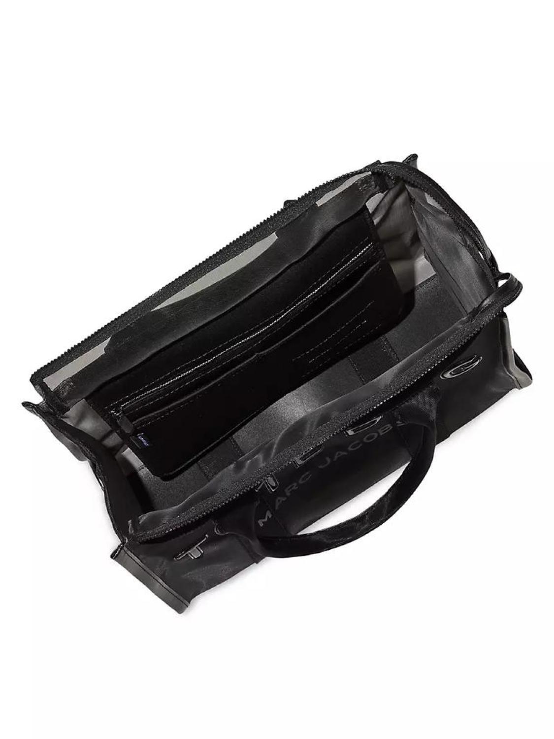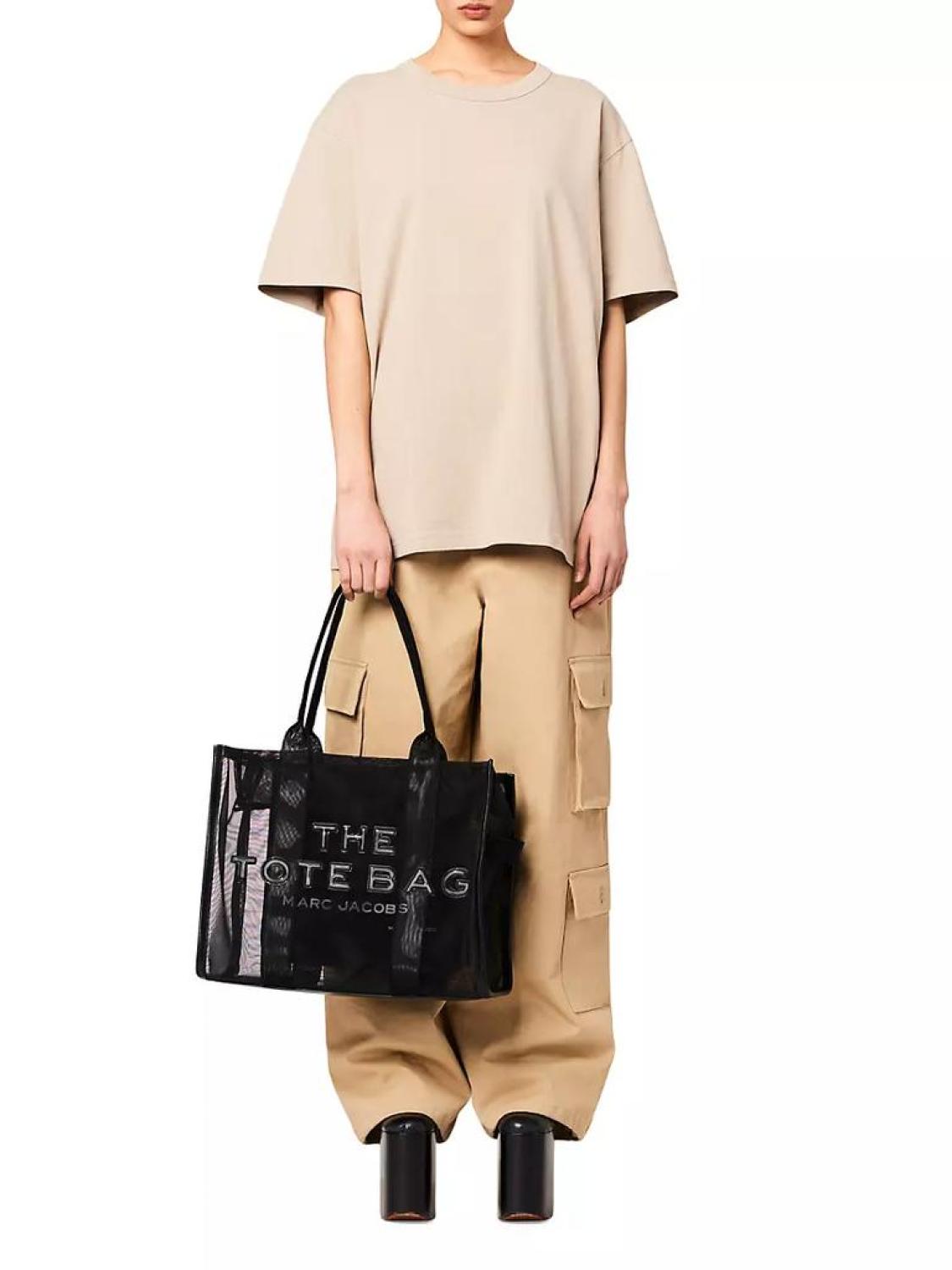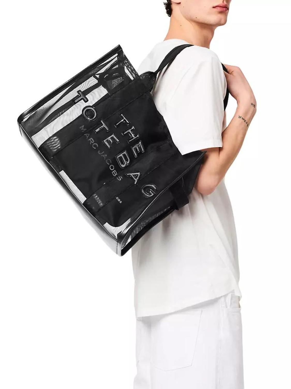 • A semi-sheer mesh construction with satin-finish trim adds a modern sporty edge to this roomy tote.