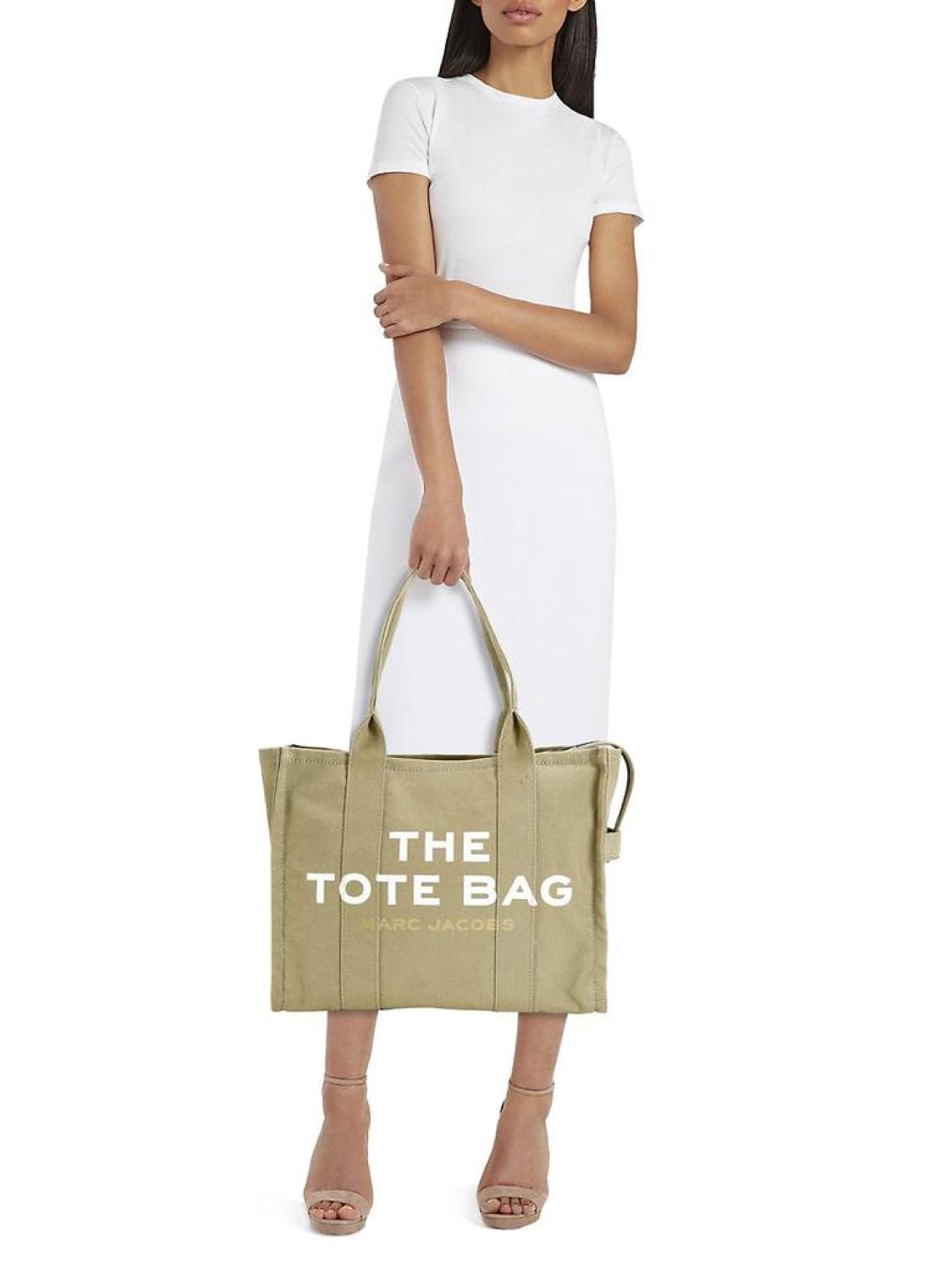 Emblazoned with a meta slogan, this tote bag features a spacious interior and logo accents.Top zip closureBlack hardwareTwo interior slip pocketsFully linedCottonImportedSIZEDouble top handles, 9.45" drop16.54"W x 13.39"H x 6.3"D