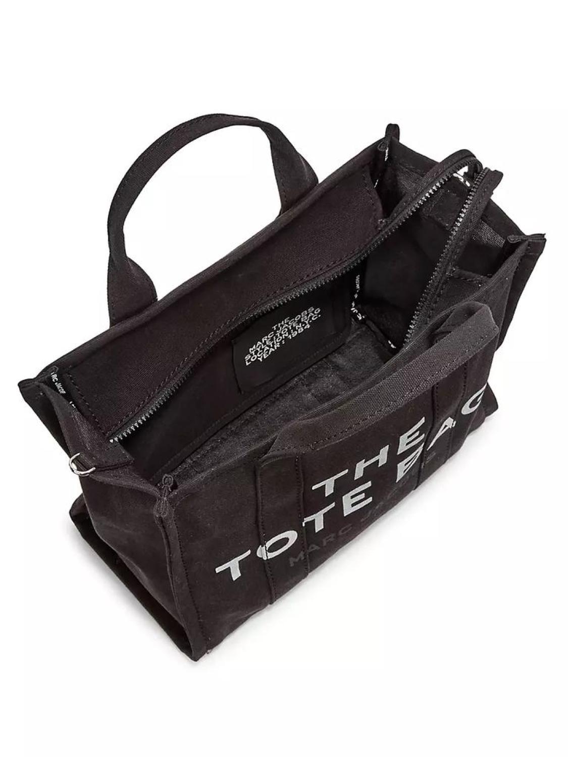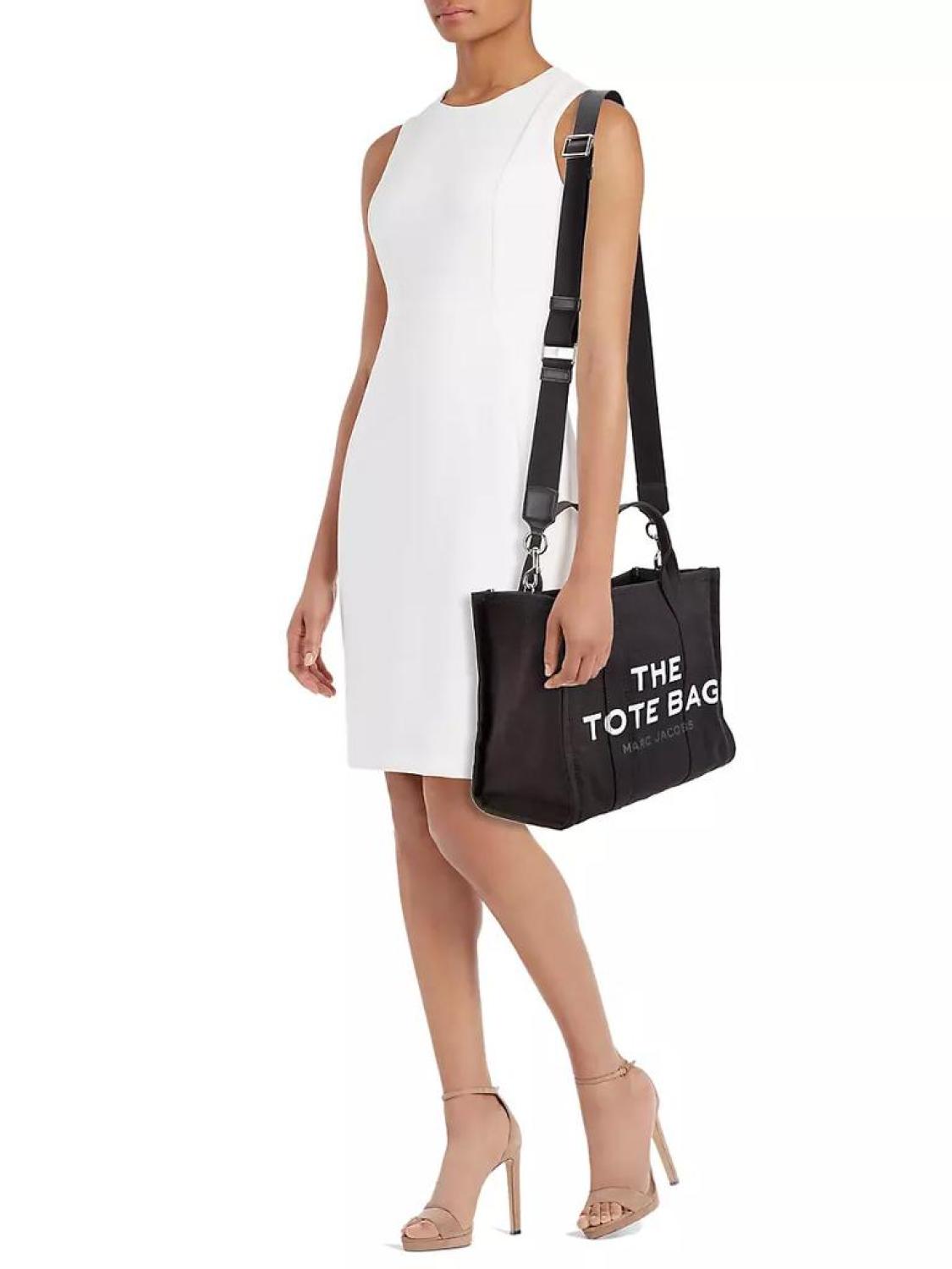 This tote bag showcases a meta slogan to produce a quirky vibe.Top zip closureSilvertone hardwareCottonImportedSIZEDouble top handles, 4.72" dropAdjustable, removable crossbody strap, 27" drop13.25"W x 10.5"H x 6"D