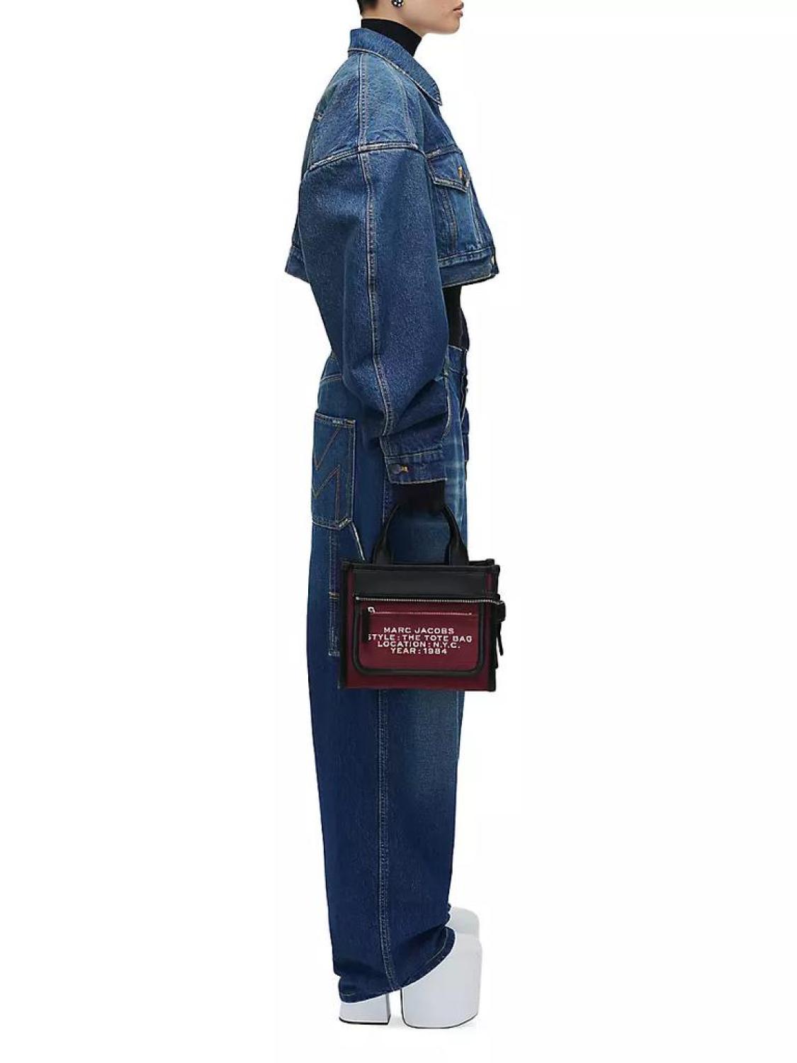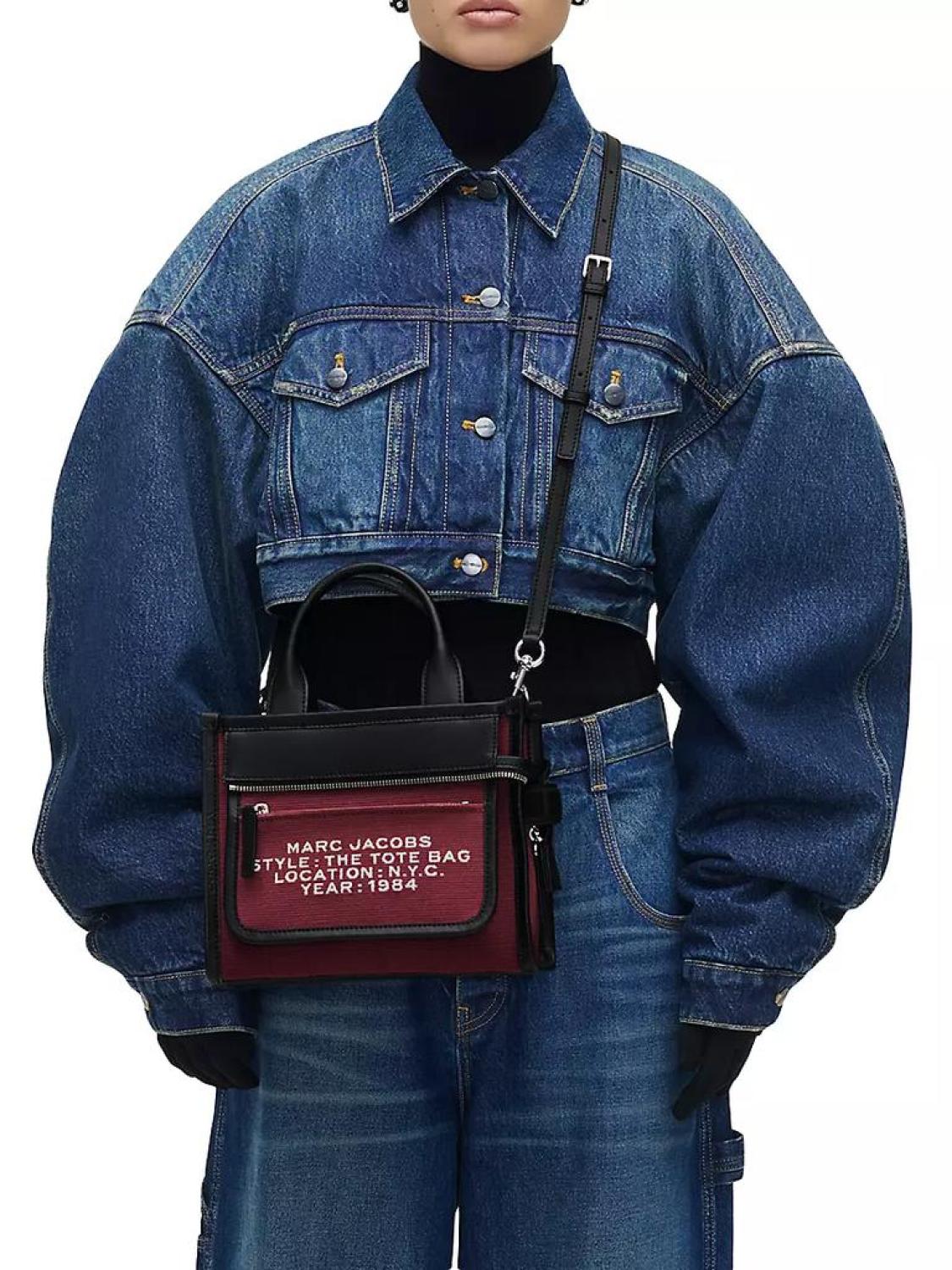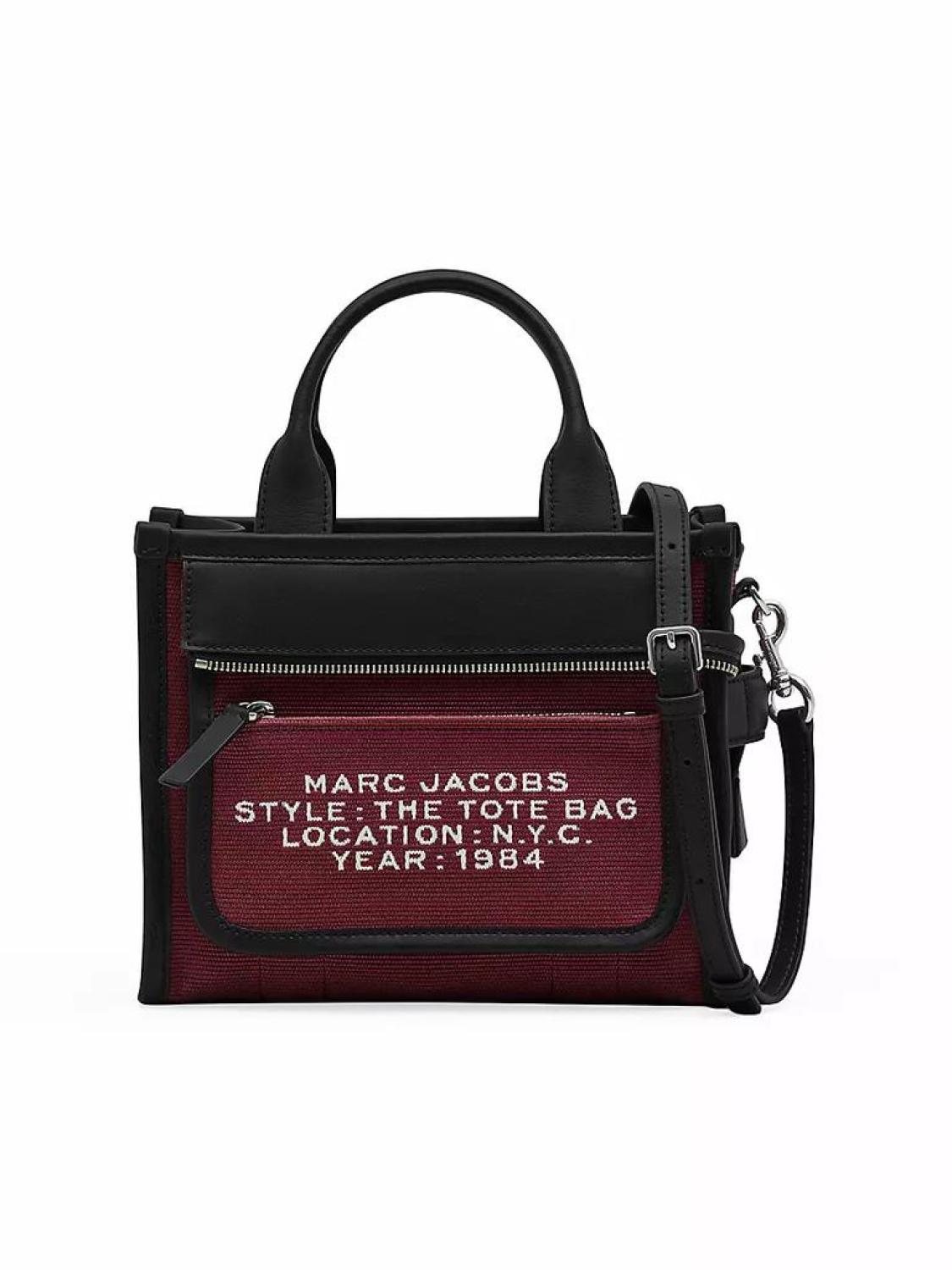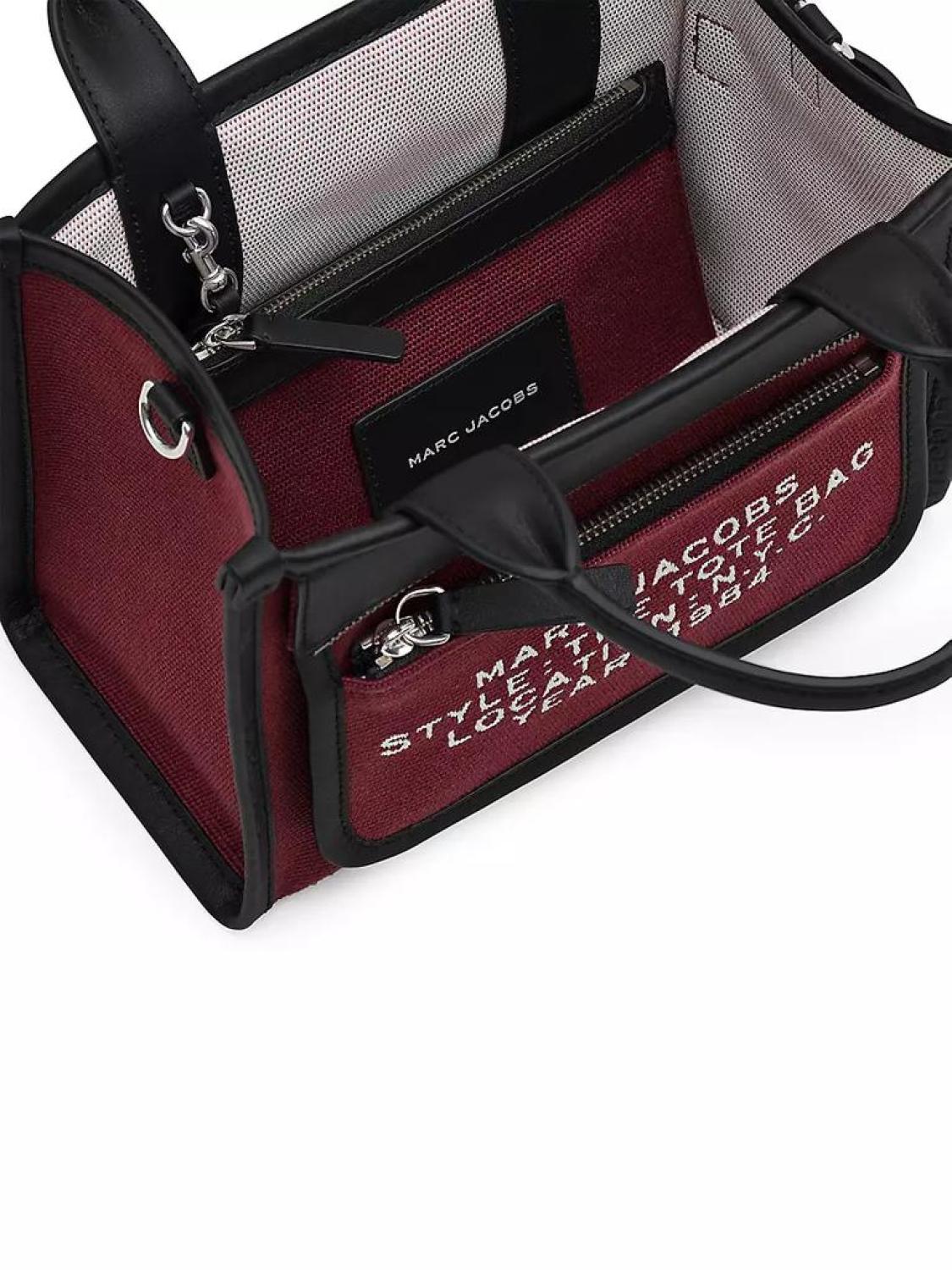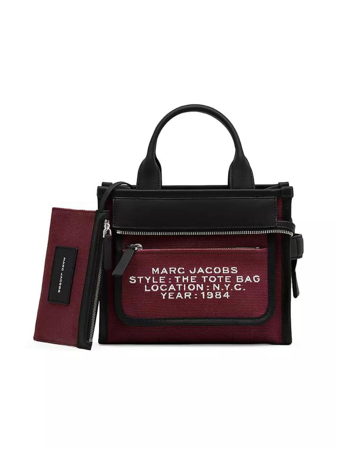 Marc Jacobs' Inside-Out tote bag is designed with front zip pocket with a jacquard logo pattern. A removable internal zip pouch provides extra compartmentalization. Two top handles Adjustable, removable leather strap Exterior: one front zip pocket Separate zip pouch Includes dust bag Dog clip closure 64% cotton/6% polyester Lining: 100% polyester Imported SIZE About 9"W x 8.25"H x 4.75"D Two top handles: about 4.5" drop Adjustable, removable leather strap: about 22.5" drop Marc Jacobs' Inside-Out tote bag is designed with front zip pocket with a jacquard logo pattern. A removable internal zip pouch provides extra compartmentalization.Two top handlesAdjustable, removable leather strapExterior: one front zip pocketSeparate zip pouchIncludes dust bagDog clip closure64% cotton/6% polyesterLining: 100% polyesterImportedSIZEAbout 9"W x 8.25"H x 4.75"DTwo top handles: about 4.5" dropAdjustable, removable leather strap: about 22.5" drop