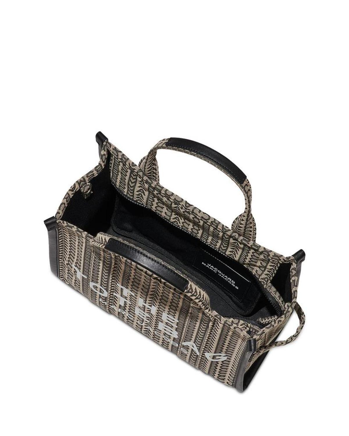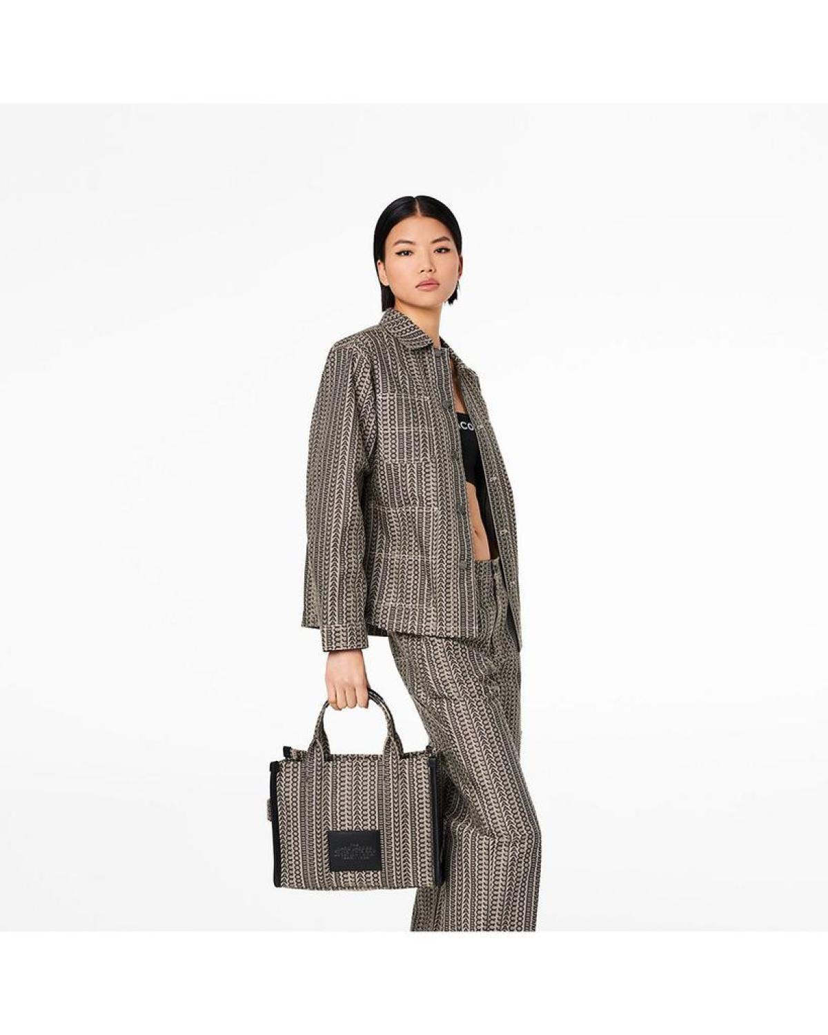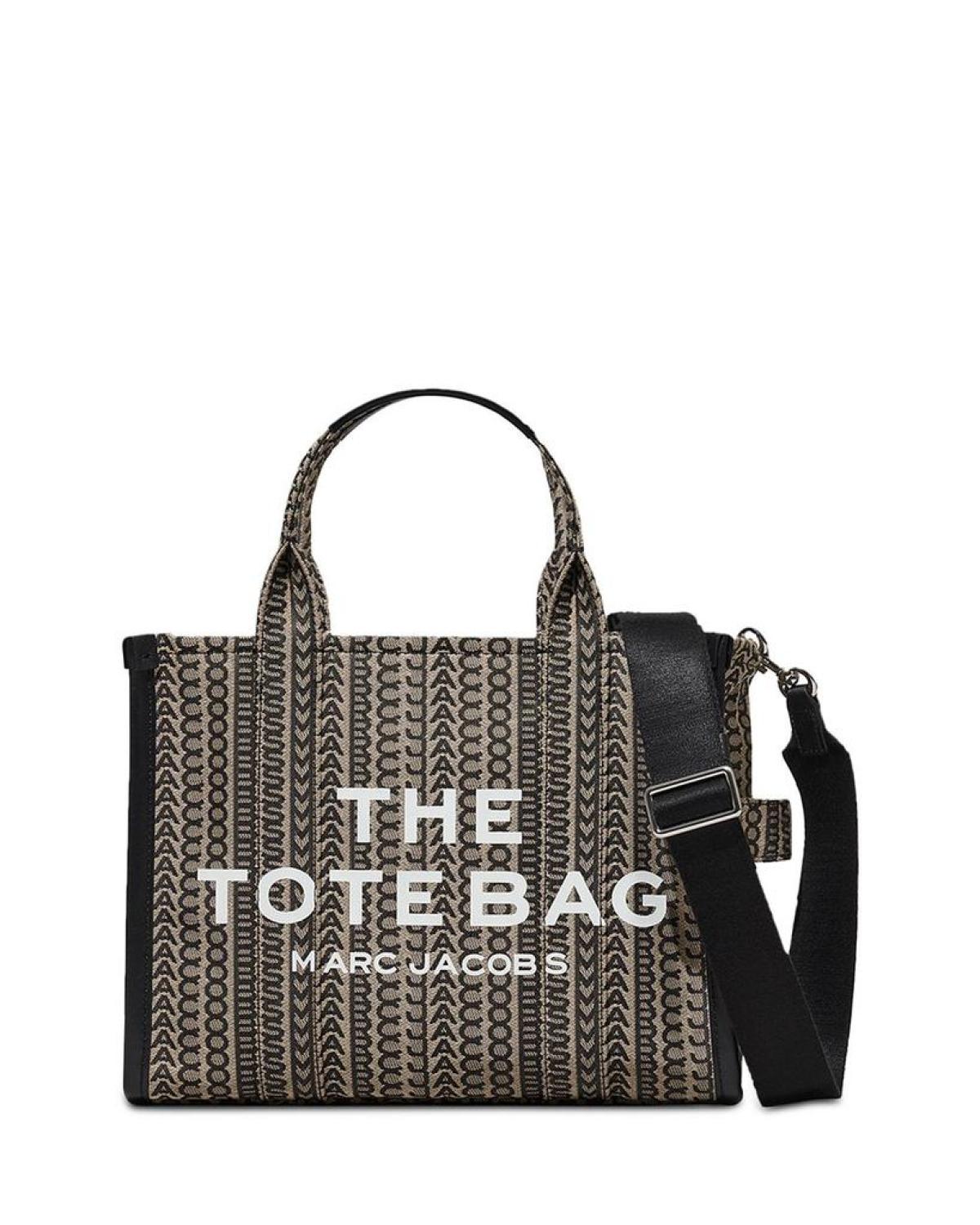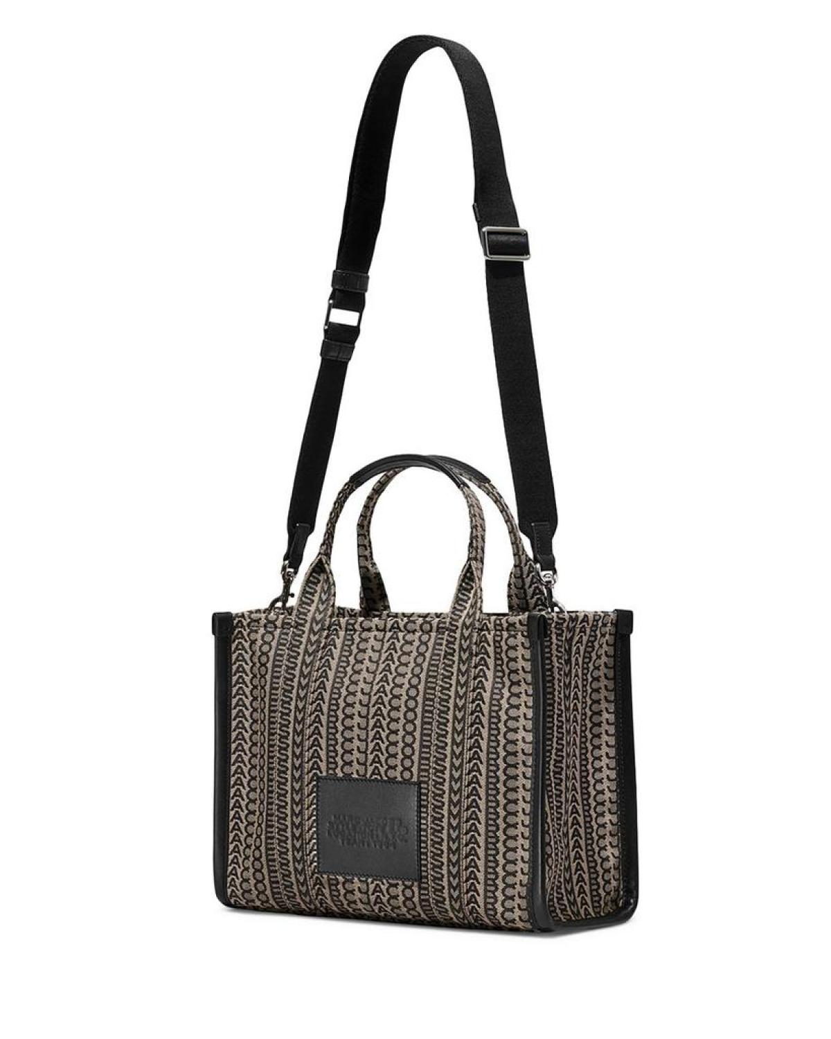 Top handles, 4.72" drop Adjustable crossbody strap, 27" drop Dimensions: 13.19"W x 5.91"D x 10.63"H Top zip closure Two interior slip pockets, one zip pocket and card slot Woven monogram design with printed detail Leather trim Cotton/polyester Imported Web ID: 4564141