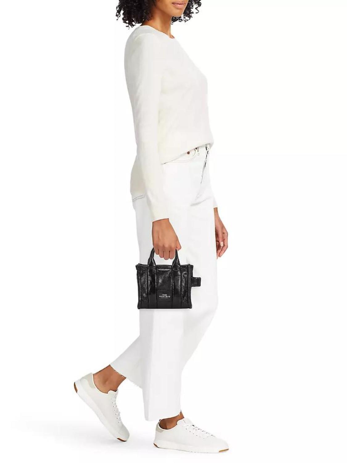 • A perennial favorite, Marc Jacobs' Micro Tote is crafted of soft crinkled leather, styled with a signature logo patch. This piece is accompanied by an adjustable strap for hands-free ease.