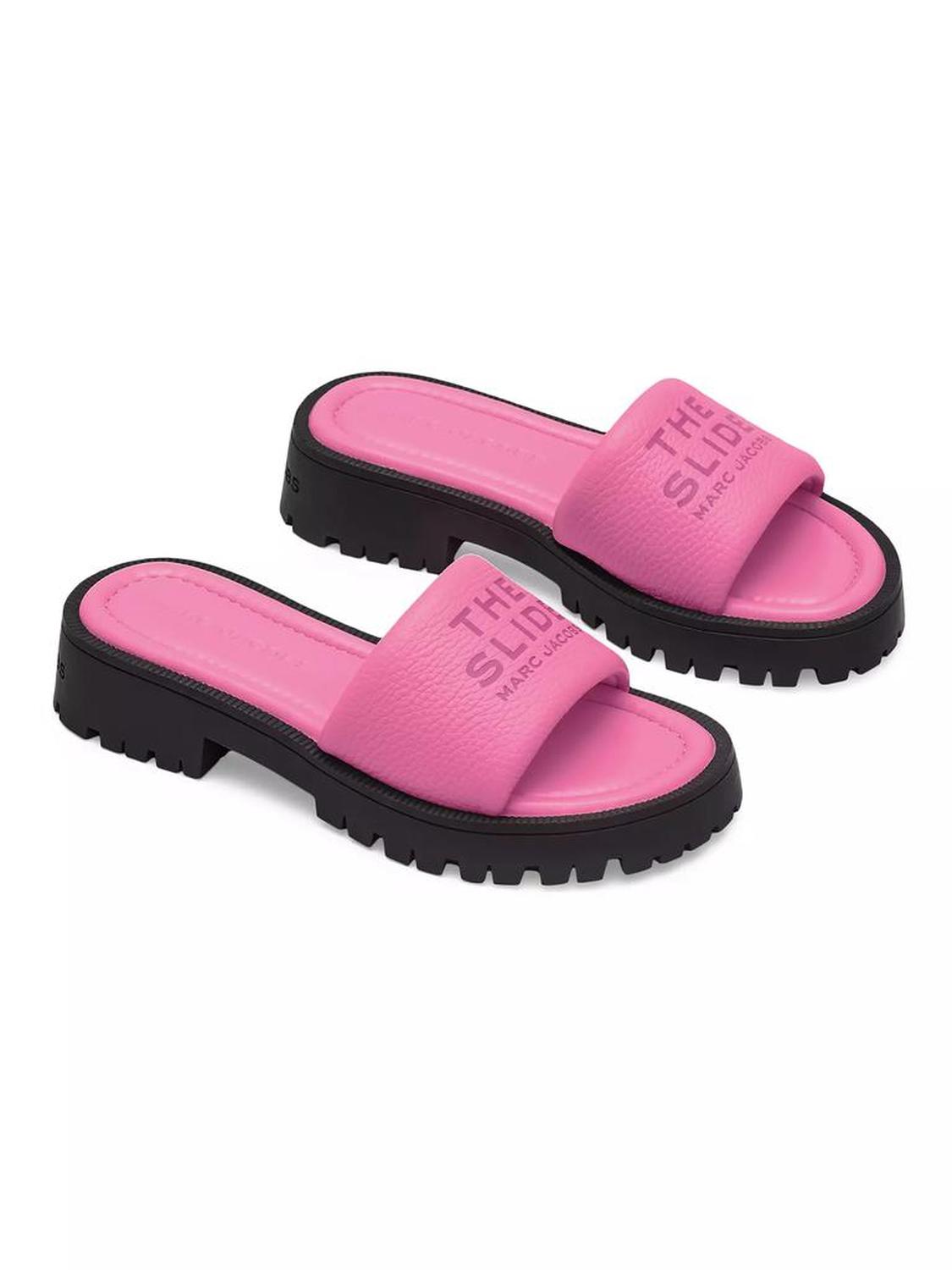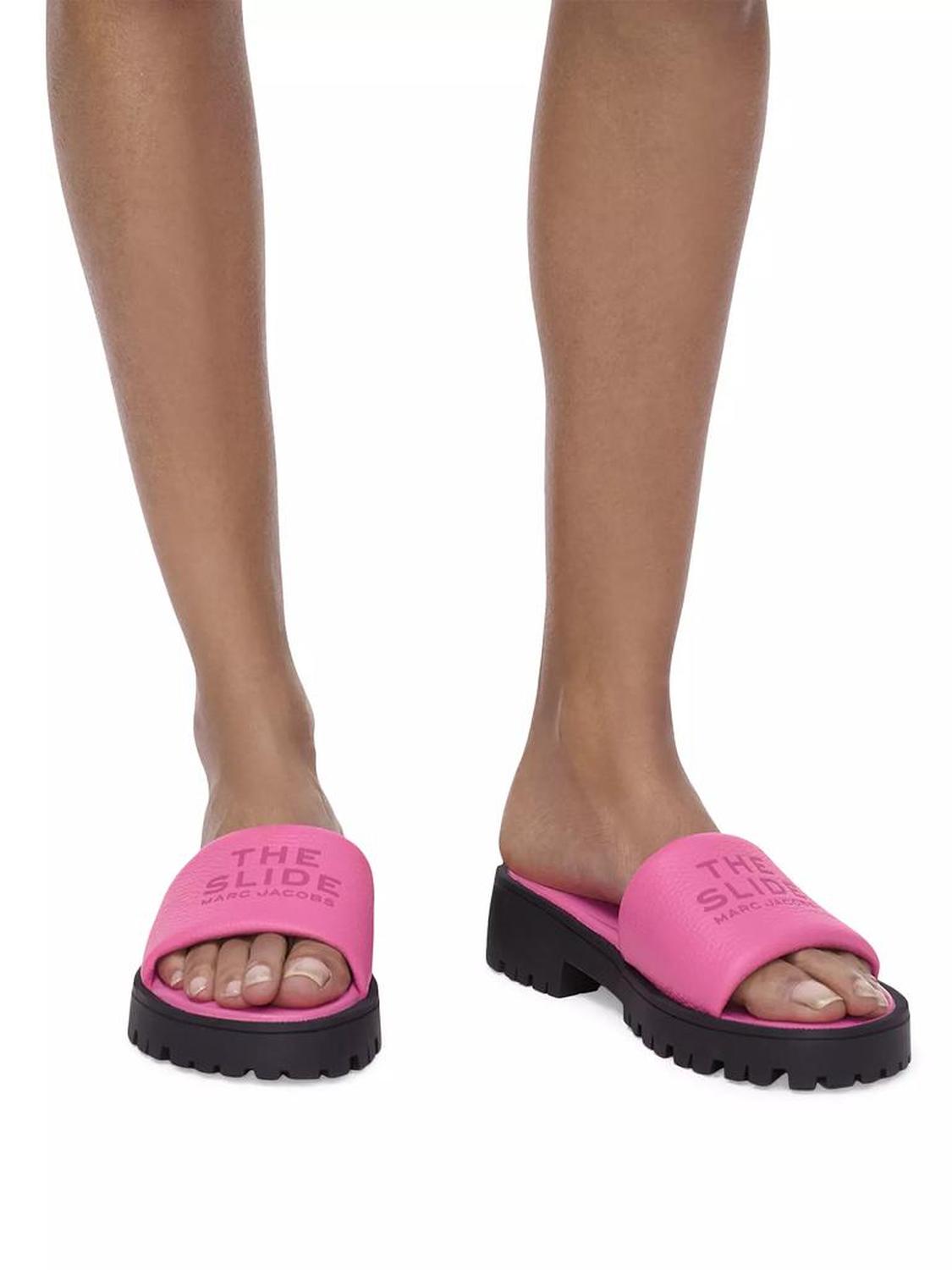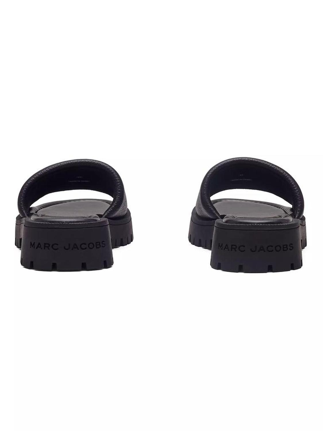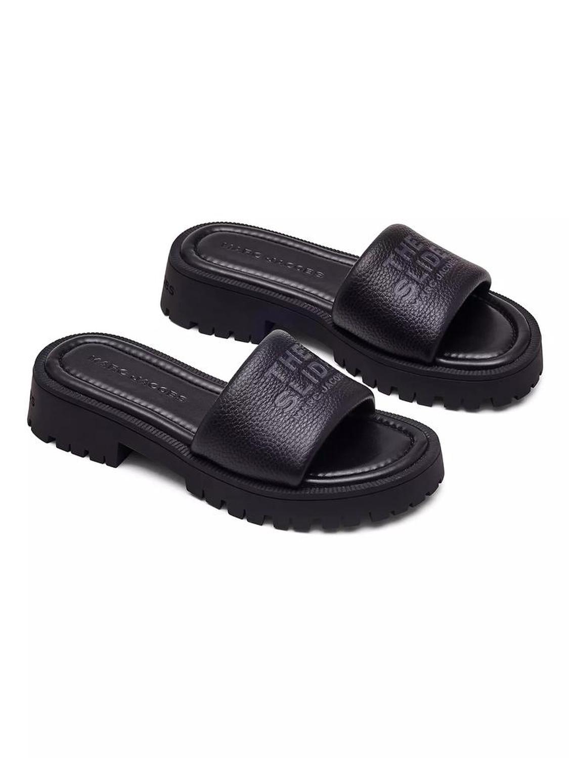 Marc Jacobs' The Slide sandals showcase a pebbled leather vamp adorned with a stamped logo and a sturdy rubber lug sole. Open toe Slides on Leather upper PU footbed Rubbed lug sole Imported SIZE Heel height: about 1.5" (40mm) Marc Jacobs' The Slide sandals showcase a pebbled leather vamp adorned with a stamped logo and a sturdy rubber lug sole.Open toeSlides onLeather upperPU footbedRubbed lug soleImportedSIZEHeel height: about 1.5" (40mm)