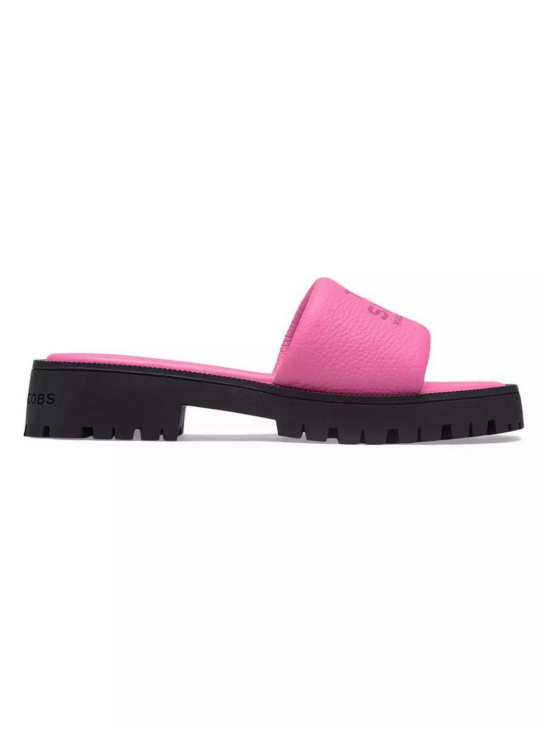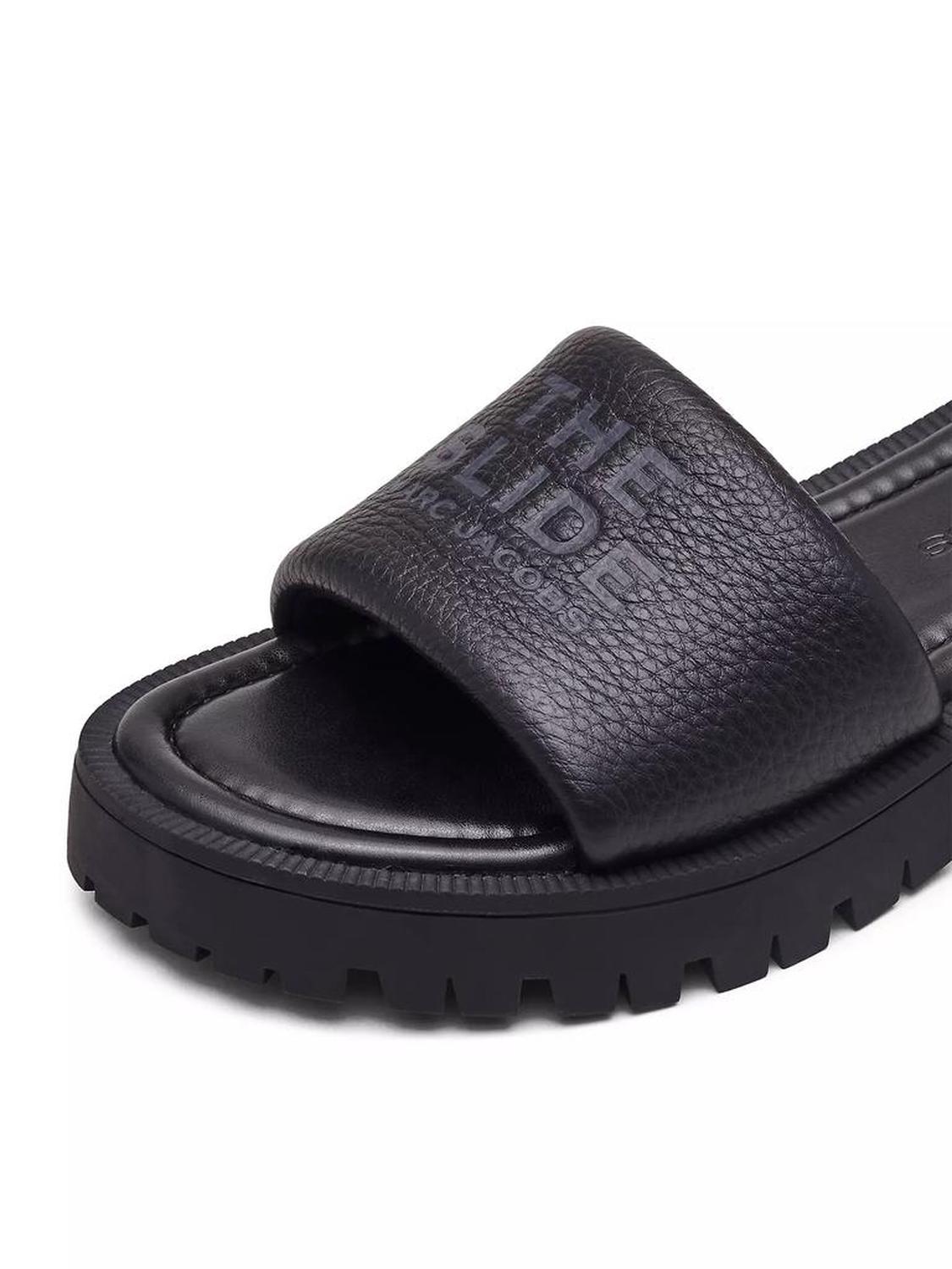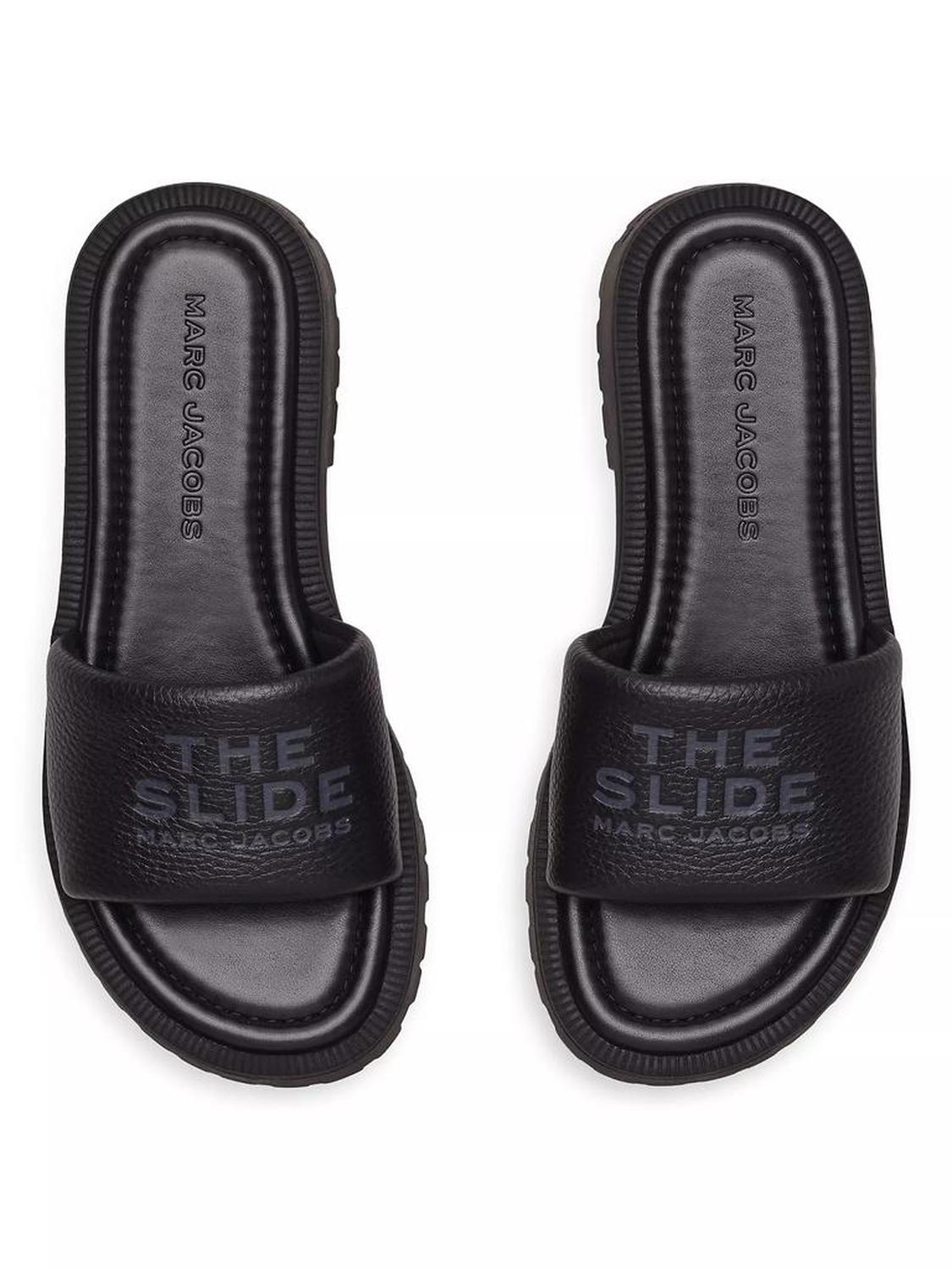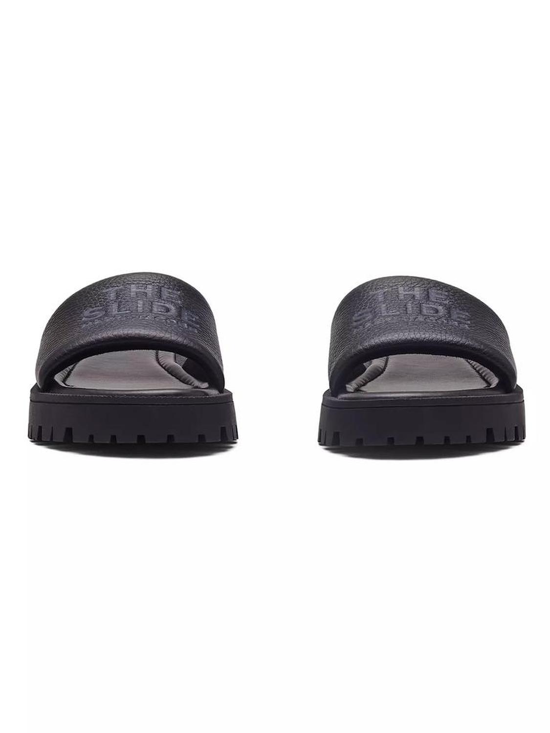 Marc Jacobs' The Slide sandals showcase a pebbled leather vamp adorned with a stamped logo and a sturdy rubber lug sole. Open toe Slides on Leather upper PU footbed Rubbed lug sole Imported SIZE Heel height: about 1.5" (40mm) Marc Jacobs' The Slide sandals showcase a pebbled leather vamp adorned with a stamped logo and a sturdy rubber lug sole.Open toeSlides onLeather upperPU footbedRubbed lug soleImportedSIZEHeel height: about 1.5" (40mm)