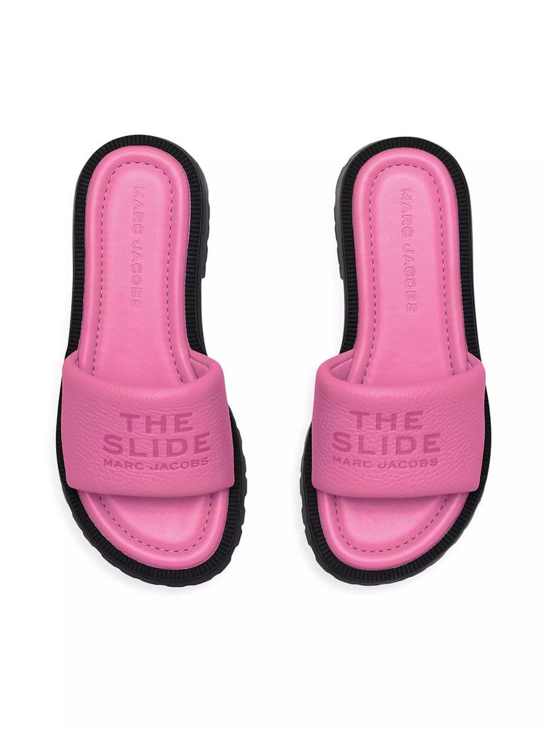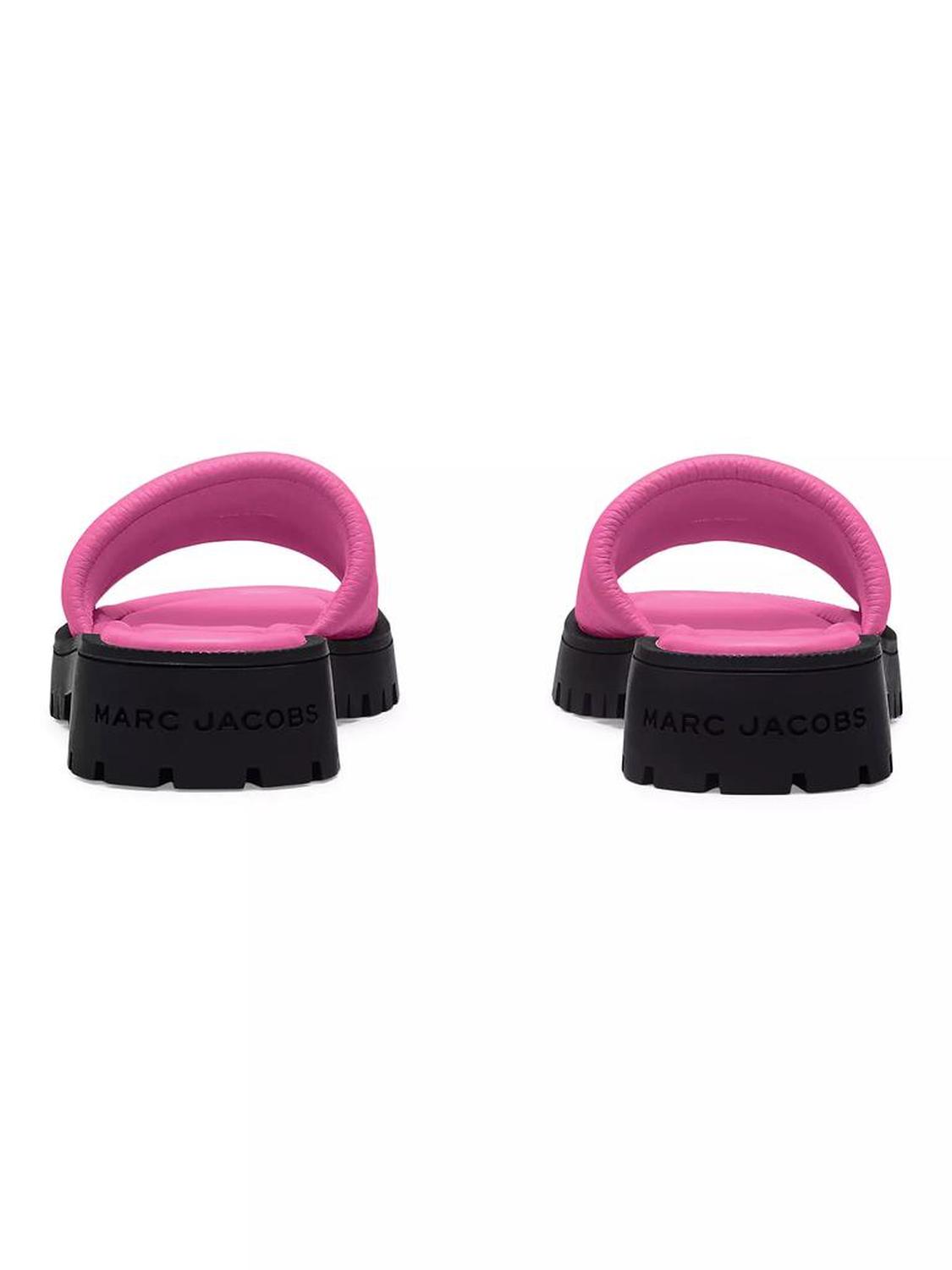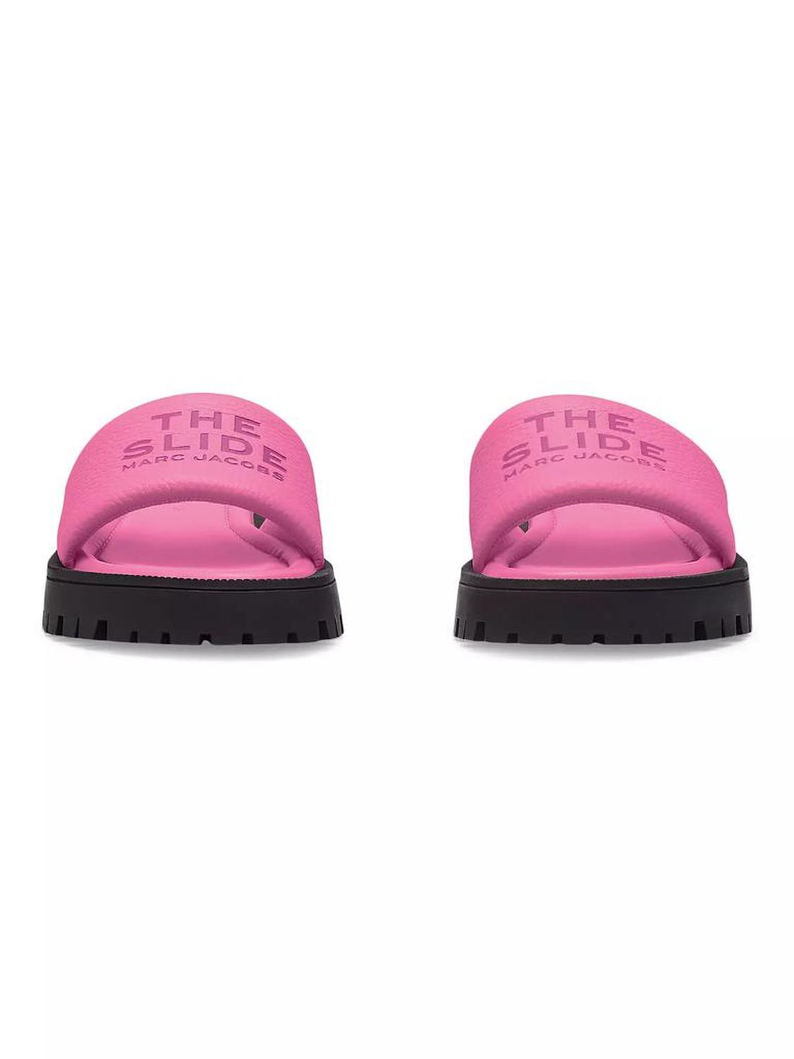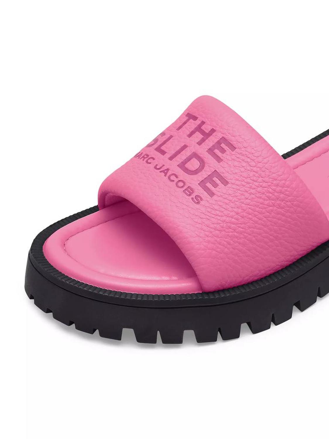Marc Jacobs' The Slide sandals showcase a pebbled leather vamp adorned with a stamped logo and a sturdy rubber lug sole. Open toe Slides on Leather upper PU footbed Rubbed lug sole Imported SIZE Heel height: about 1.5" (40mm) Marc Jacobs' The Slide sandals showcase a pebbled leather vamp adorned with a stamped logo and a sturdy rubber lug sole.Open toeSlides onLeather upperPU footbedRubbed lug soleImportedSIZEHeel height: about 1.5" (40mm)