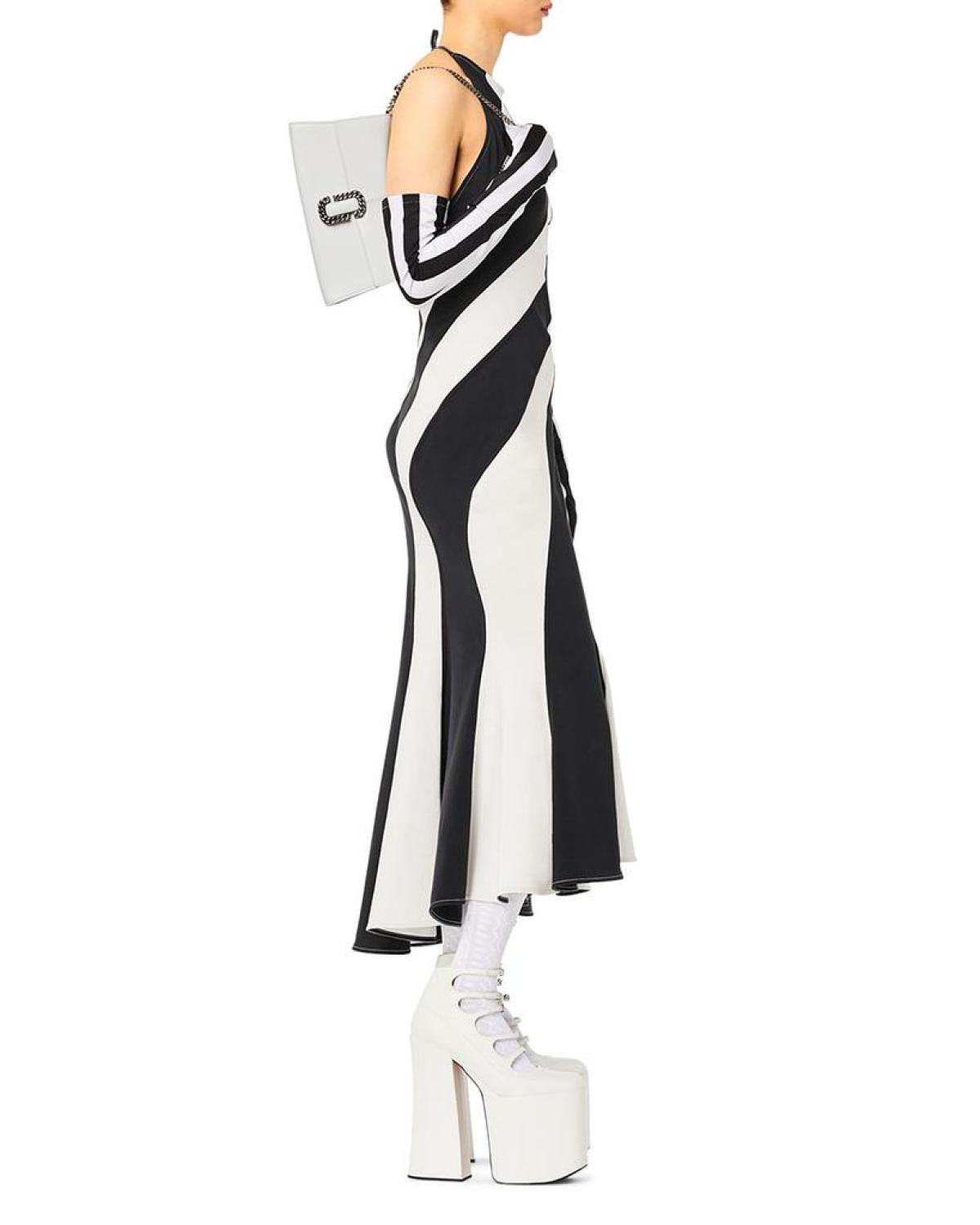 Mannequin model measurements: 5'10" height, wearing a size 4 or small