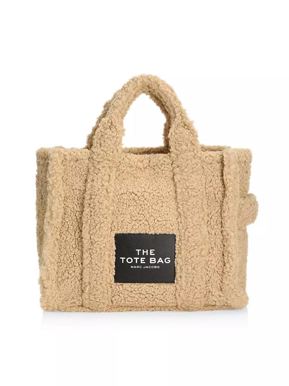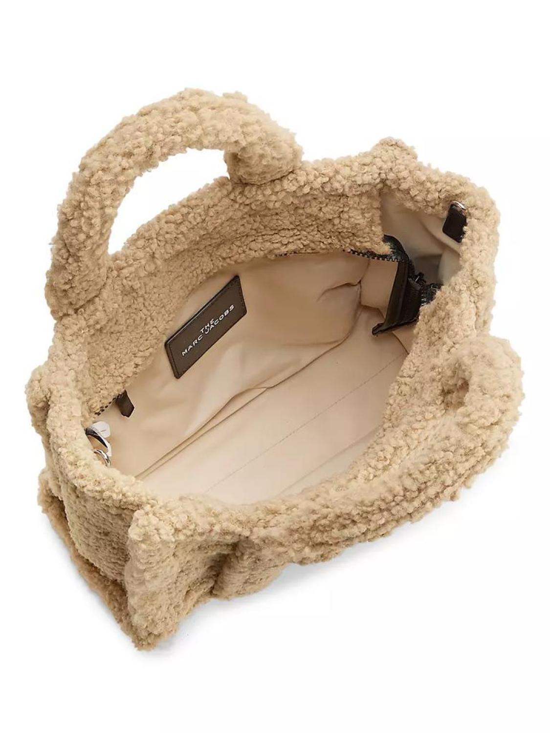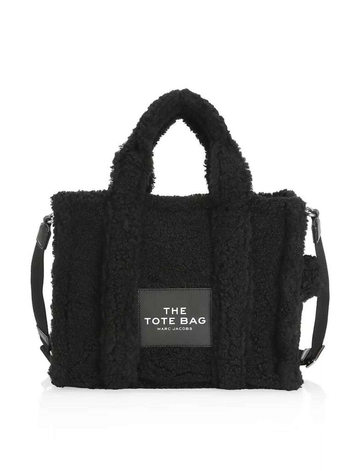 • Convertible tote in a plush *faux fur* finish can be worn over the shoulder or carried by hand.