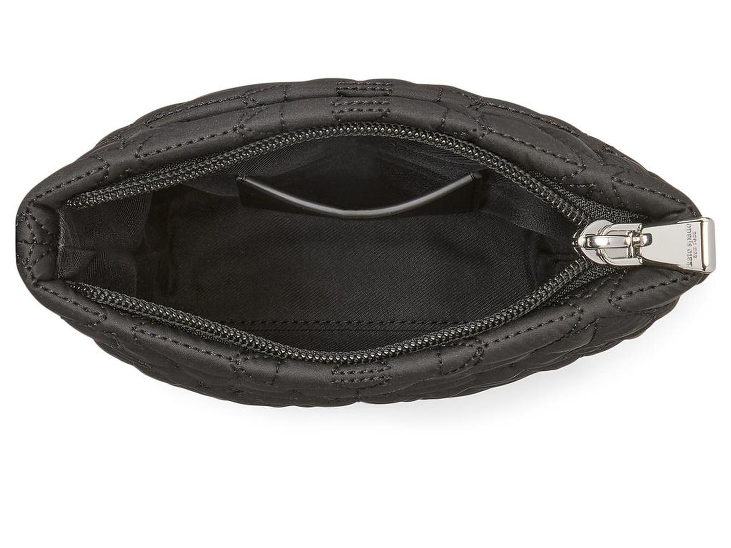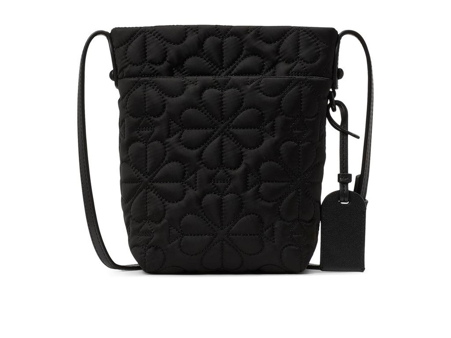The Kate Spade New York® Tilly Quilted Fabric Small Crossbody features a matte quilted finish that adds texture and durability. It includes a zippered top closure and an exterior slip pocket for organized storage. The adjustable strap allows for comfortable crossbody wear.