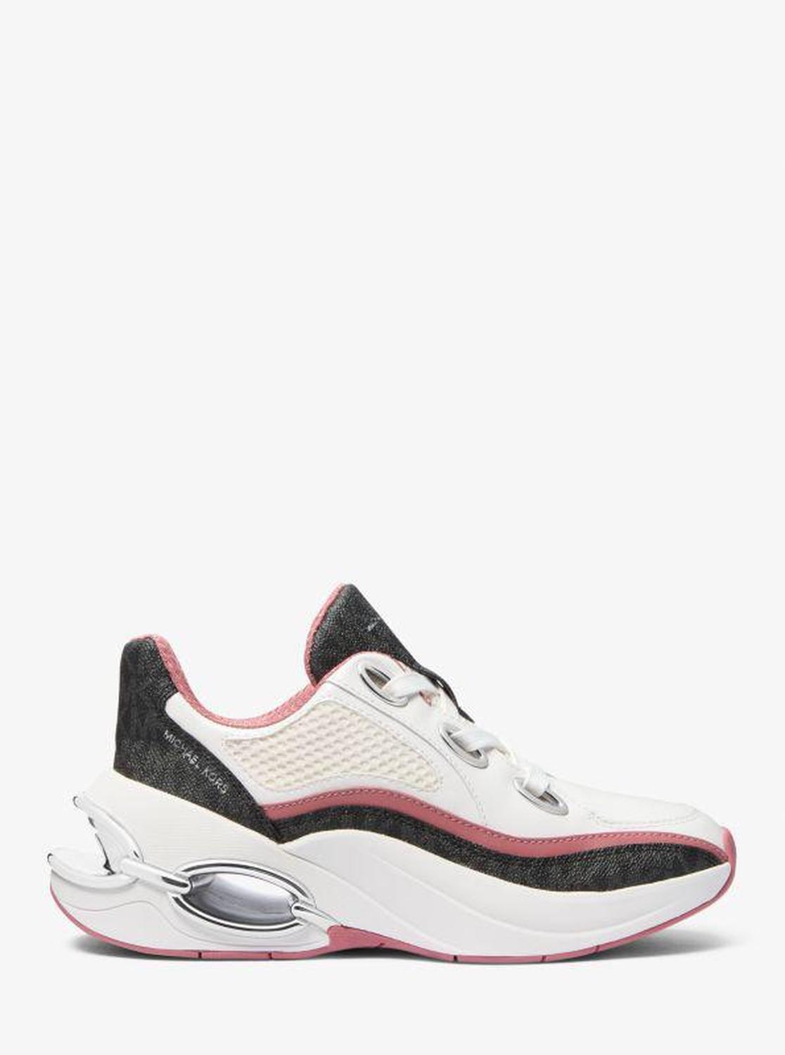 • Crafted from a tactile combination of leather, Signature logo-print canvas and mesh, these Toni trainers deliver statement-making style with every step. Grommets for the laces and an exaggerated rubber sole with chain-link cutouts offer a glamorous finishing touch. Team them with everything from leggings to denim to maxi dresses.