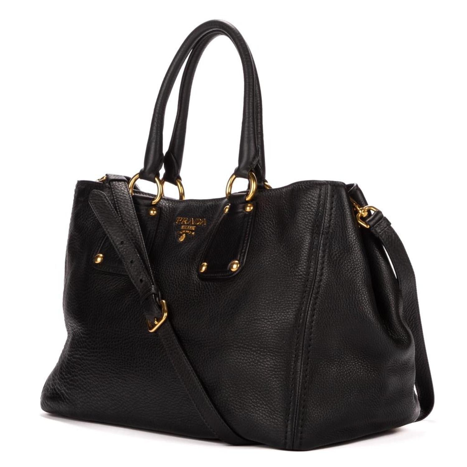 Prada Handbag in Black Cowhide leather and Gold hardware. Dimensions - 36*25*19cm . Serial number - None. Inclusions - Strap, Dustbag. Pre-Owned