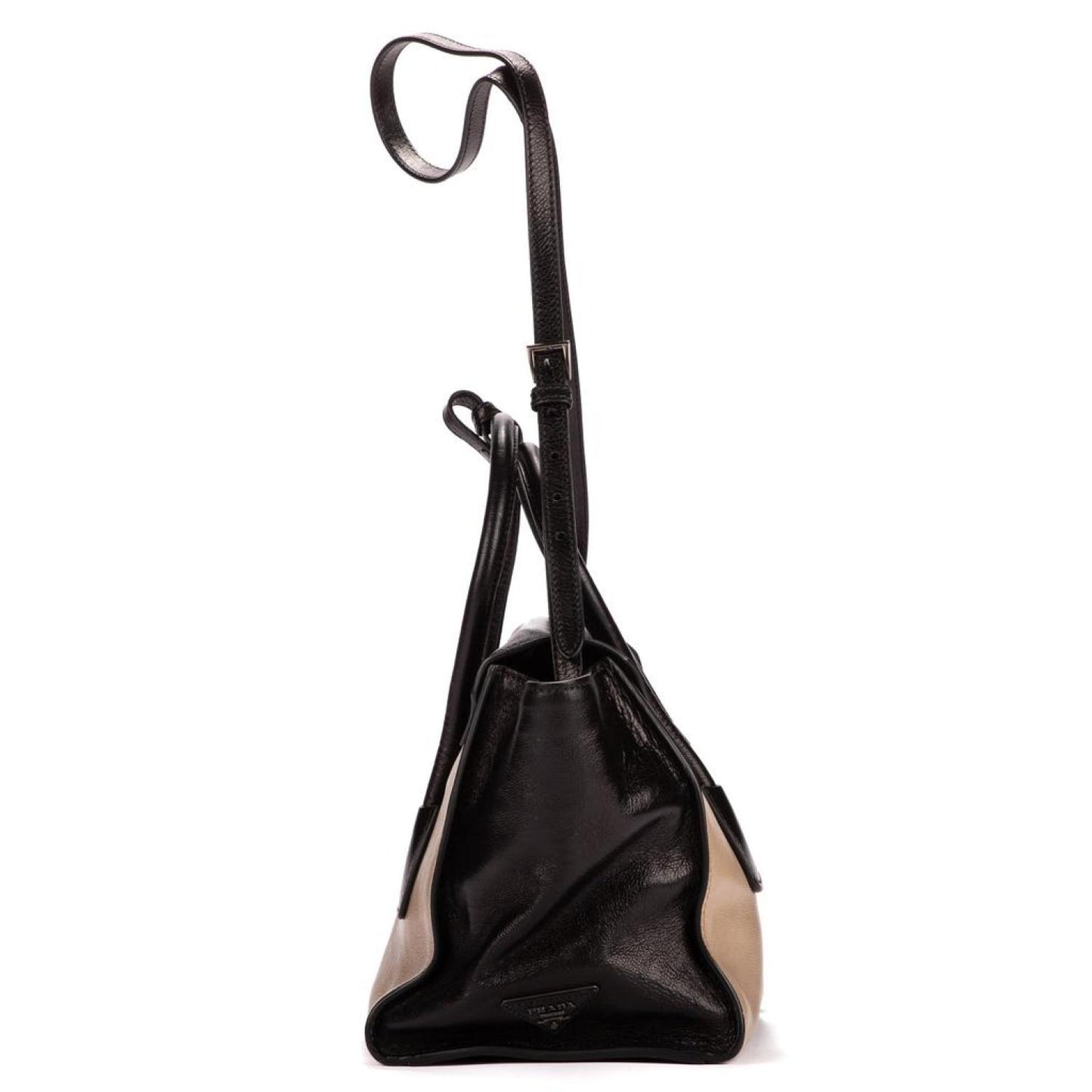 • Prada Handbag in Black/ Beige Calfskin leather and Gunmetal hardware. Dimensions - 26*15*17cm. Serial number - N/A. Inclusions - Dustbag.