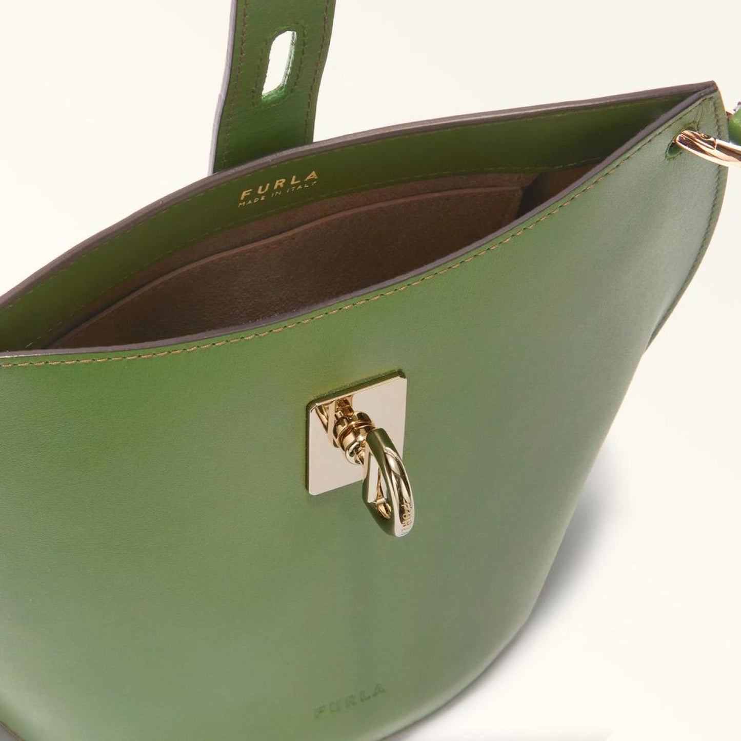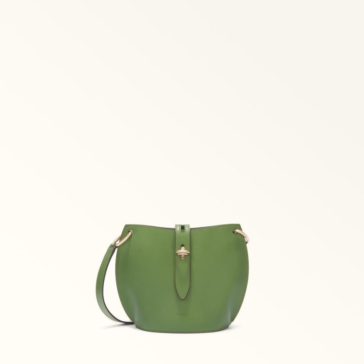 • This Unica Furla mini crossbody is a unique design inspired by the bucket bag, with its rounded shape and soft, curved sides. Styled in soft and smooth calf leather, it is bound to become your faithful everyday companion, and attract attention with its understated look. Ideal for carrying your personal belongings with its rigid bottom, it can be worn crossbody or on the shoulder.