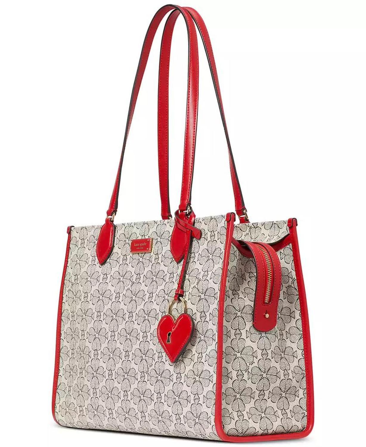 Lock down lovely style with this spacious kate spade new york tote finished with a heart charm and a stylish pattern.