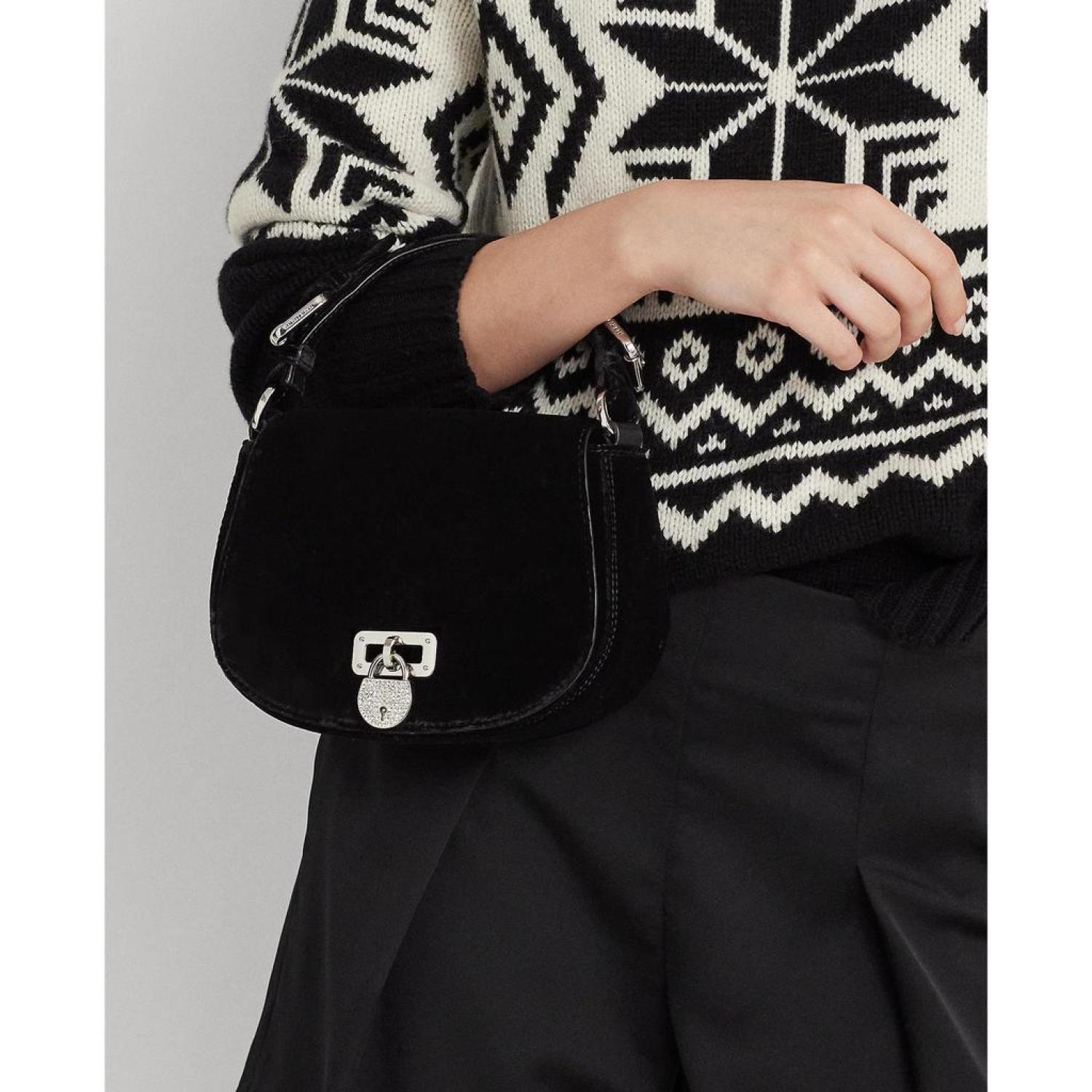 • Enjoy handsfree sophistication while carrying your belongings safely and conveniently in the LAUREN Ralph Lauren® Velvet Medium Tanner Crossbody Bag. It is crafted in full-grain leather with a smooth finish and comes adorned with a crystal-embellished padlock charm on the flap and logo-engraved buckles. With one exterior slip pocket and one interior slip pocket, the bag is capacious enough to keep your stuff organized.