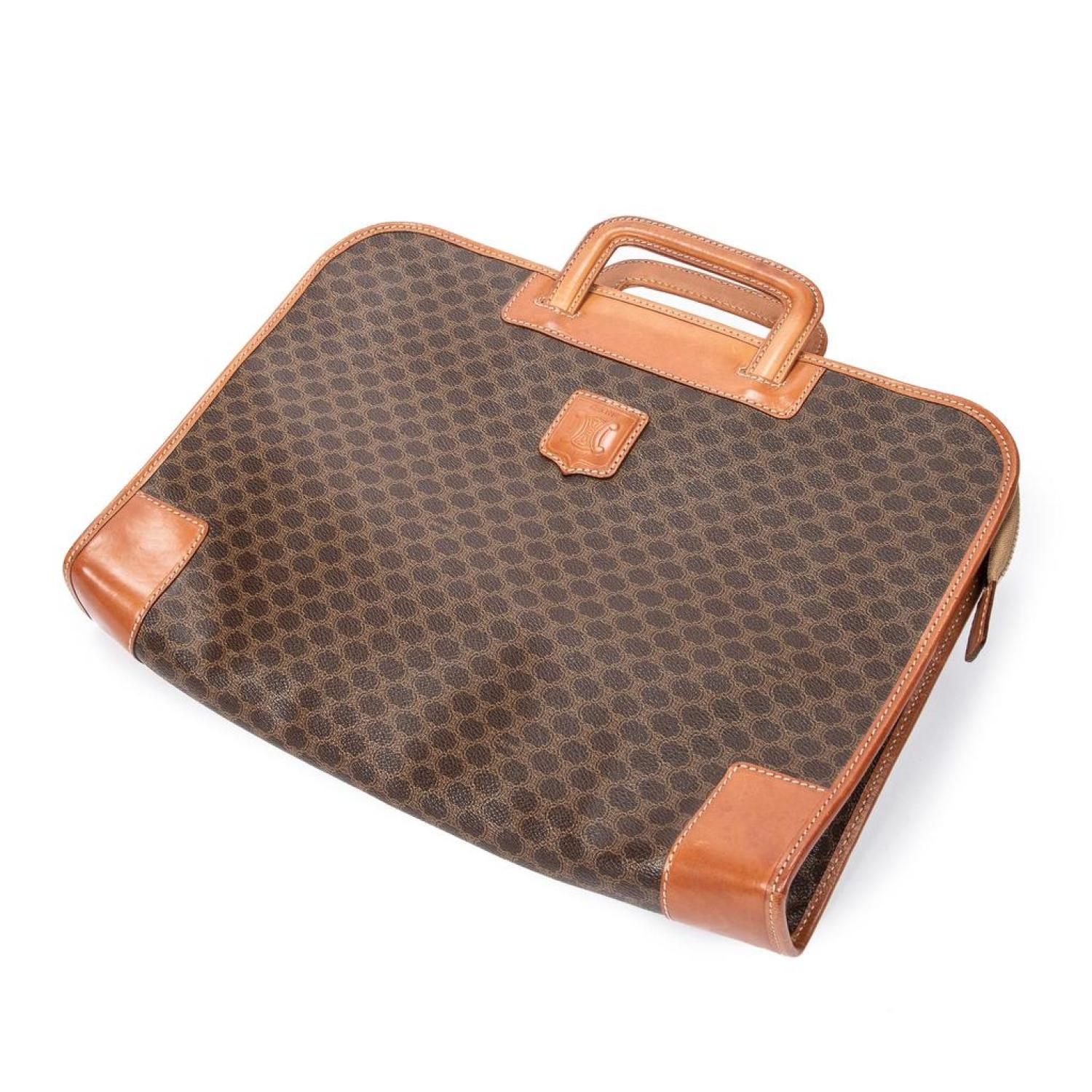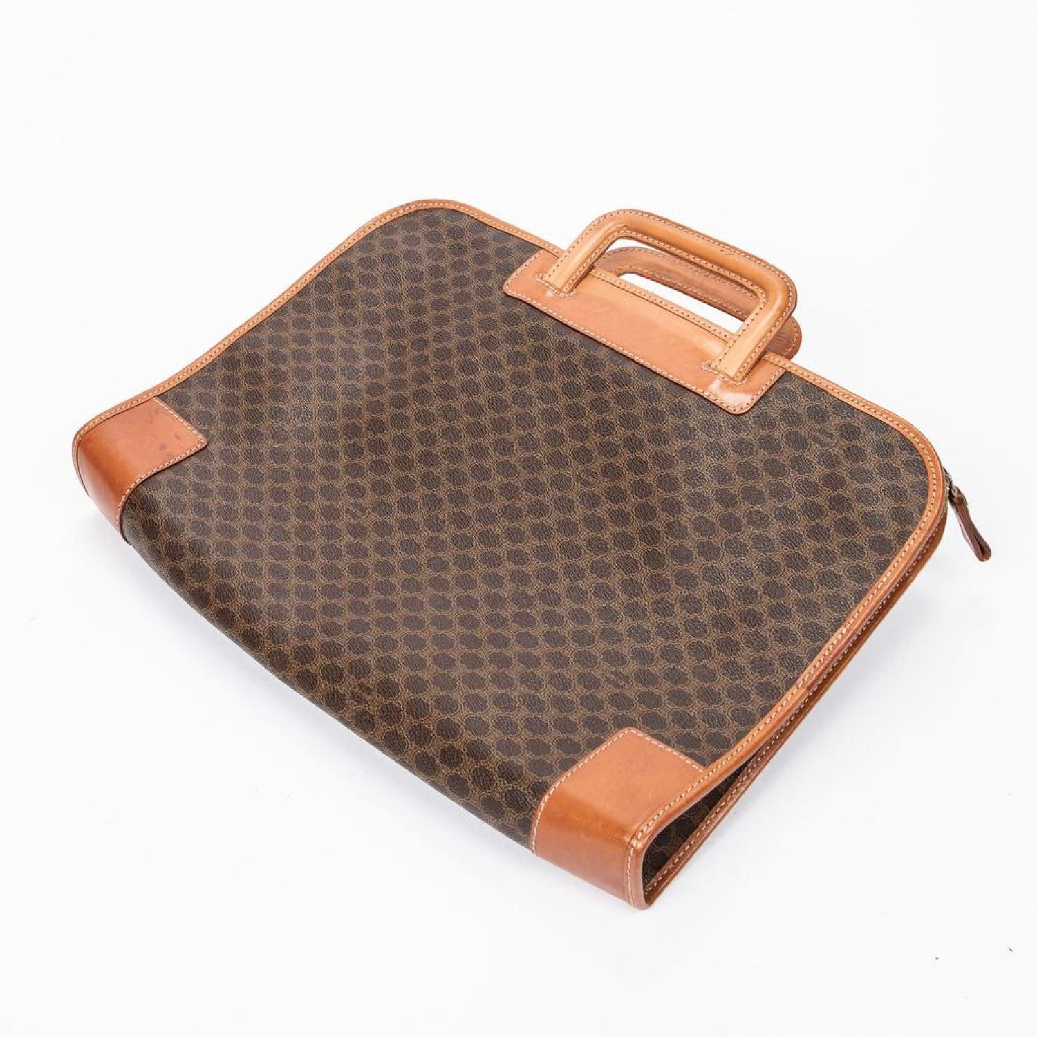 • Celine Handbag in Brown Macadam Coated Canvas and Gold hardware. Dimensions - 39*27*6cm. Serial number - M07. Inclusions - None.