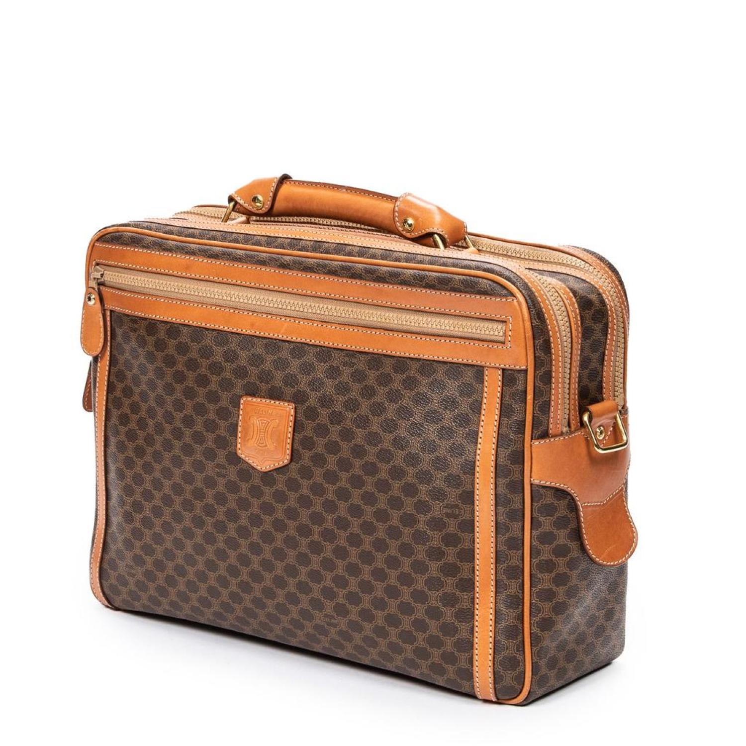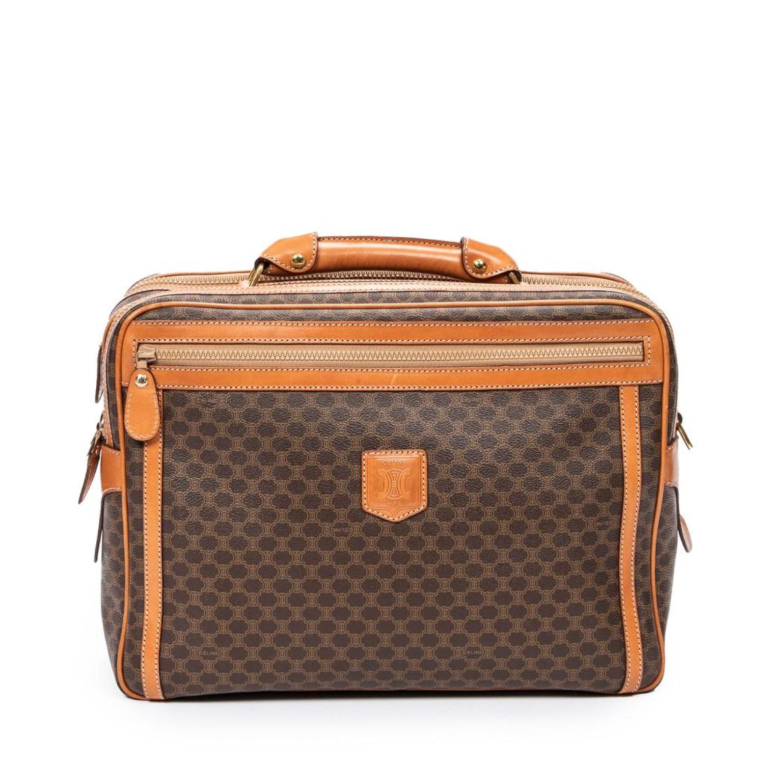 Celine Shoulder Bag in Brown Macadam Coated Canvas and Gold hardware. Dimensions - 37*28*12cm. Serial number - M07. Inclusions - strap. Pre-Owned
