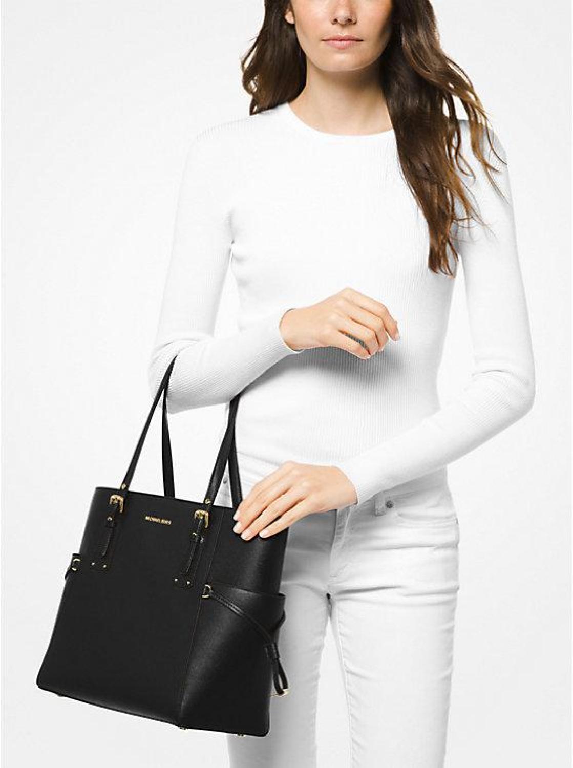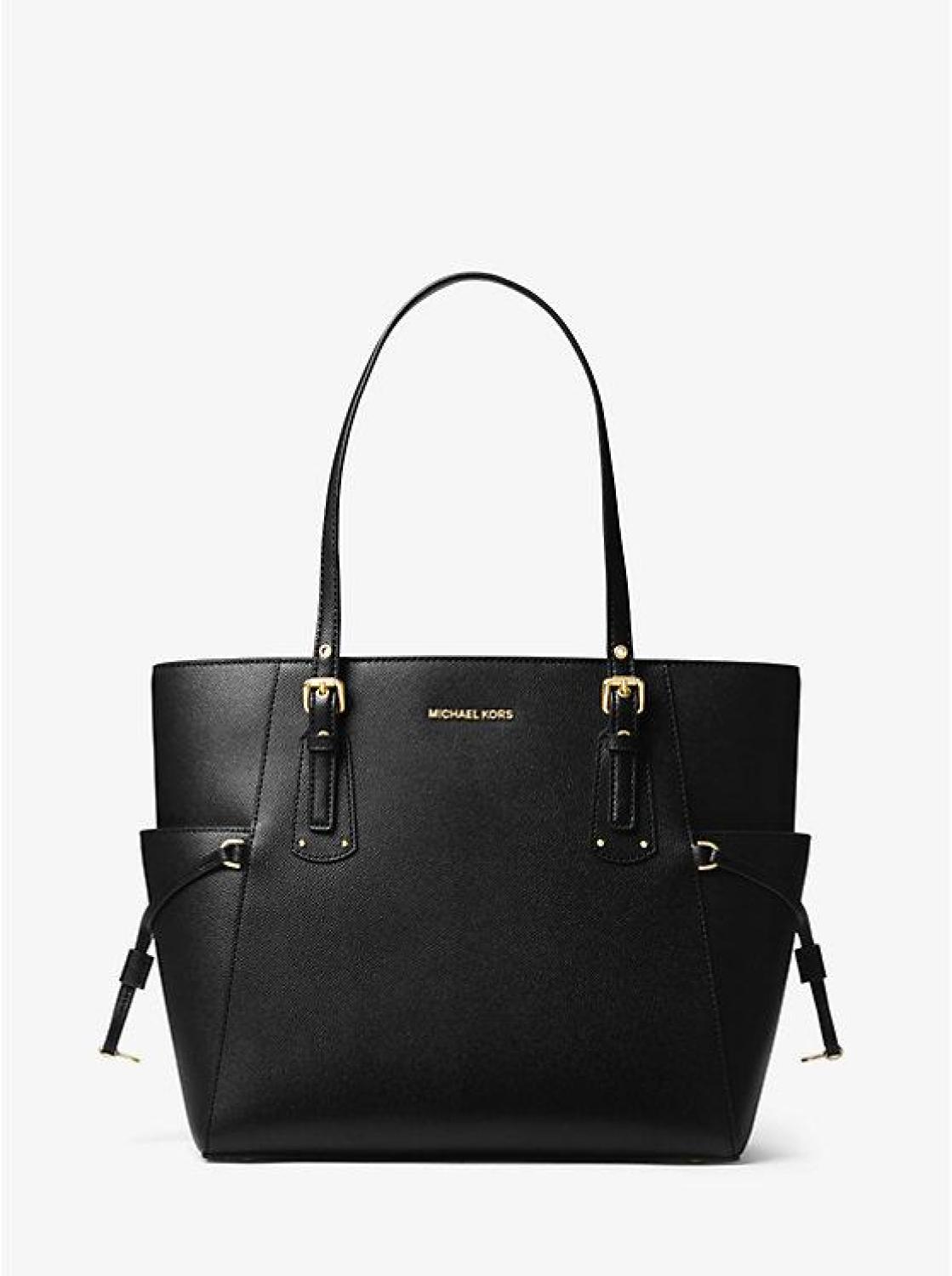 Crafted from textured crossgrain leather, the Voyager tote bag features adjustable shoulder straps and gusset ties for everyday versatility. Its signature design promises everlasting appeal, while refined hardware lends a sophisticated finish.