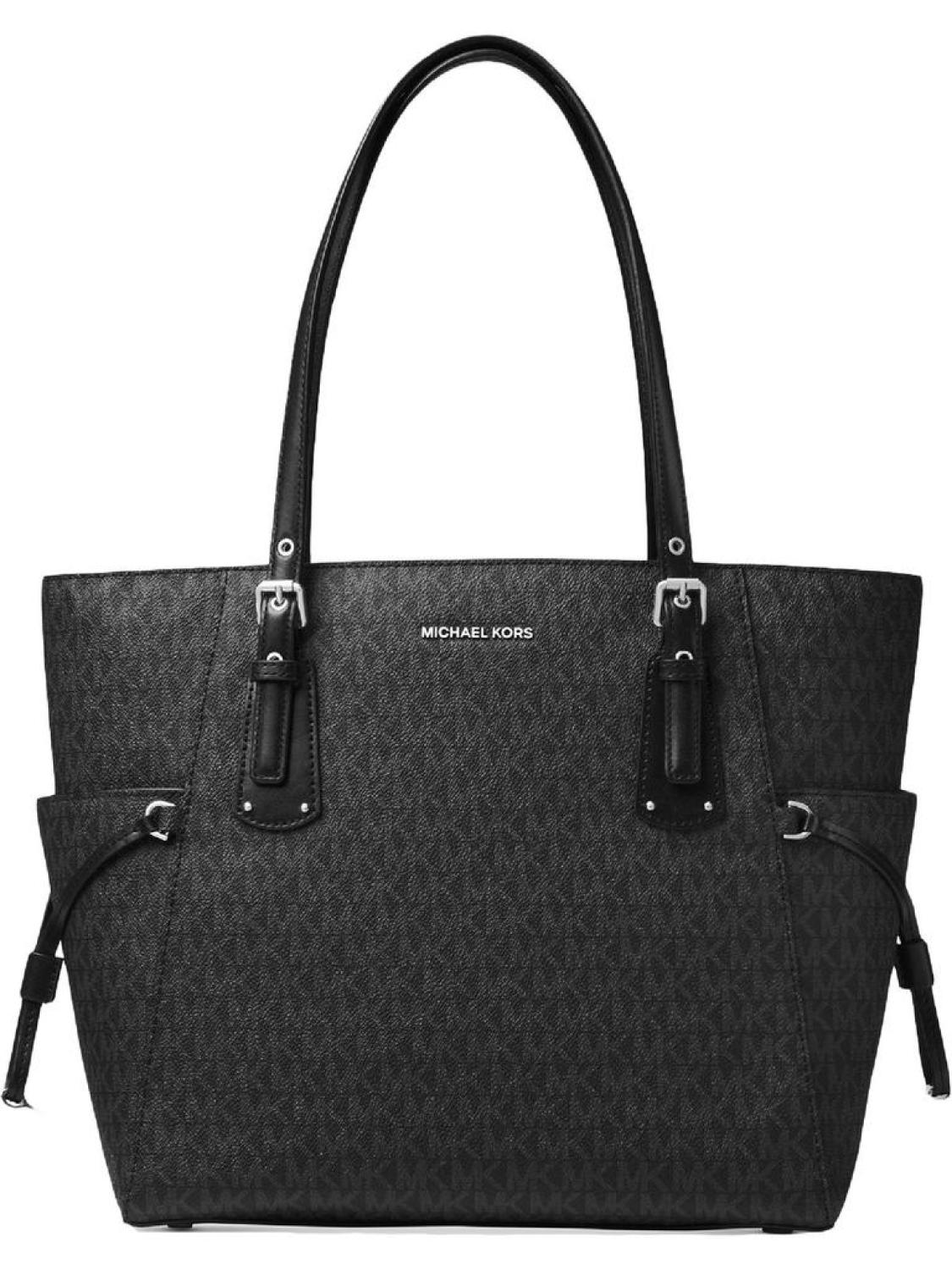 Manufacturer - MICHAEL Michael Kors Retail - $298.00 Style Type - Tote Handbag Collection - MICHAEL Michael Kors Sleeve Length - Closure - Open Material - Coated Canvas/Polyester Fabric Type - Canvas Specialty - Coated P2485379Make way for the Voyager logo print tote handbag by MICHAEL Michael Kors. Made with coated canvas, polyester, cotton, and polyurethane materials. This timeless design is crafted with the timeless black logo print coated canvas and multiple compartments. It features two comfortable double straps, a roomy open slip compartment, and full zipper closure. The gusset ties add to this bag's chic character. Height - 11", Width - 14.75", Width - 6.25". This handbag is guaranteed authentic.The item for sale is pictured above and described on this page. The photo may include additional clothing or props that are for display purpose only and will not be included. Please be sure to read the description carefully.