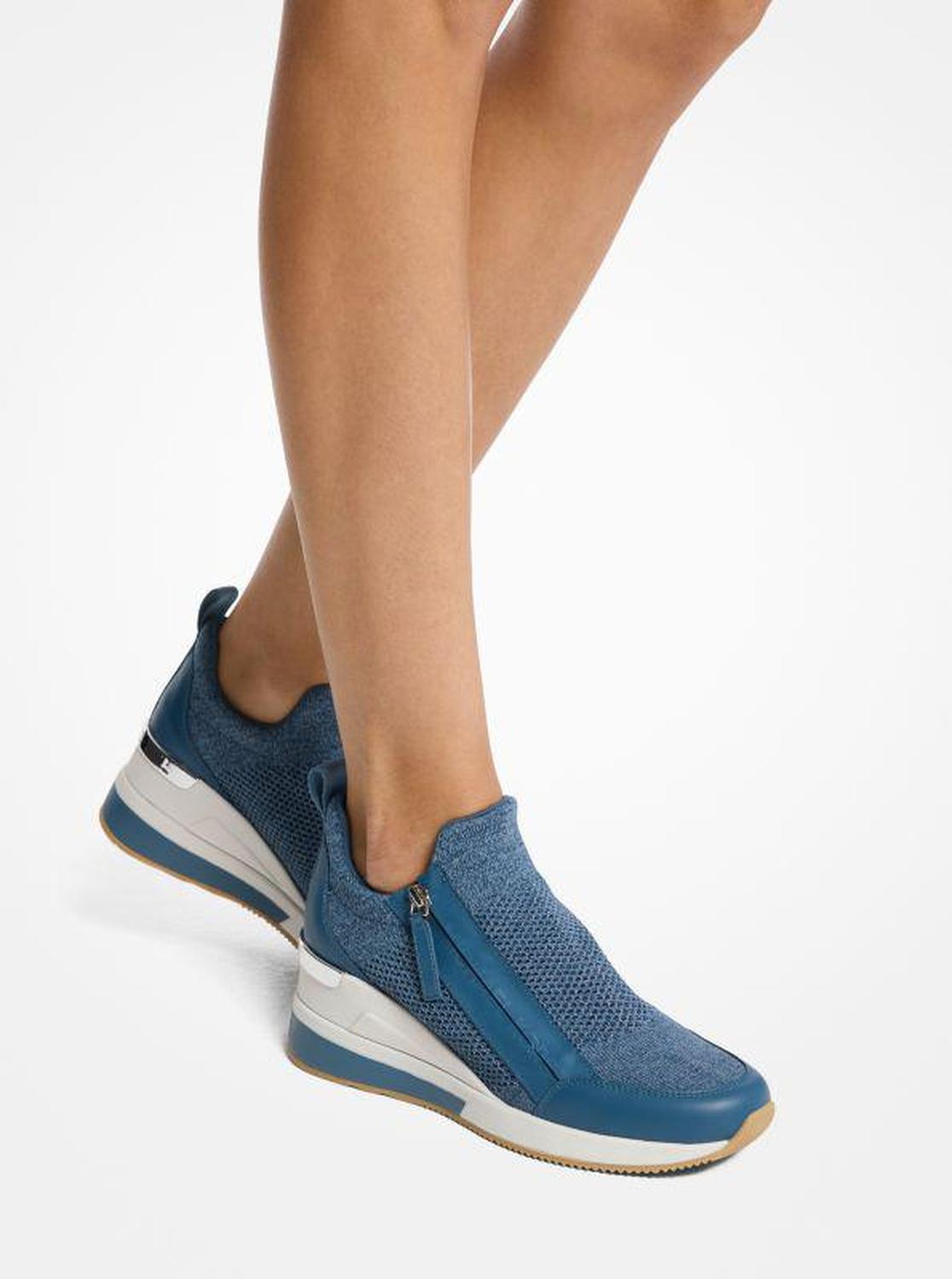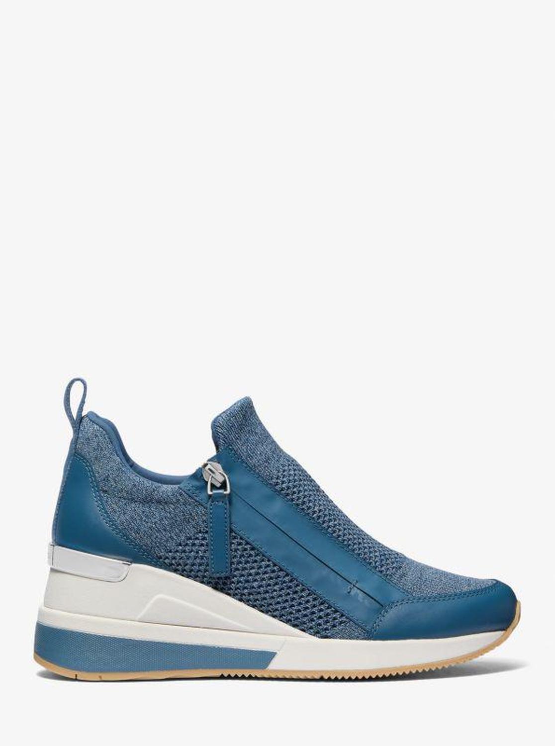 • Our Willis wedge trainer will kick any look up a notch. This pair is crafted from denim-like stretch knit for a breathable fit and feel, while a zip fastening makes them easy to slip on and off. Wear yours with coordinating athletic separates for a casual-cool look.