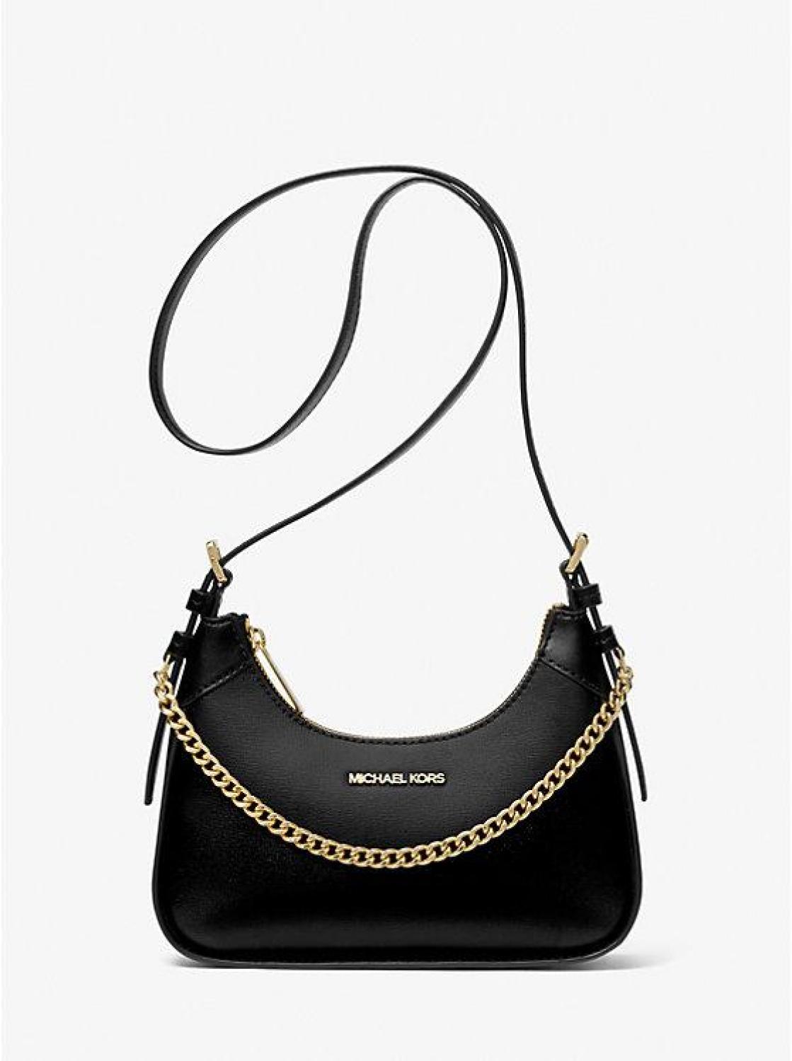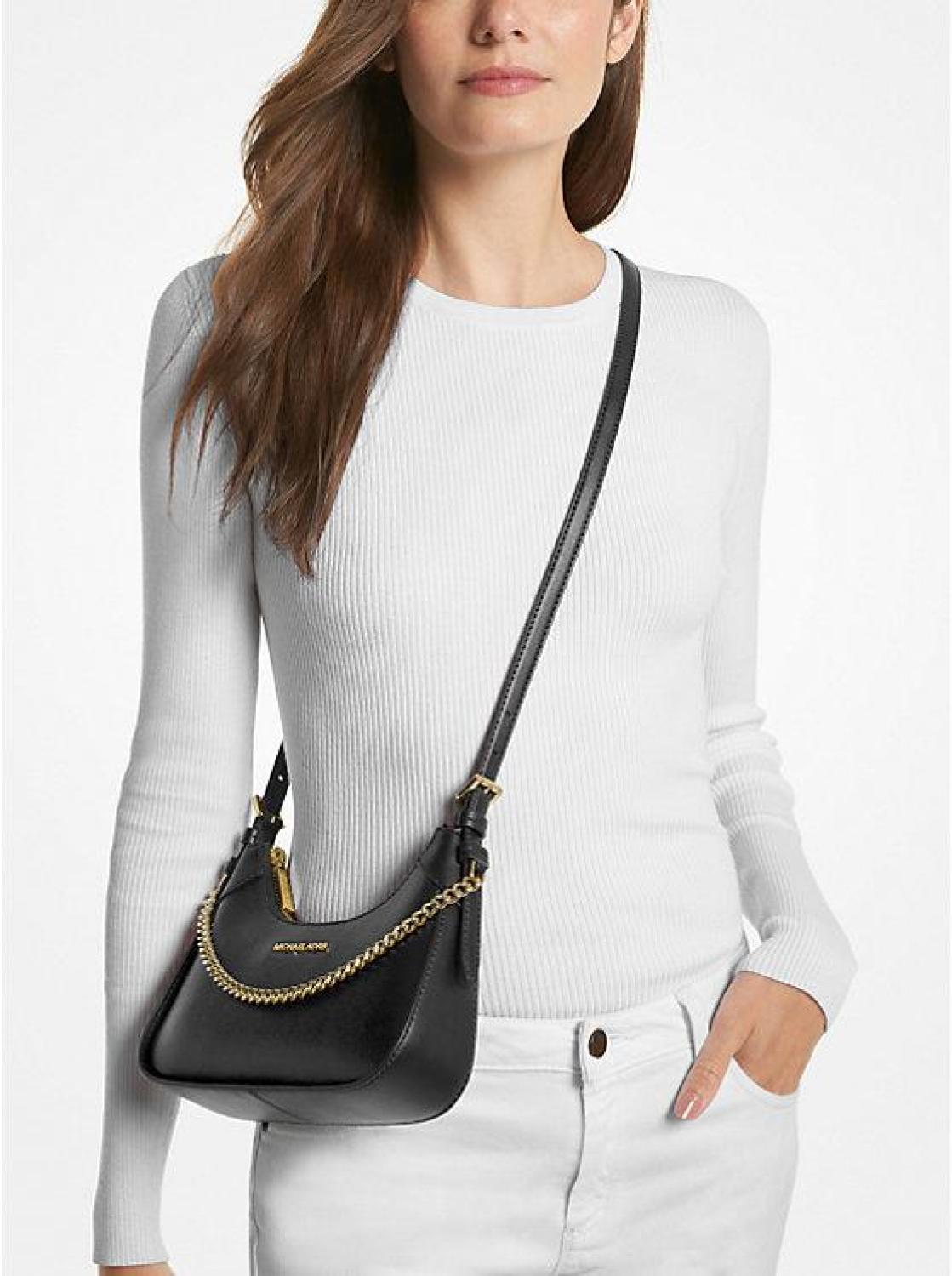 • We sized-down our beloved Wilma shoulder bag for hands-free ease. Rendered in smooth leather, the structured crossbody silhouette features an edgy chain-link strap for a touch of luxe. It’s the perfect day-to-night companion.