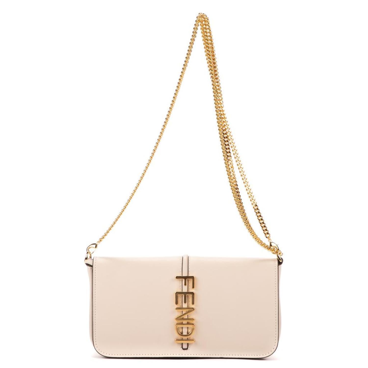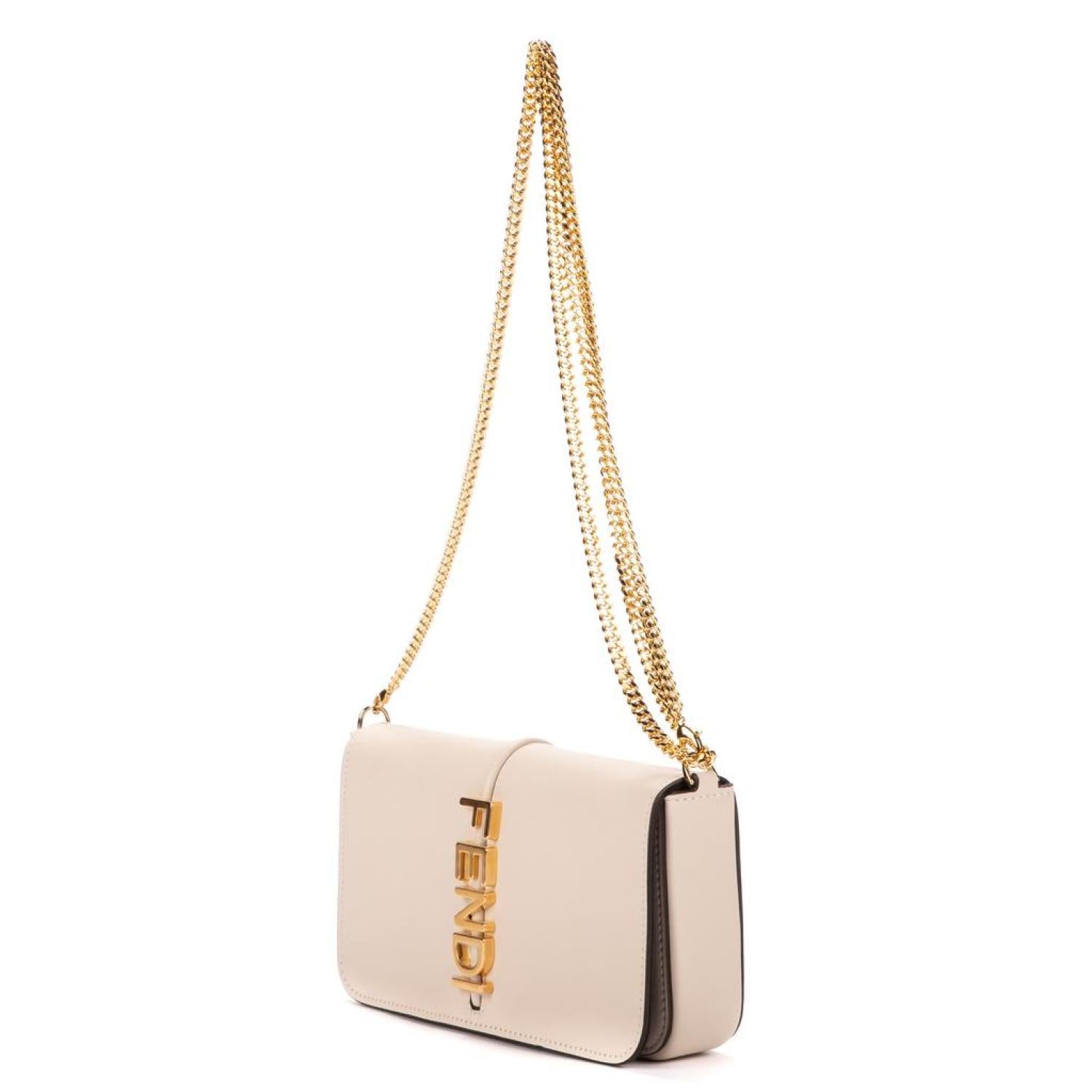 Fendi Shoulder bag in Ivory Calfskin leather and Gold hardware. Dimensions - 21*10*4cm. Serial number - 8BS076-A5DY-238-0189. Inclusions - Pochette.