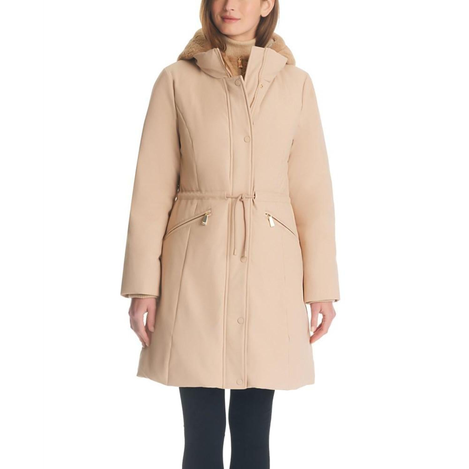 Women's kate spade new york down parka features an attached faux rabbit bib and rib-knit storm cuff, making it the perfect winter staple. It also offers a relaxed waist with a drawcord, front snap closure with a hidden zipper and zippered besom pockets at the front. Front snap closure with hidden zipper Attached faux rabbit hoodie bibbed Rib-knit storm cuffs Relaxed waist with drawcord Zippered besom pockets at front Shell- Polyurethane Base Fabric- 100% Polyester, Hood Lining, Facings- 100% Polyamide, Imitation Fur-100% Polyester, Filling 1- Down, Feathers, Filling 2- 100% Polyester, Knit Rib- Polyester, Elastane Machine Washable Imported