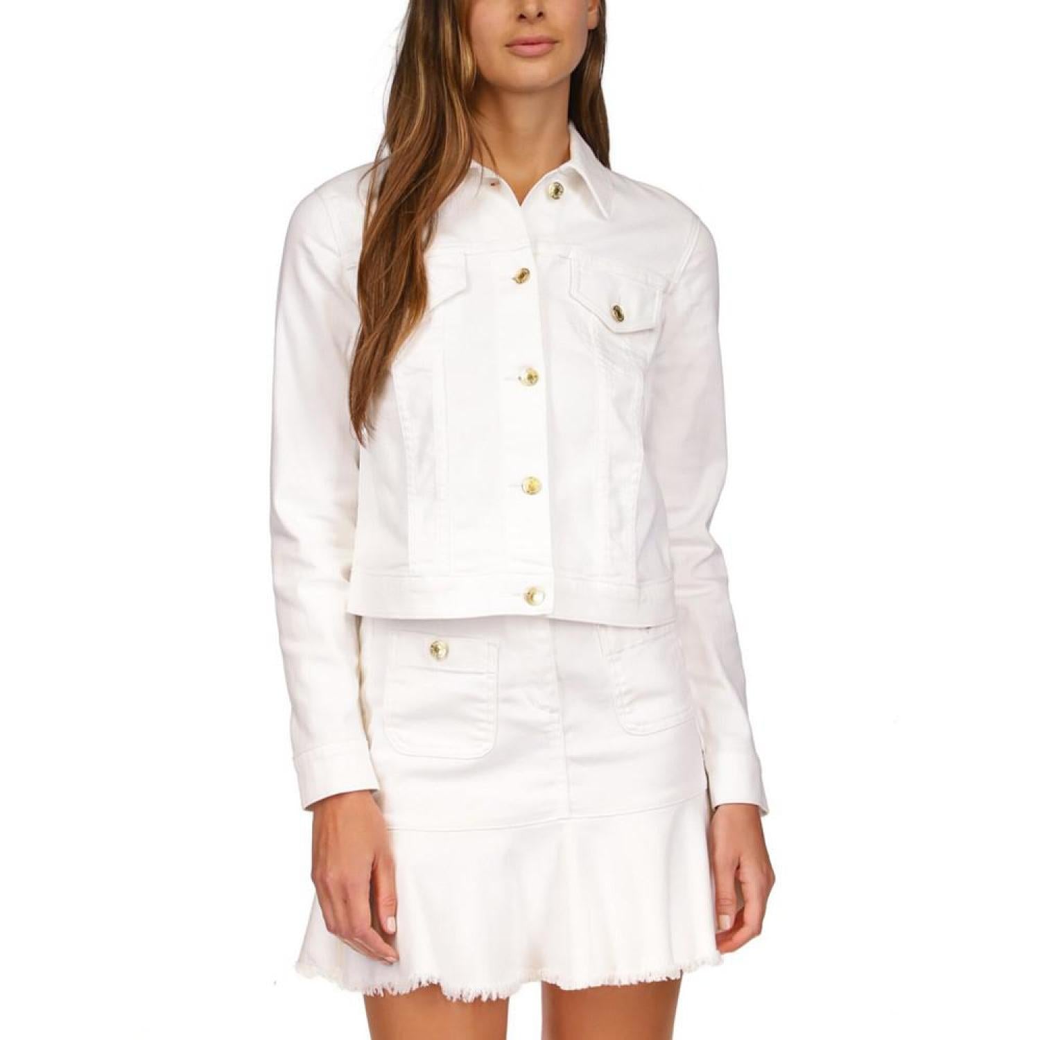 • A casual classic updated with a crisp wash, this MICHAEL Michael Kors denim jacket features the just-right amount of stretch to keep things comfortable.